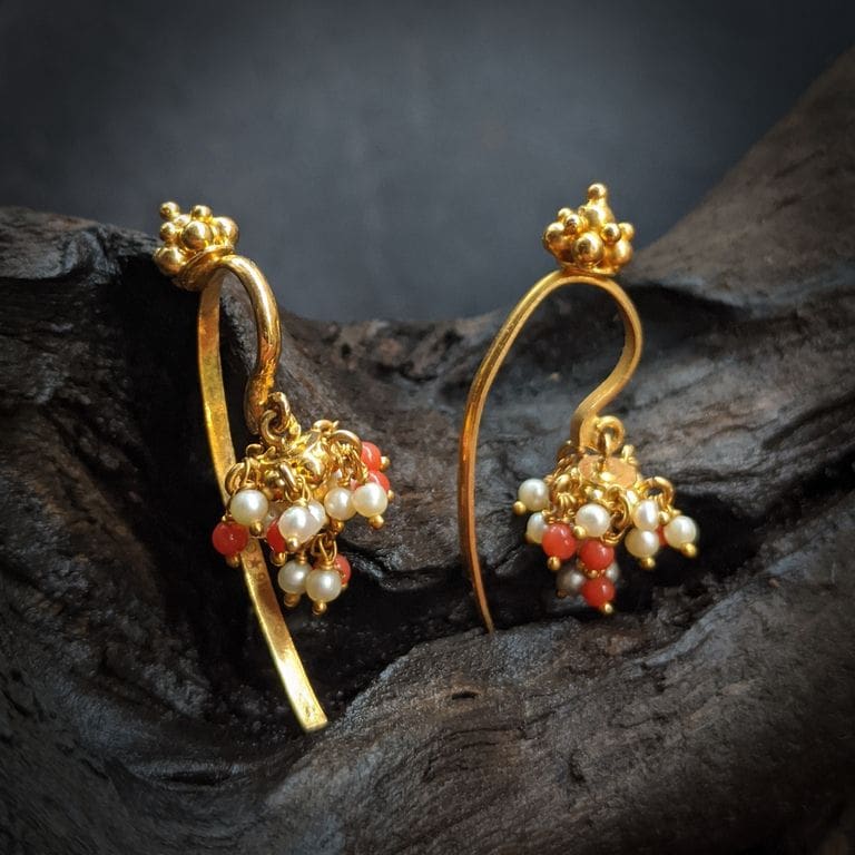 Earring – Bugudi - Pearl Bunch with Red Stone