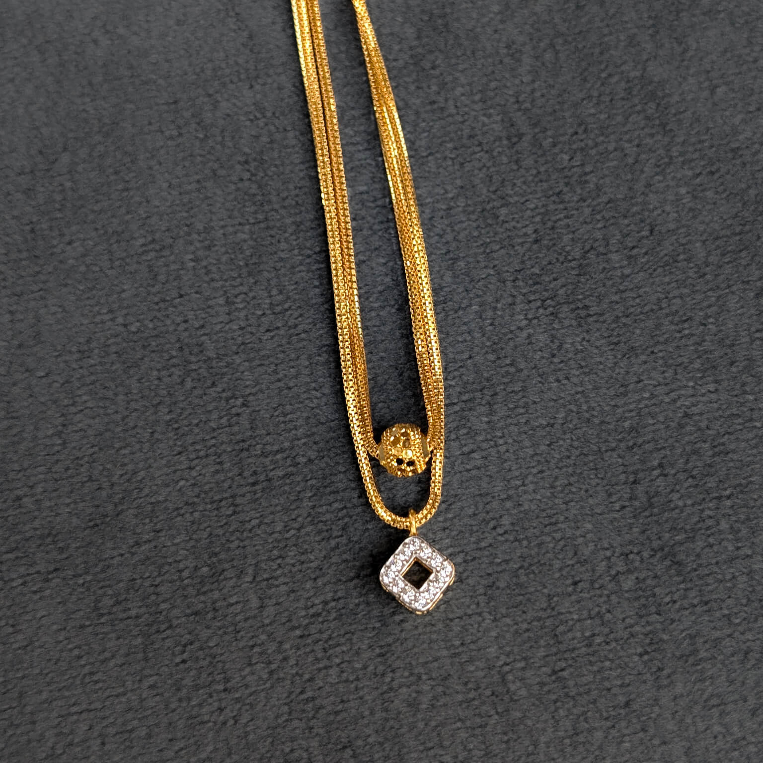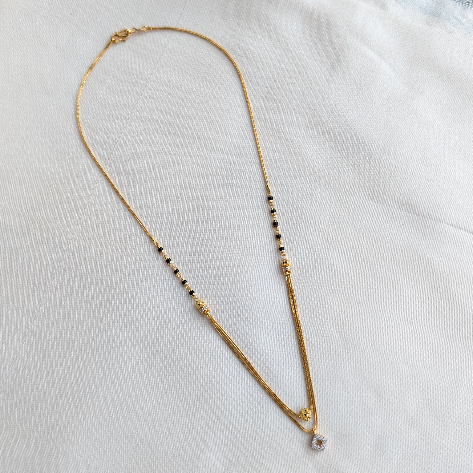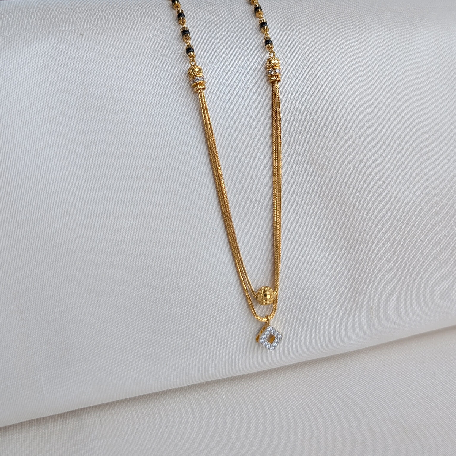 Kanti – Mangalsutra – Black Bead – Square White Cz Gold Ball