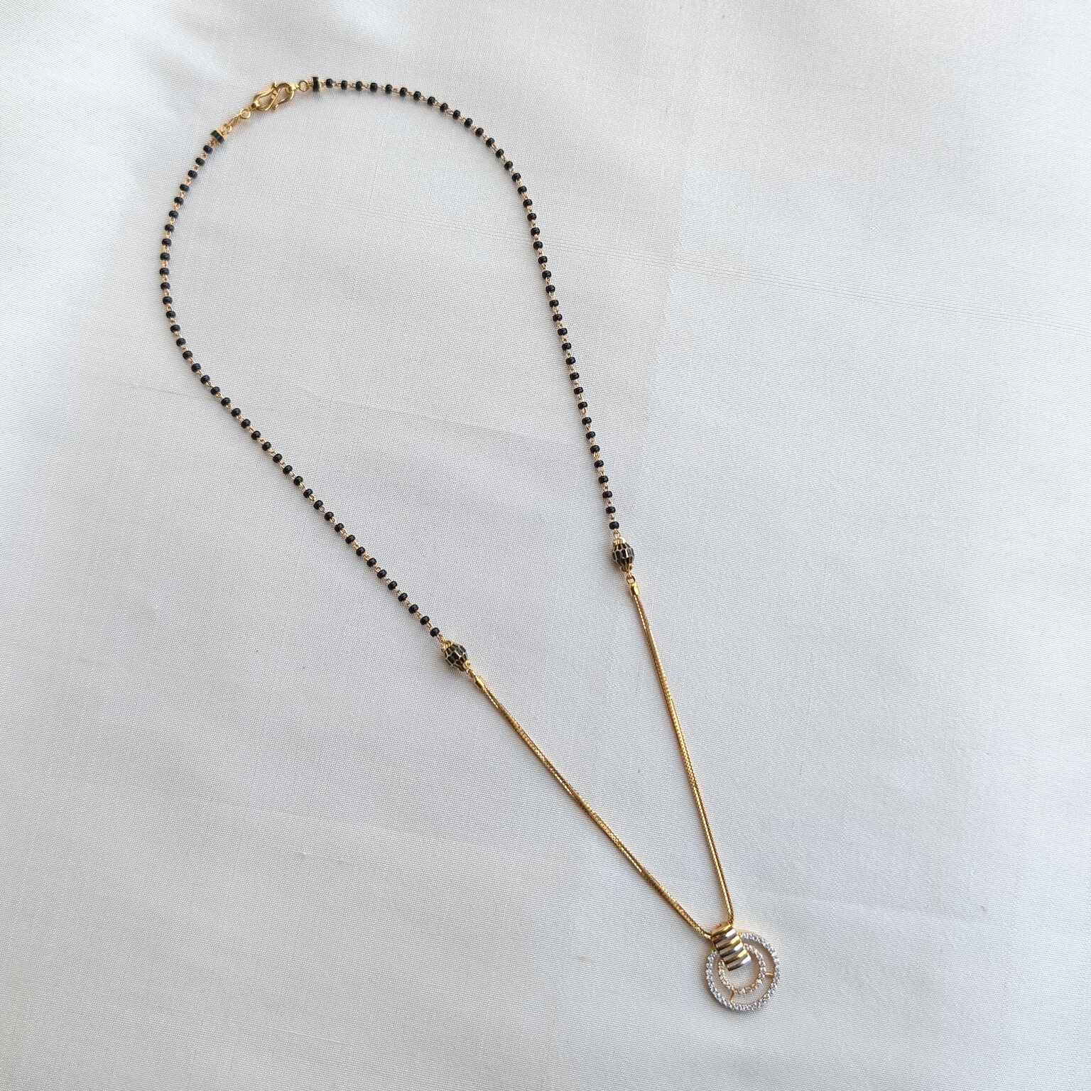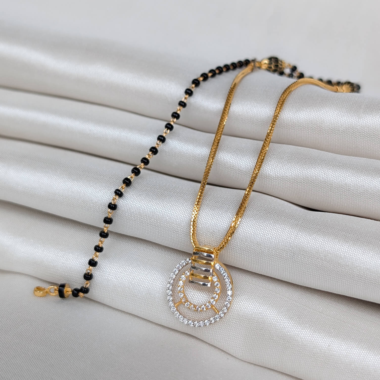 Kanti – Mangalsutra – Black Bead – Circle White Cz