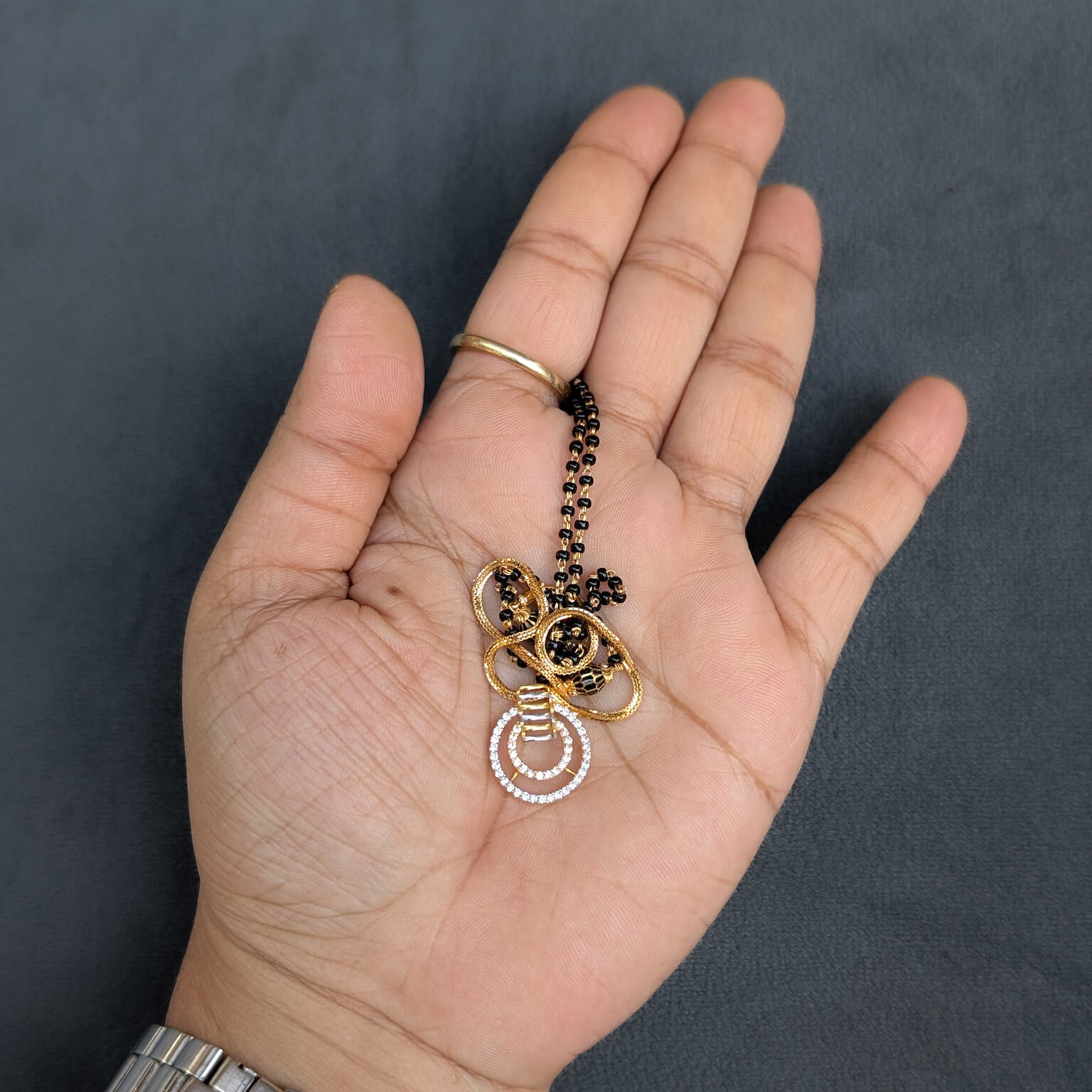Tags: Black Bead, CZ, Gifts For Her, Gold Jewellery, Kanti, Karimani, Mangalsutra, Necklace, S Hook, Women