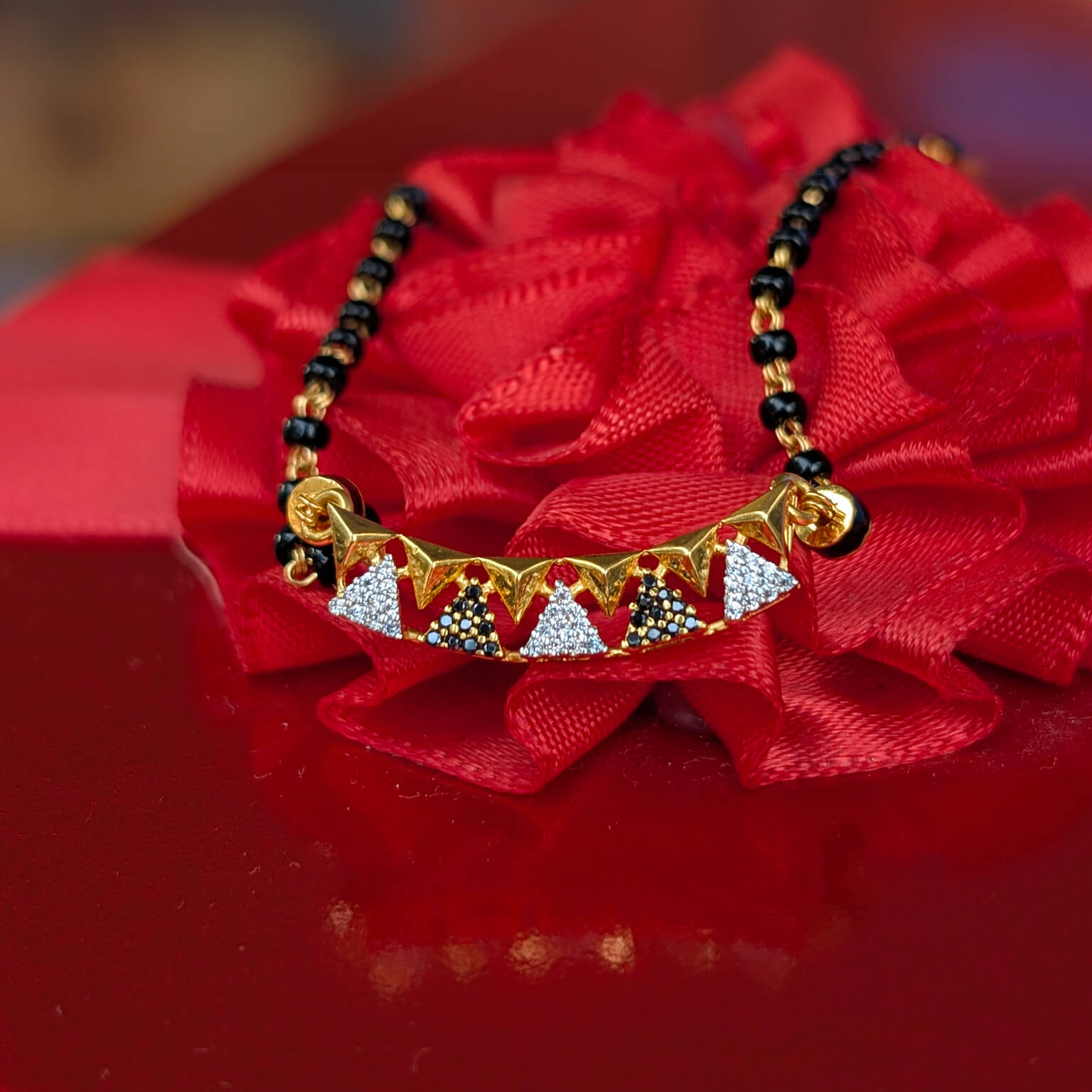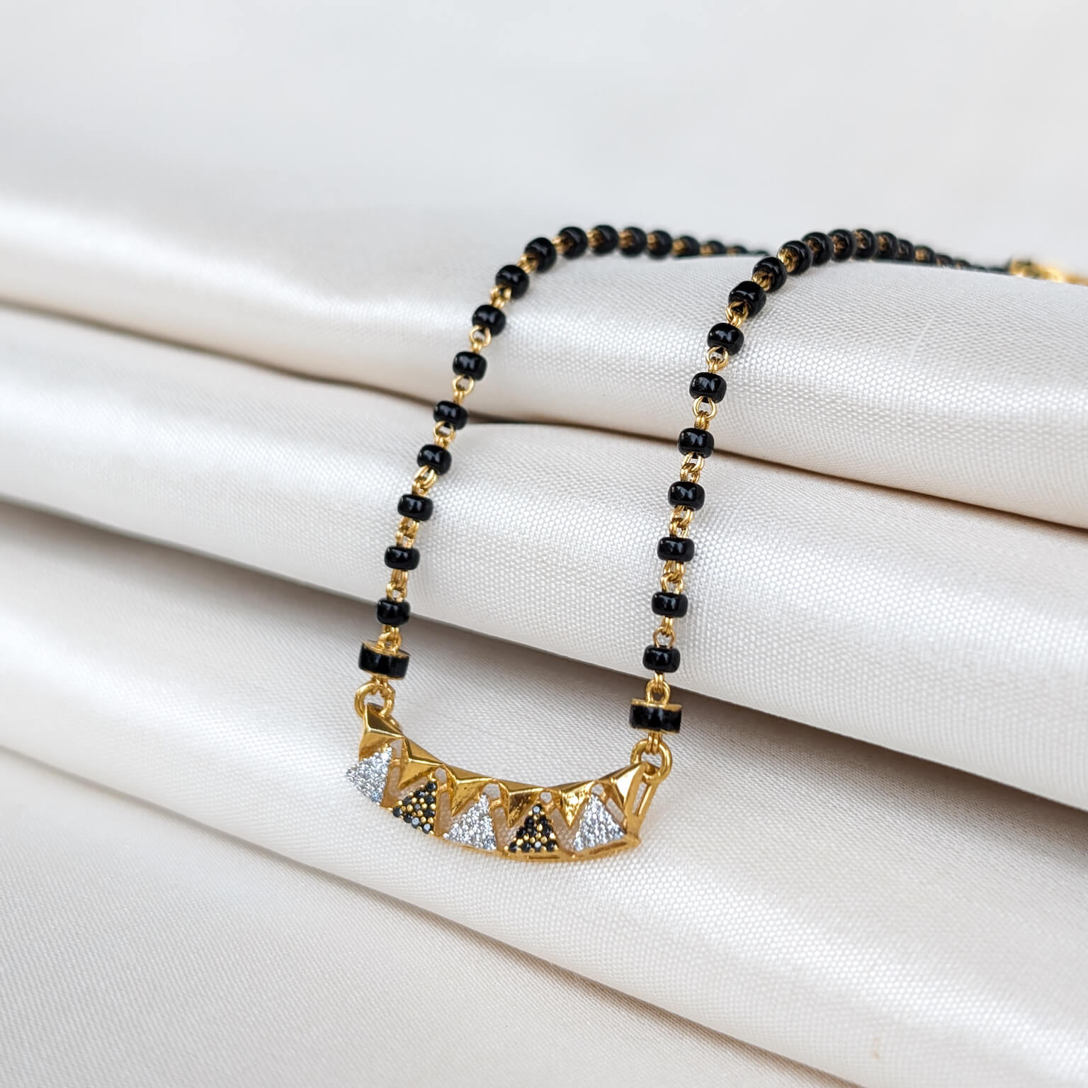 Kanti – Mangalsutra – Black Bead – Triangles White Black Cz