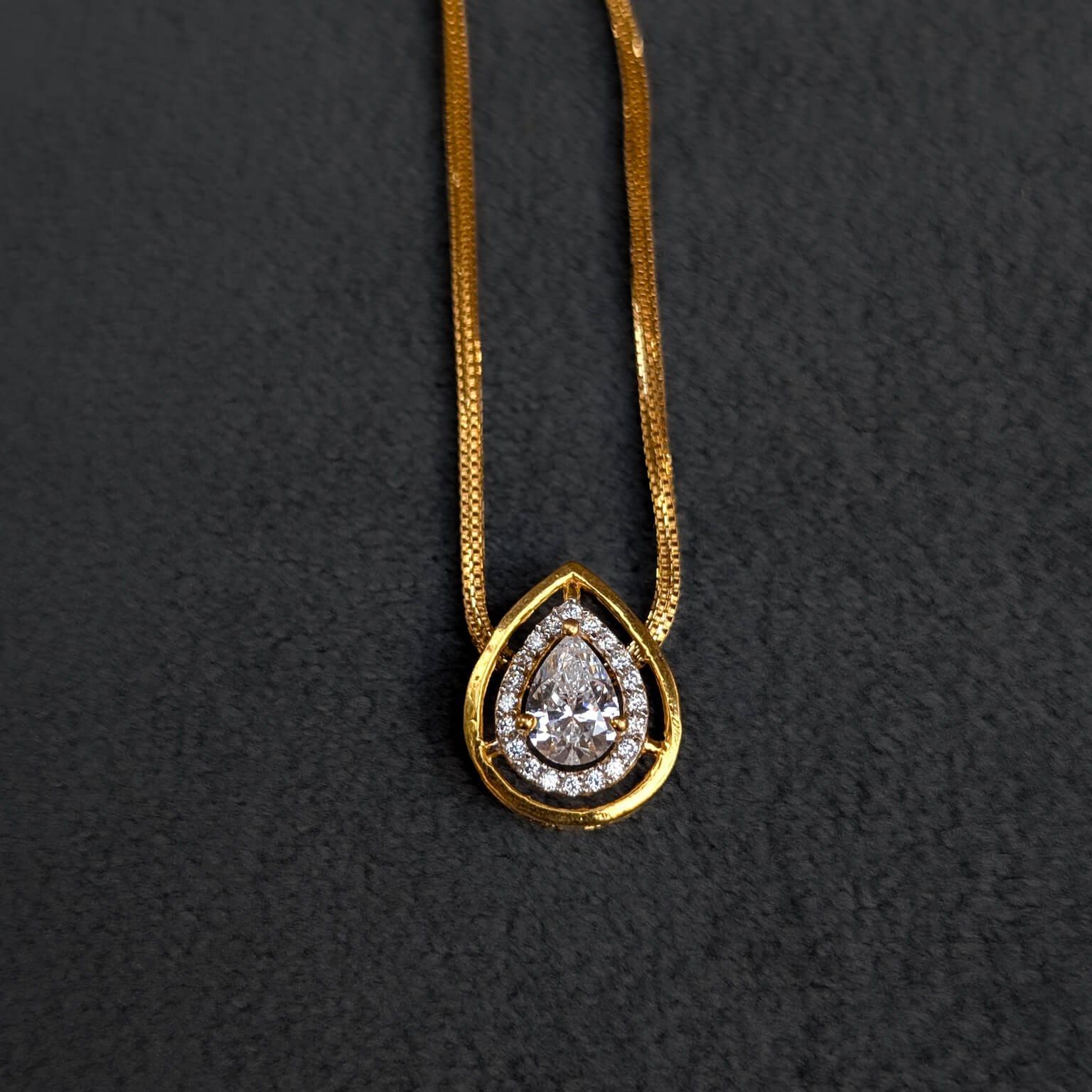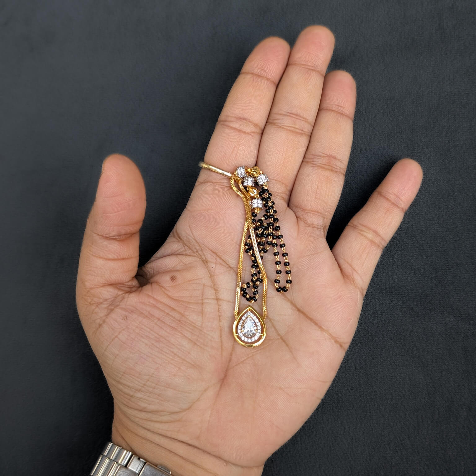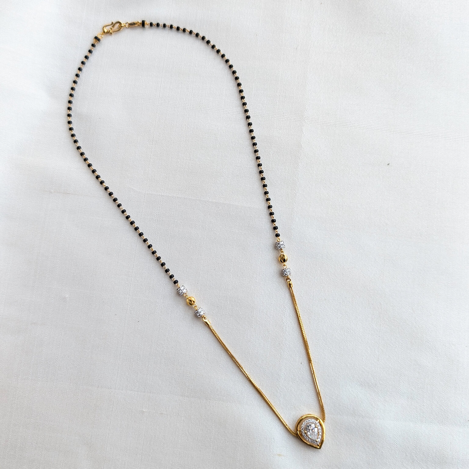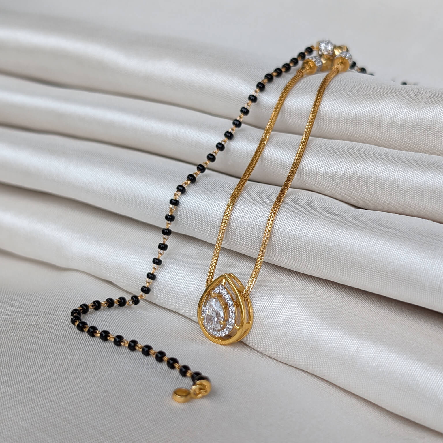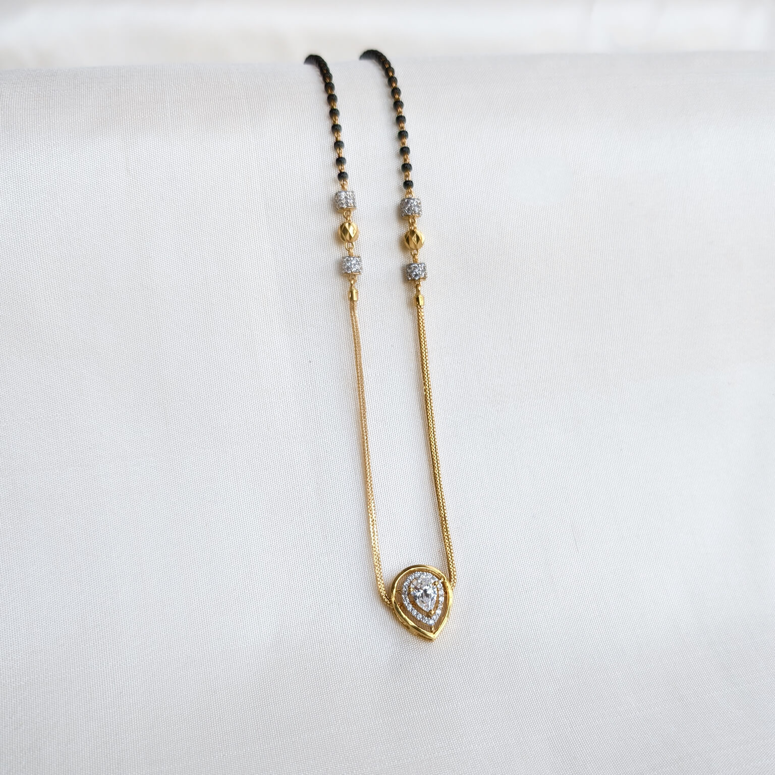 Kanti – Mangalsutra – Black Bead – Pear Solitaire White Cz