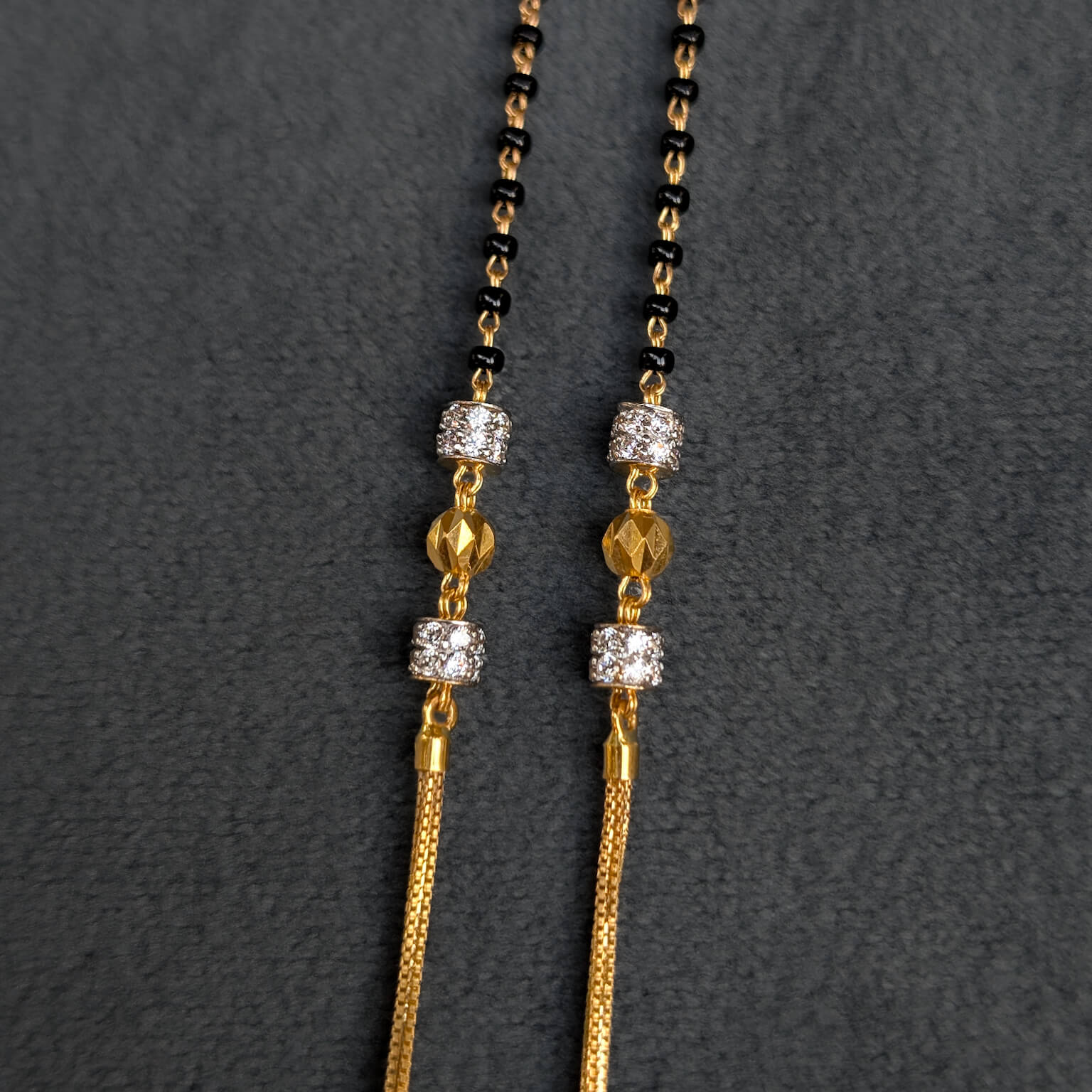 Tags: Black Bead, CZ, Gifts For Her, Gold Jewellery, Kanti, Karimani, Mangalsutra, Necklace, S Hook, Women