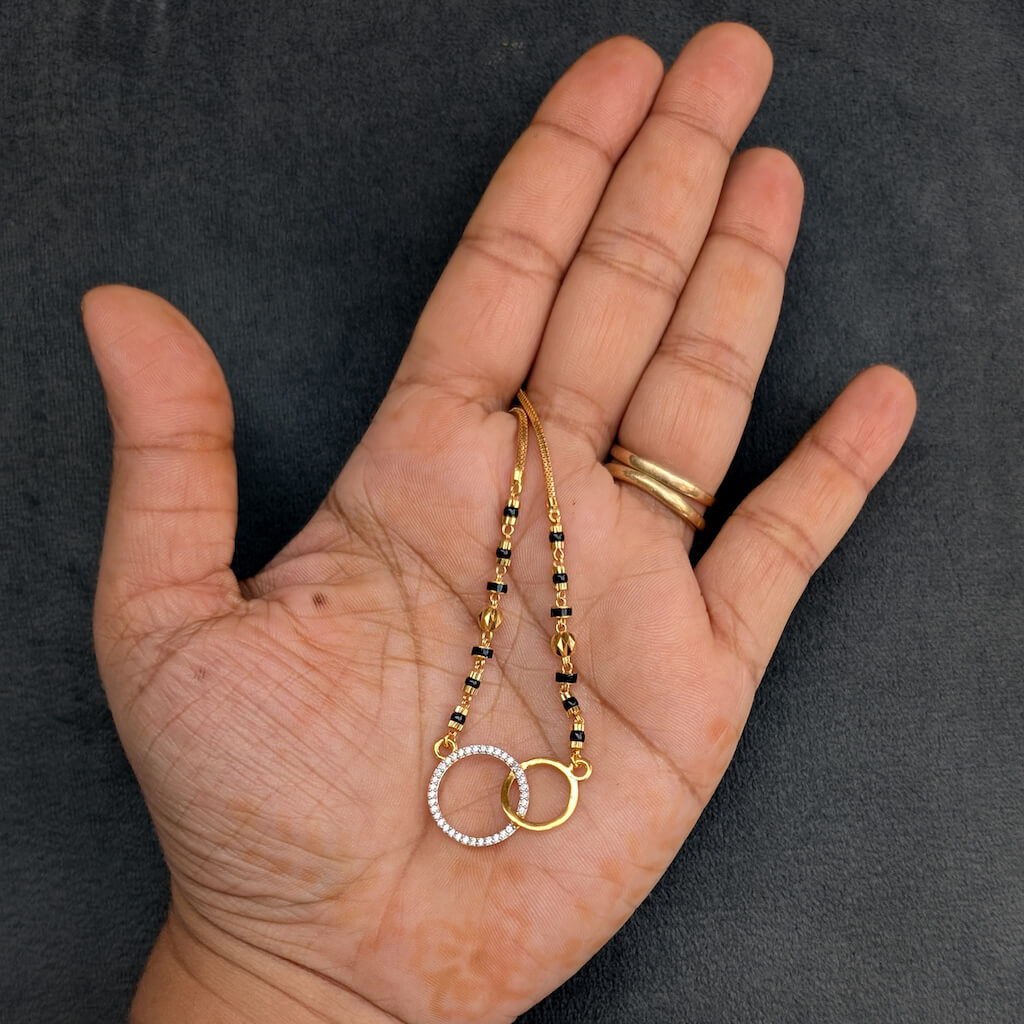 Tags: Black Bead, CZ, Gifts For Her, Gold Jewellery, Kanti, Karimani, Mangalsutra, Necklace, S Hook, Women