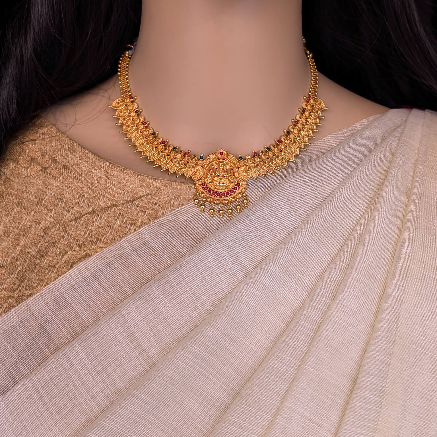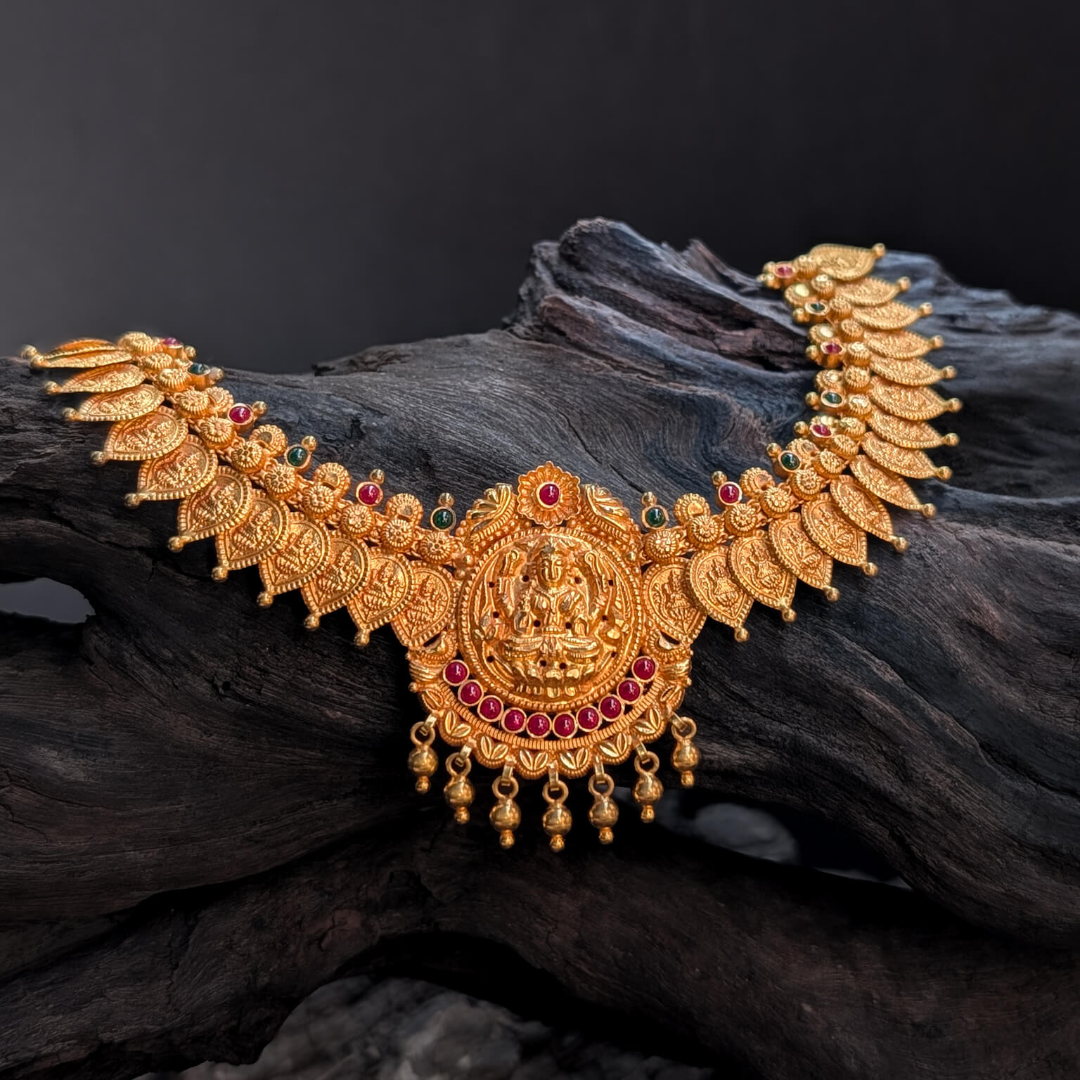 Necklace – Short – Antique Lakshmi Center Pear Kasu Cob R+E