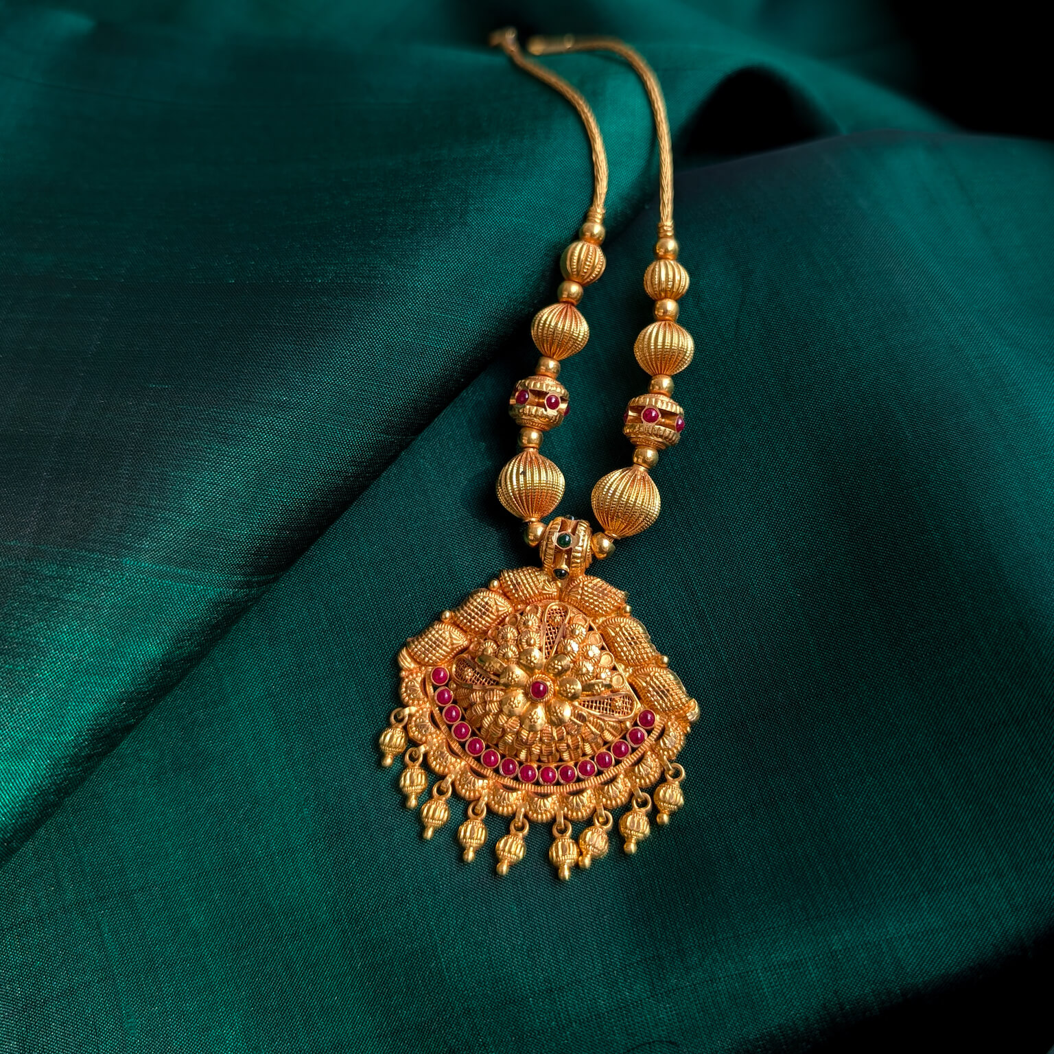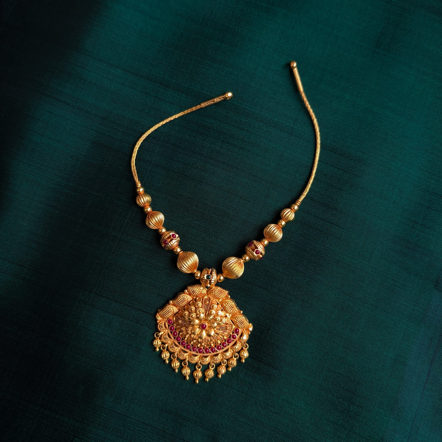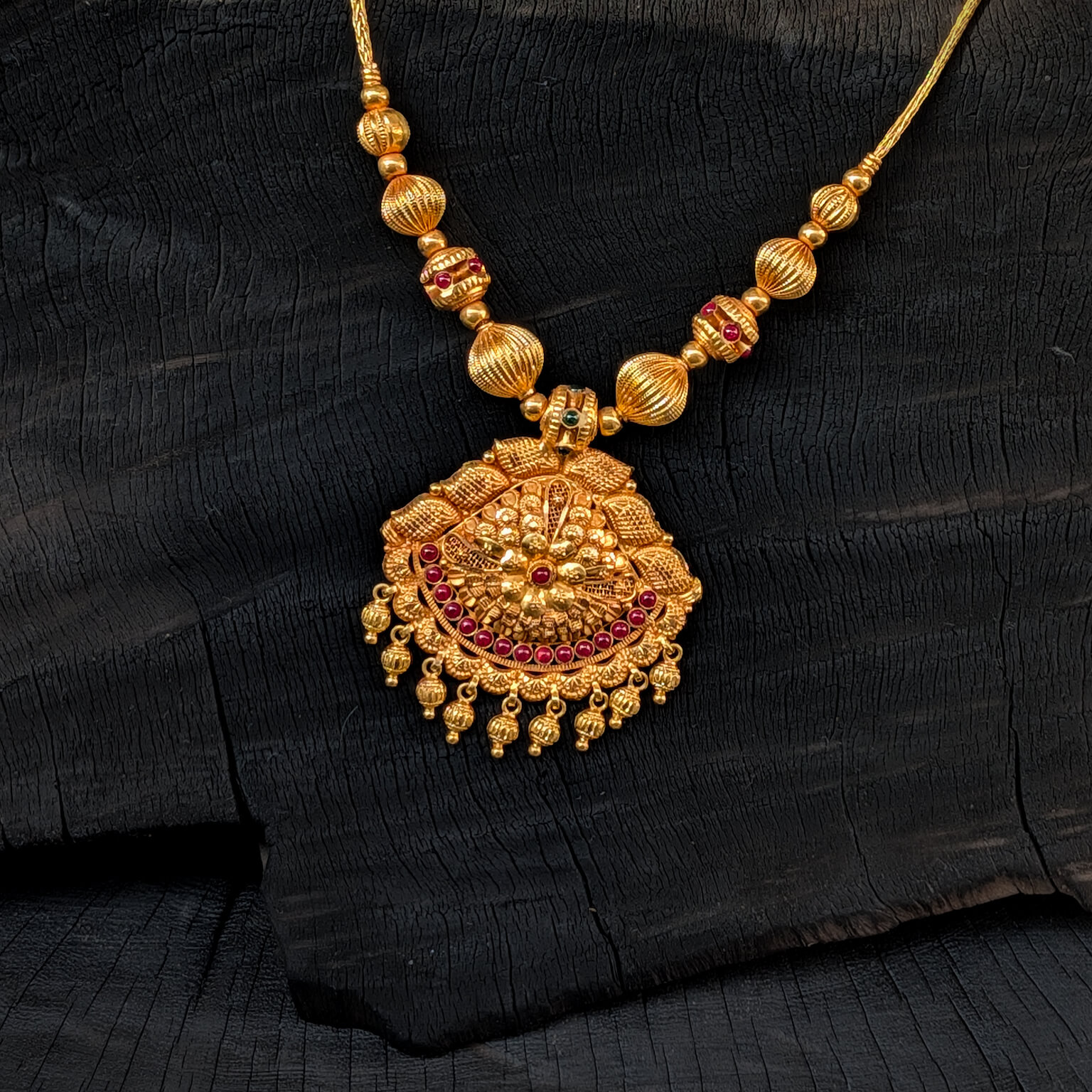 Necklace - Short - Antique Lakshmi Kasu Floral Cob R+E