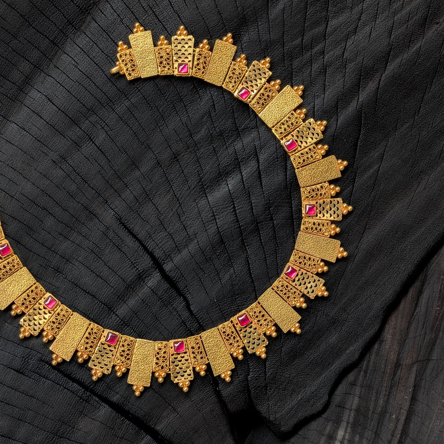 Necklace – Short – Antique Egyptian Inspired Motif Cob Ruby