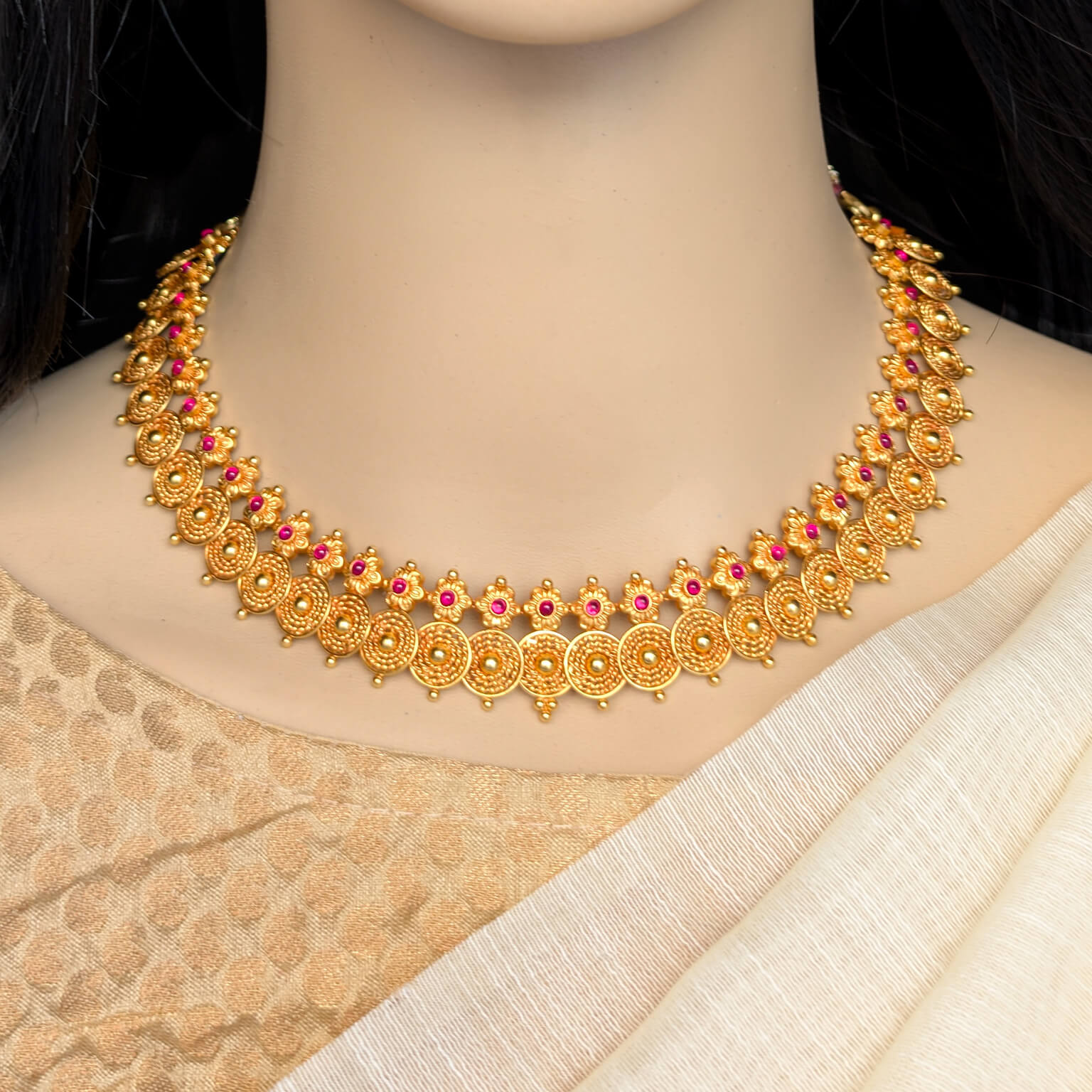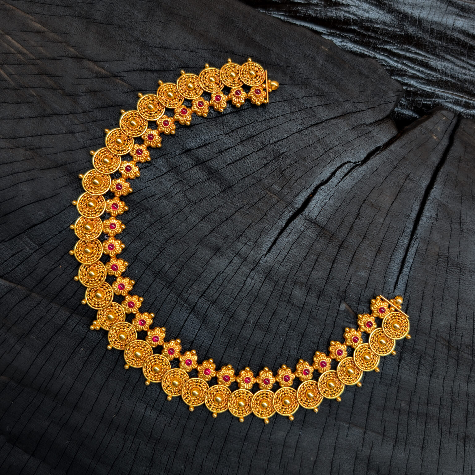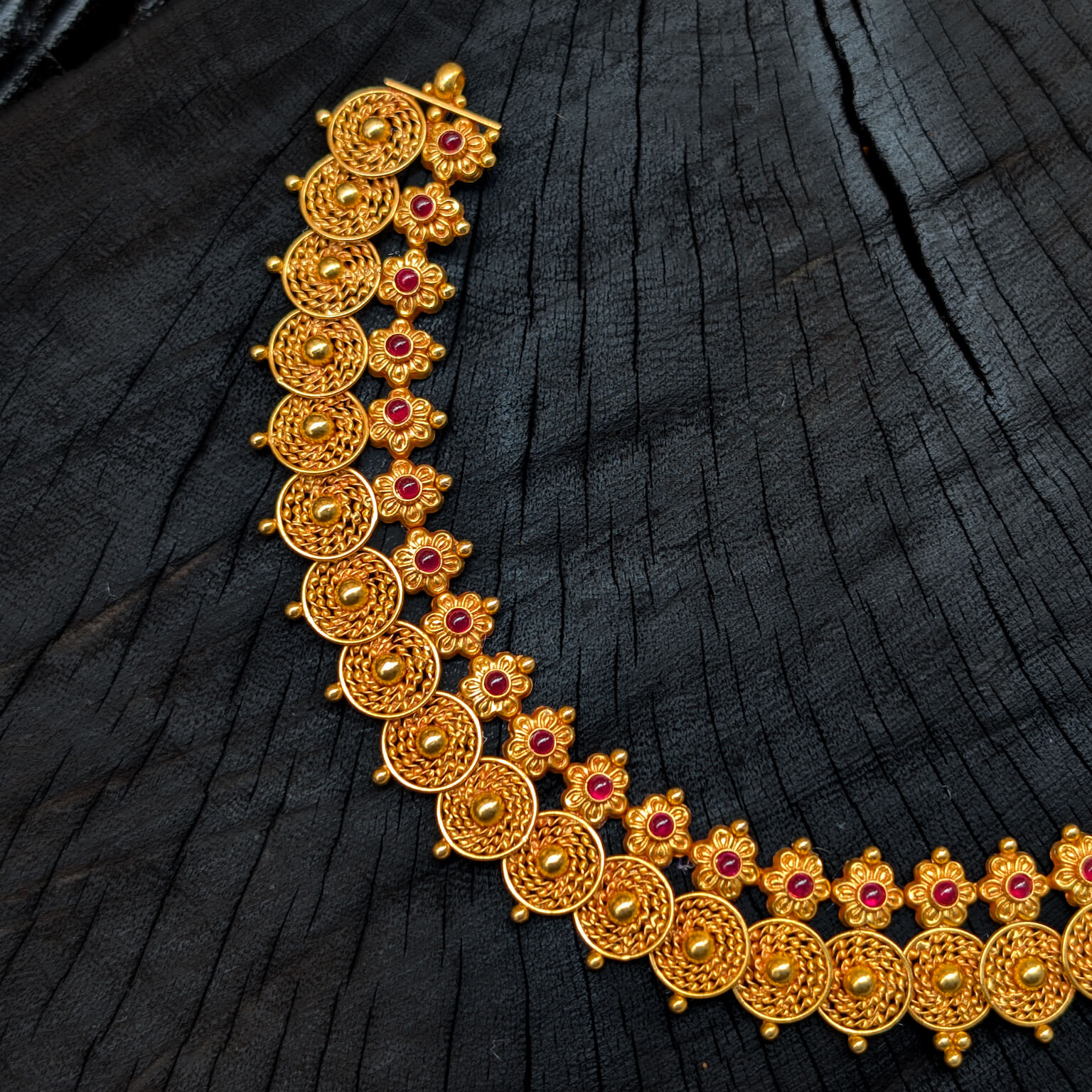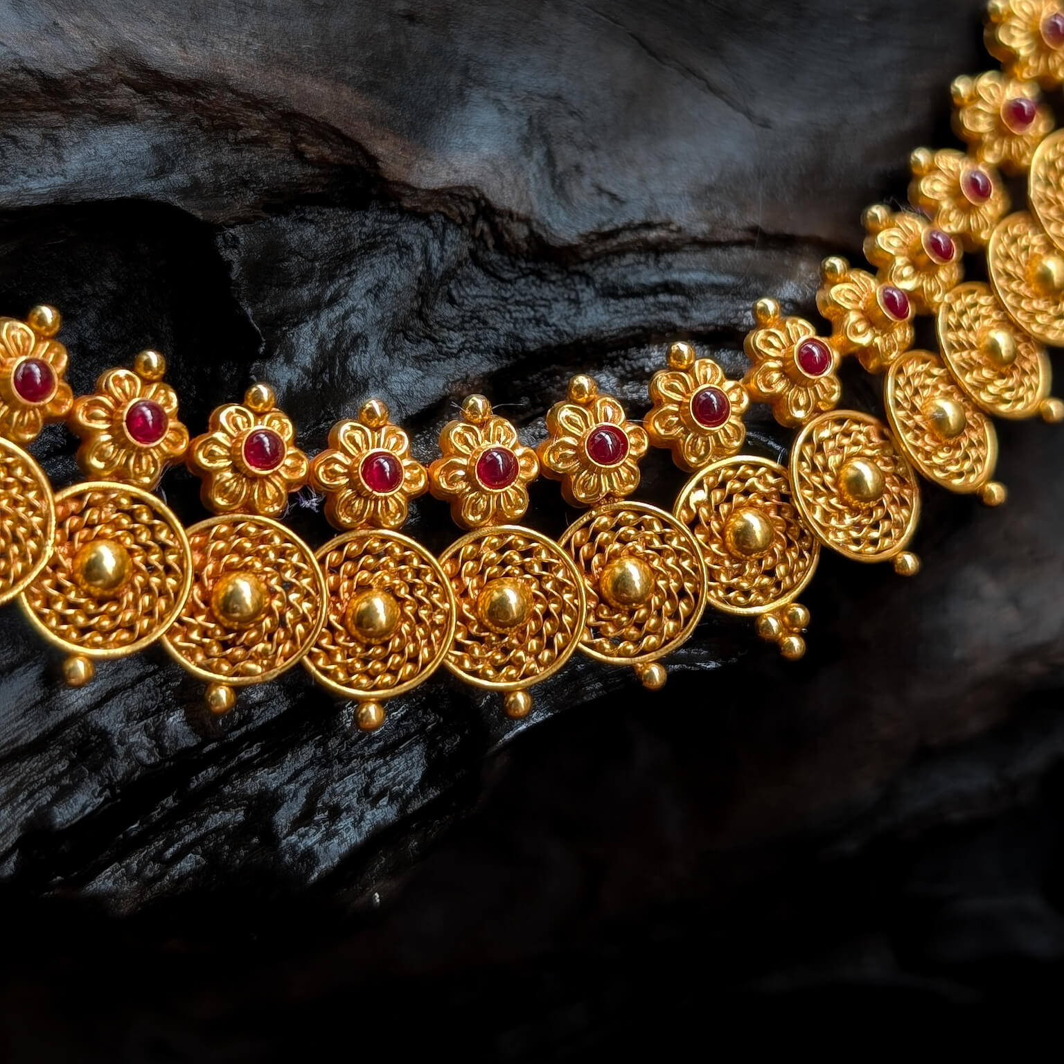 Necklace – Short – Antique Floral Motif Cob Ruby