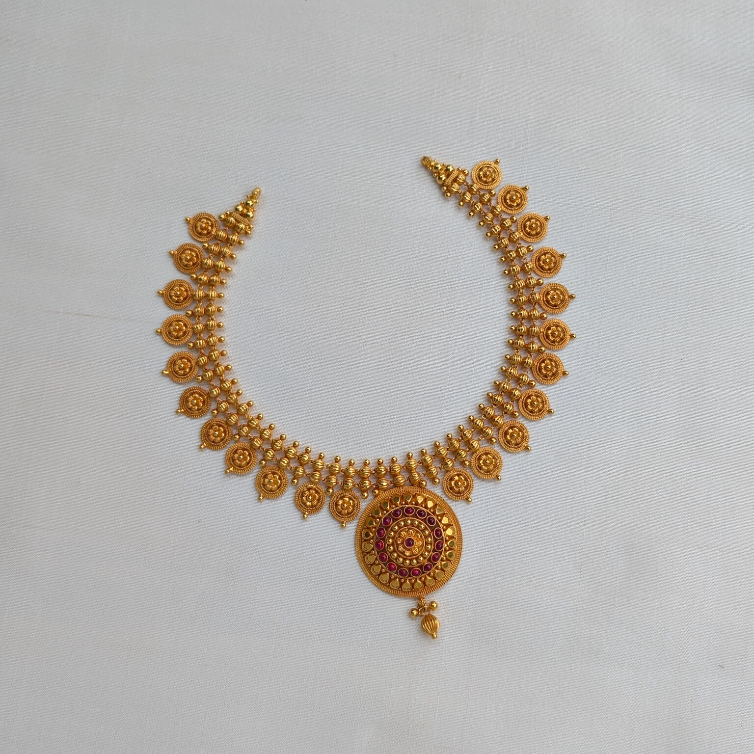 Necklace - Antique EF Floral Nakshe Ball Haram