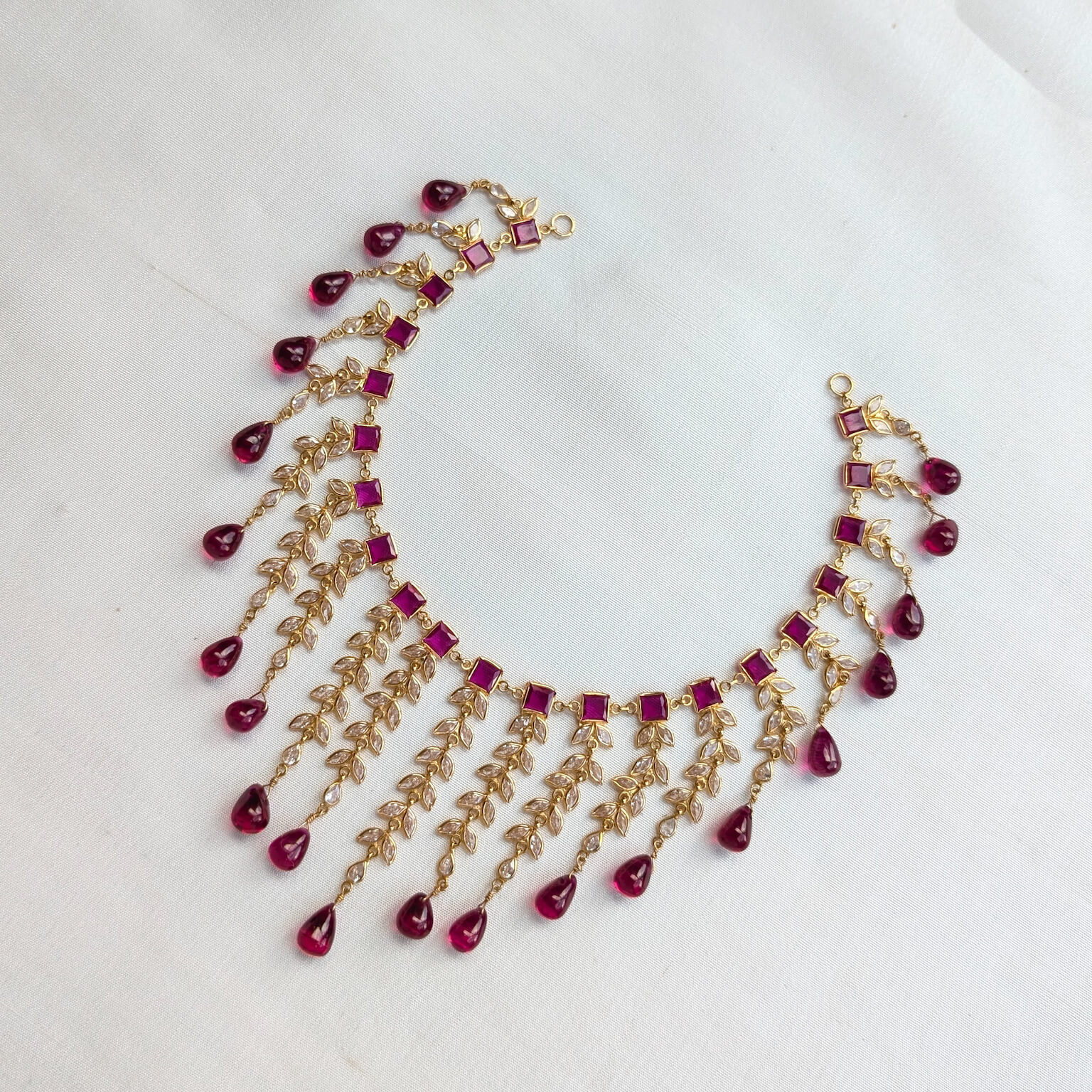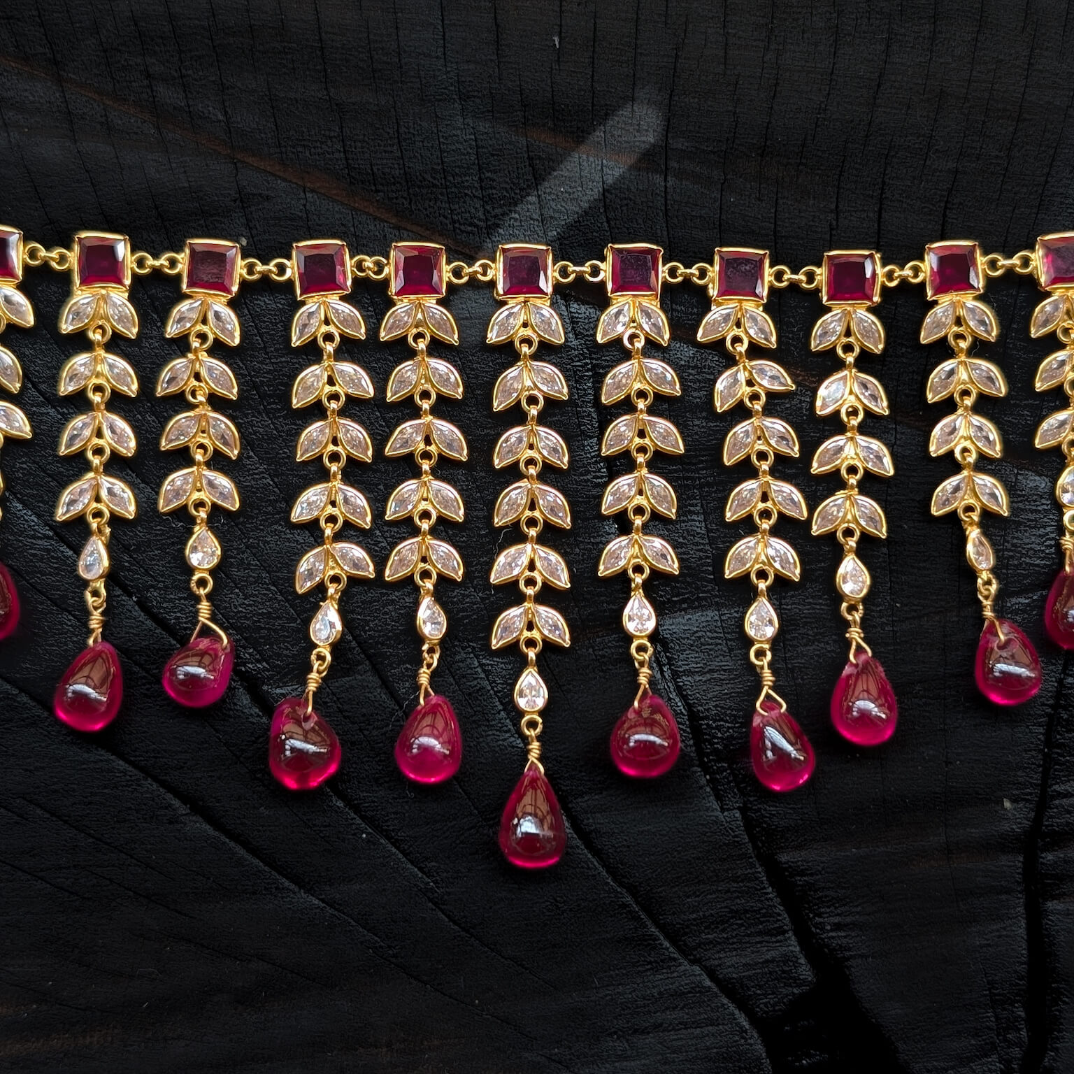 Tags: Color CZ, CZ, Gemstone Jewellery, Gifts For Her, Jadau, Necklace, Red Bead, Red Stone, Short, Synthetic Polki, Women