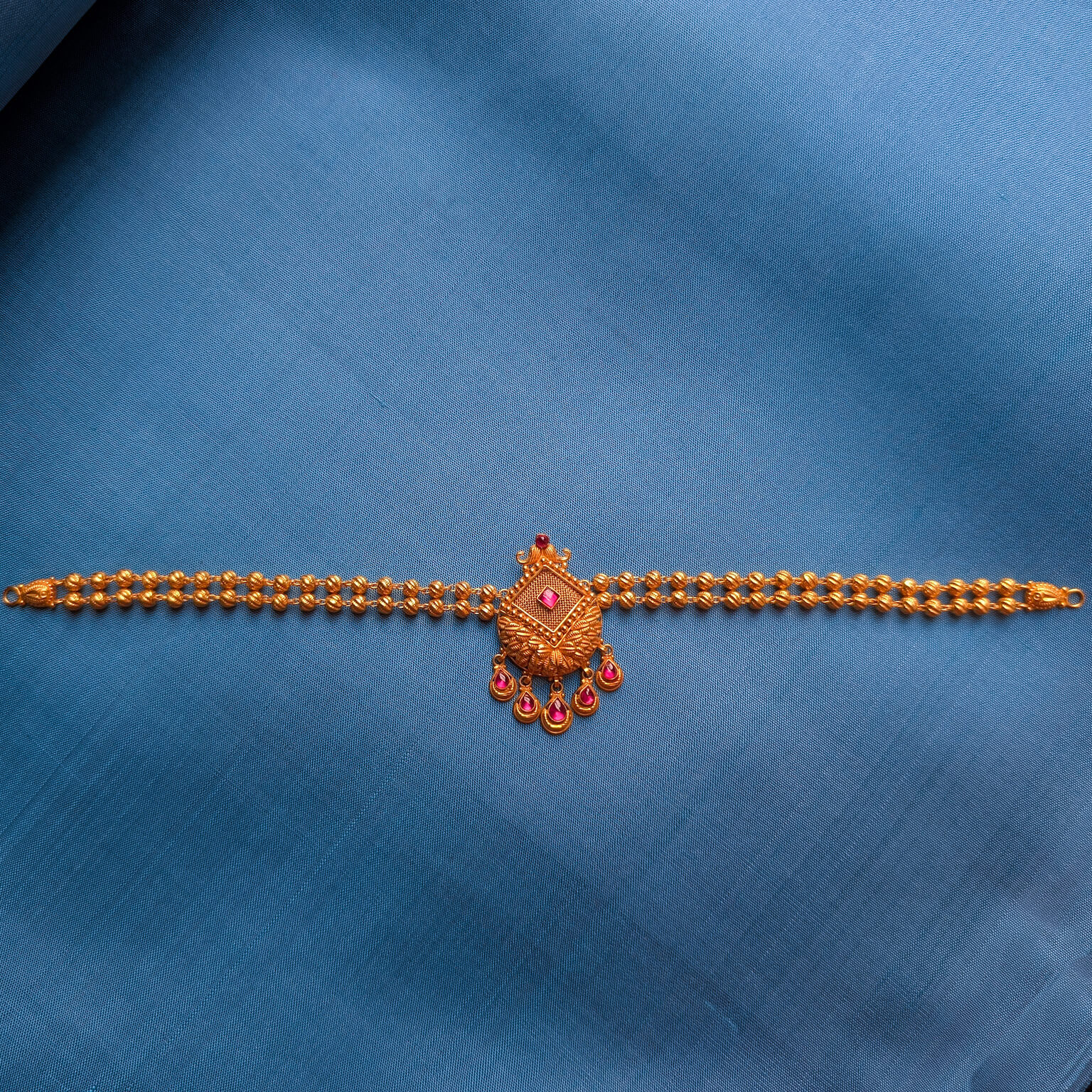 Necklace - 2 In 1 - Choker-Armlet - Antique Floral Cob Ruby