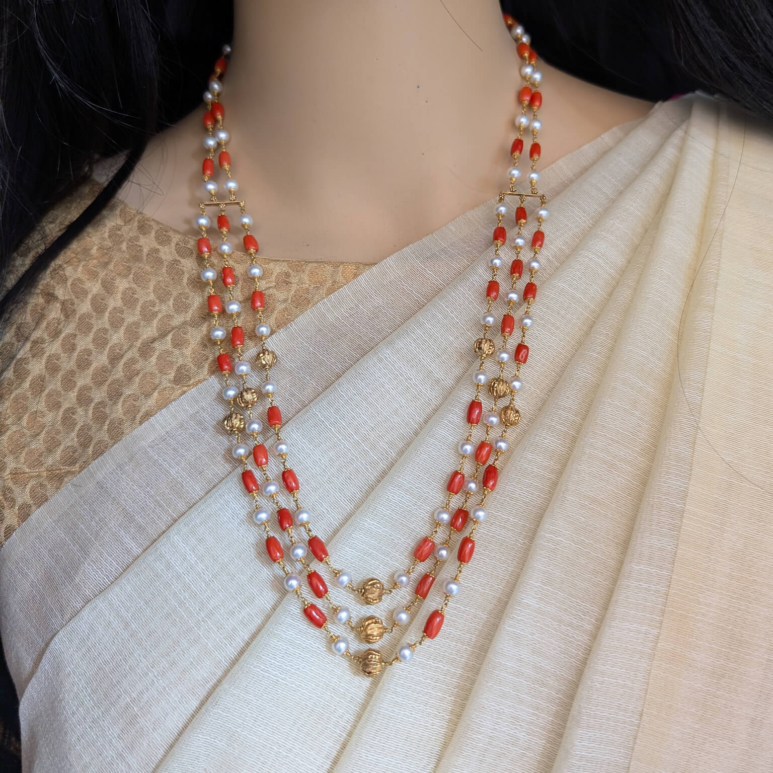 Necklace – Short – 2+3L Coral Pearl Cap Sutti Antique Ball