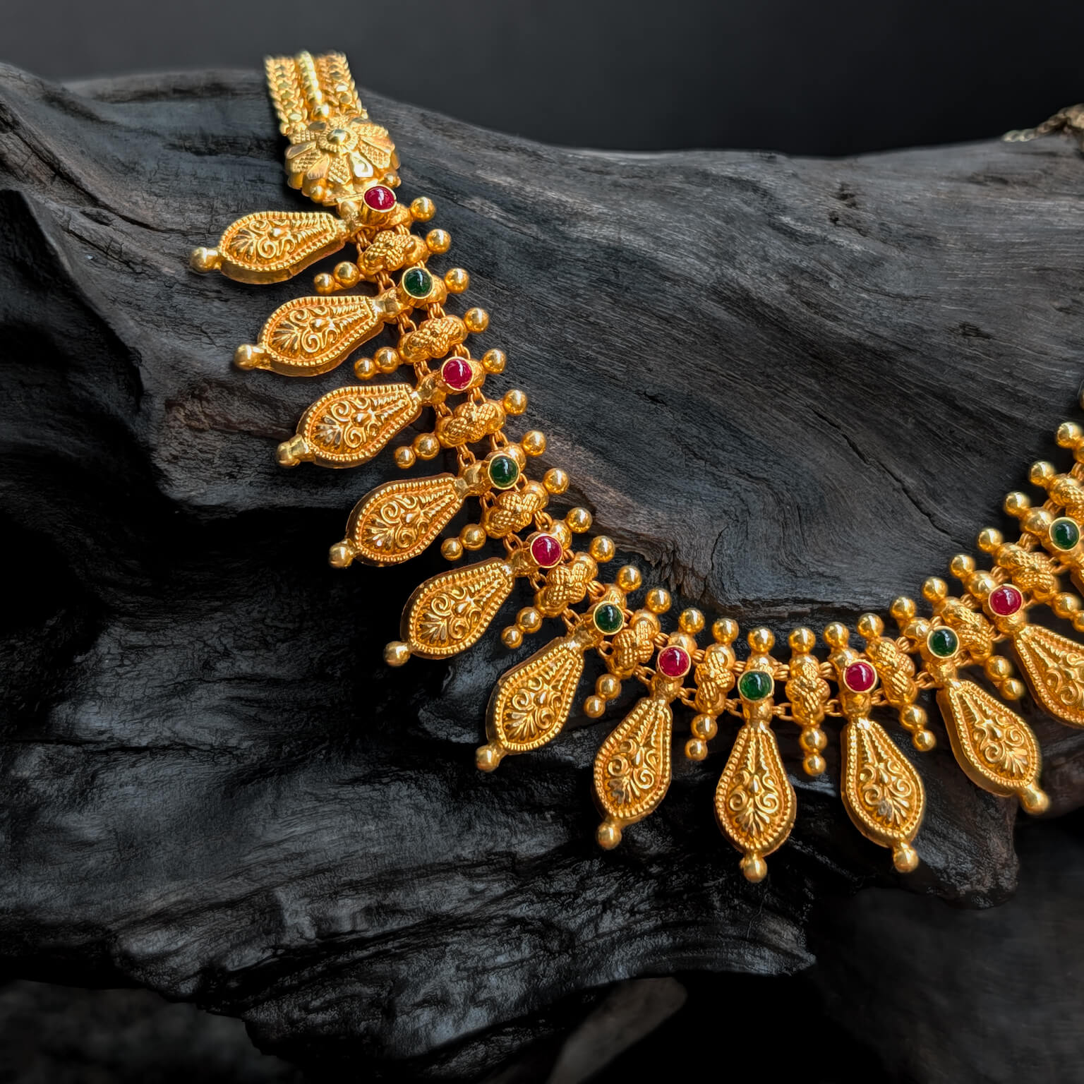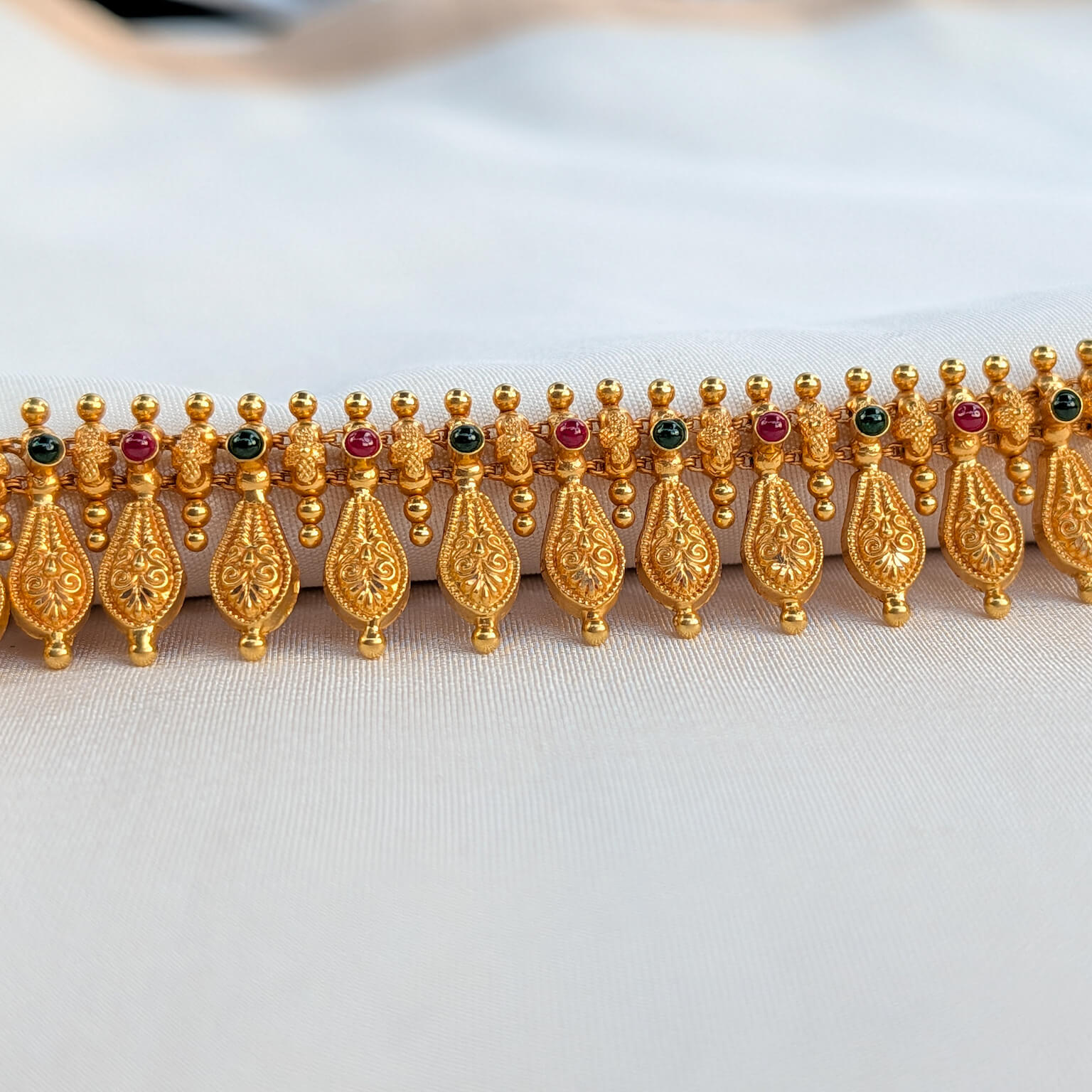 Necklace - Short - Antique Peacock Motif Lakshmi Cob Ruby
