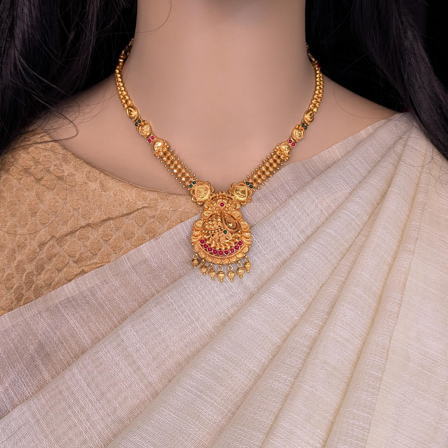 Necklace - Mini - Antique Floral Motif Cob Ruby Emerald