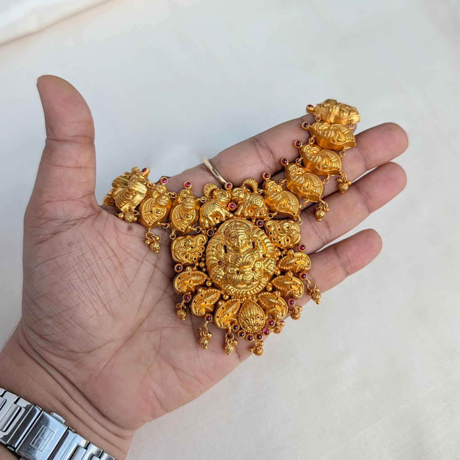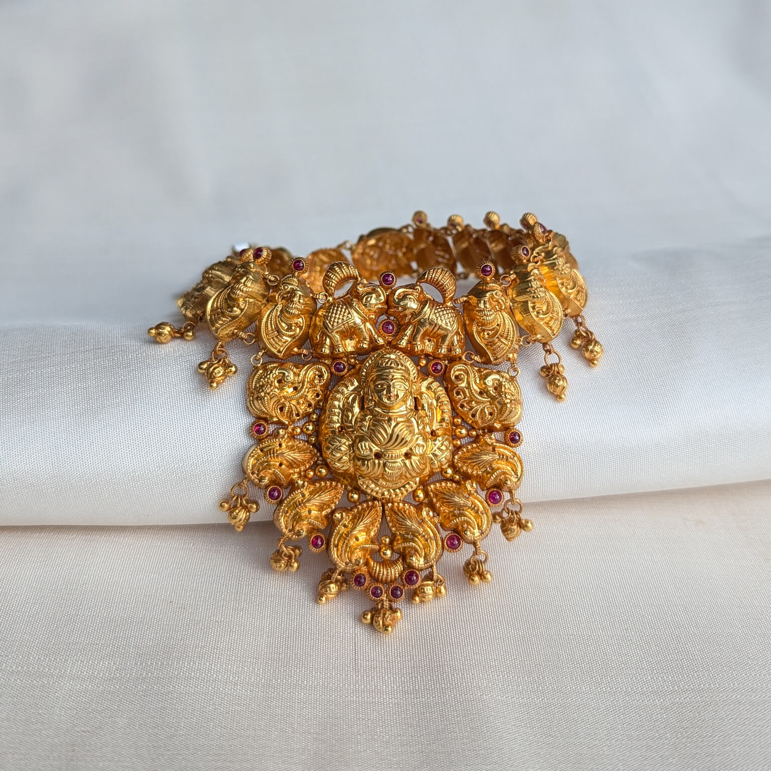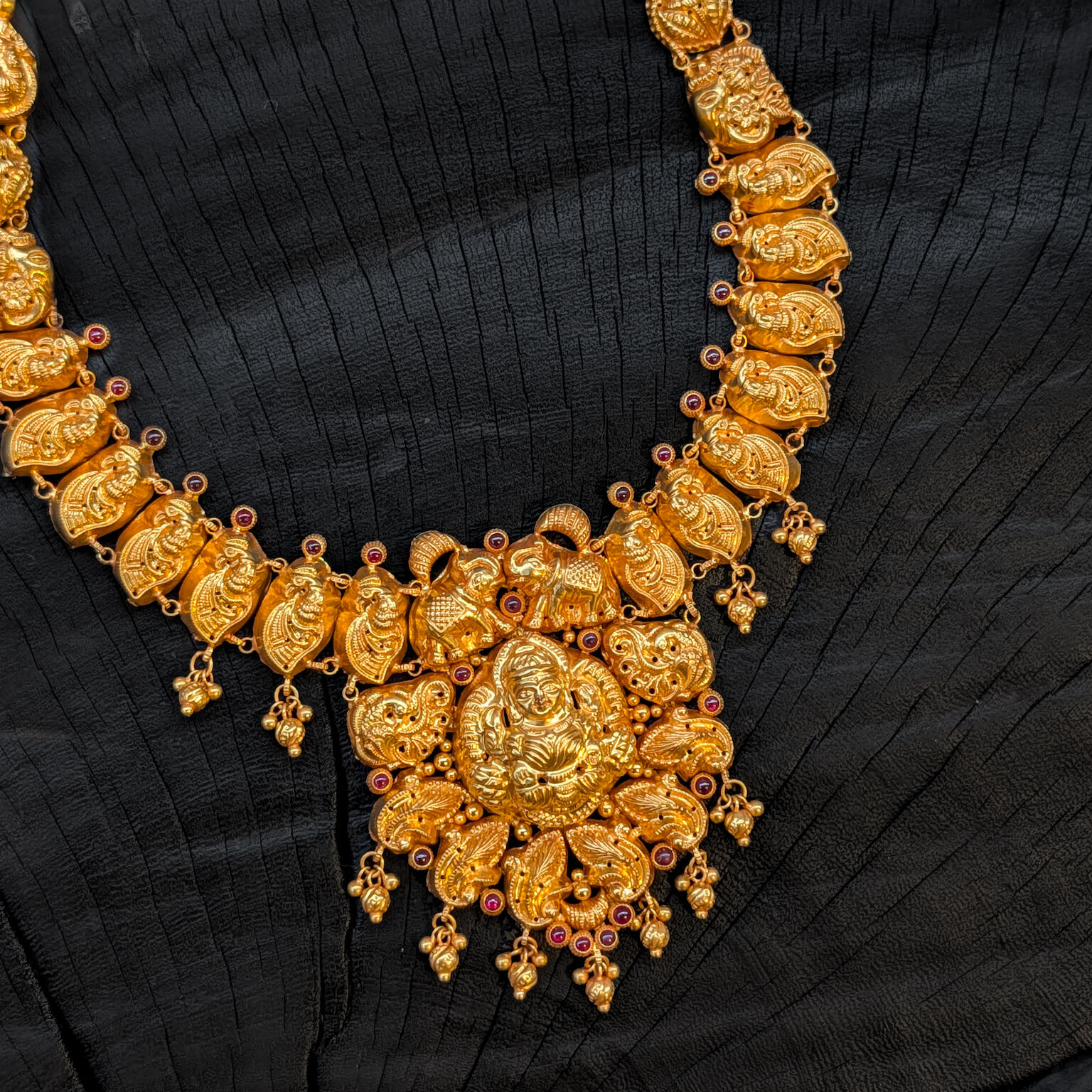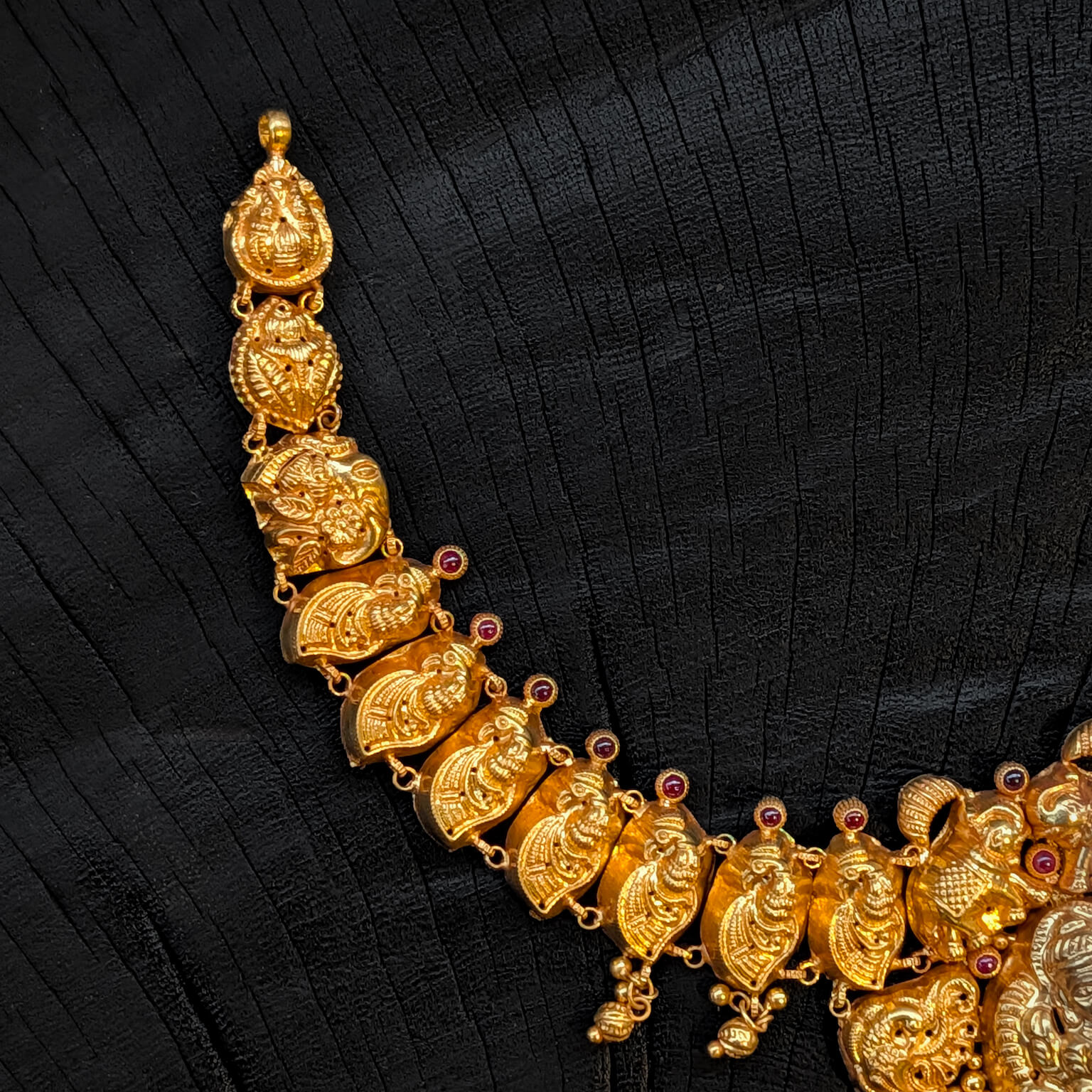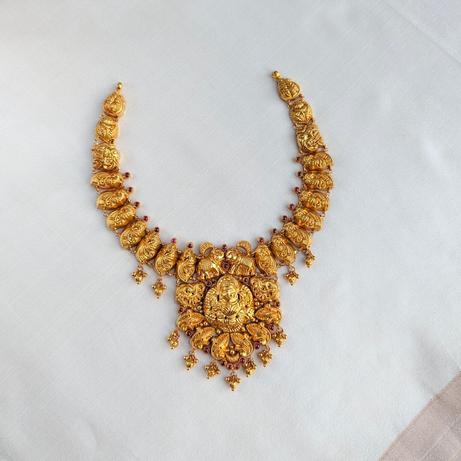 Necklace – Short – Antique Peacock Motif Lakshmi Cob Ruby