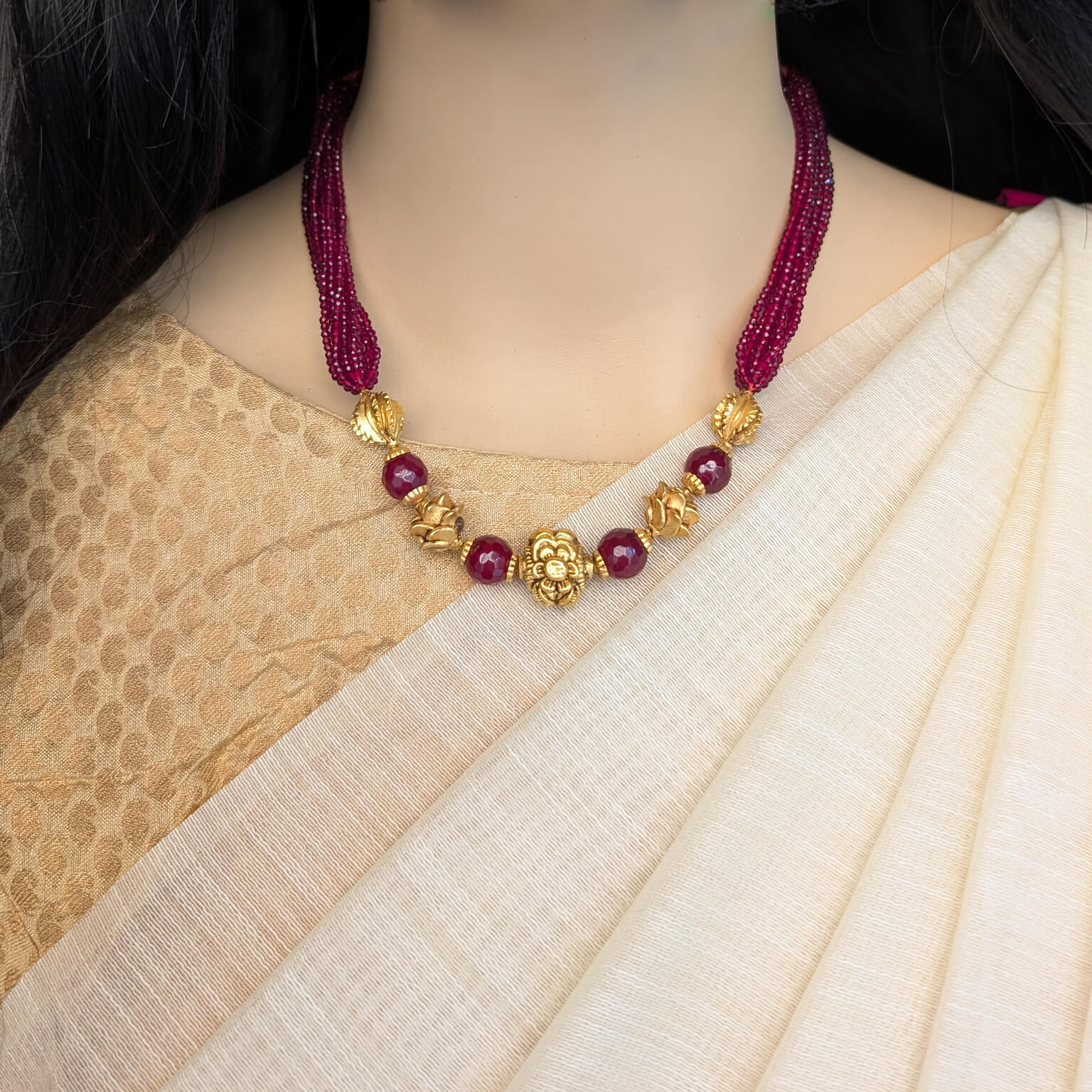 Necklace – Antique Mallige With Cob Ruby