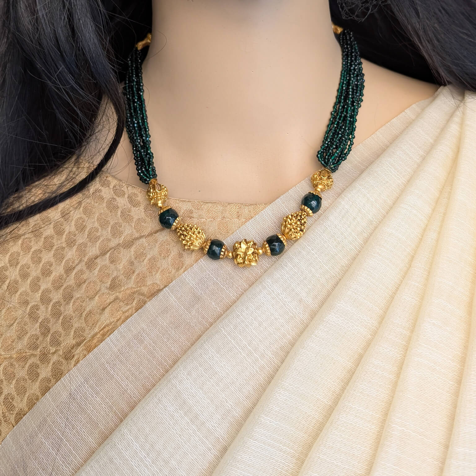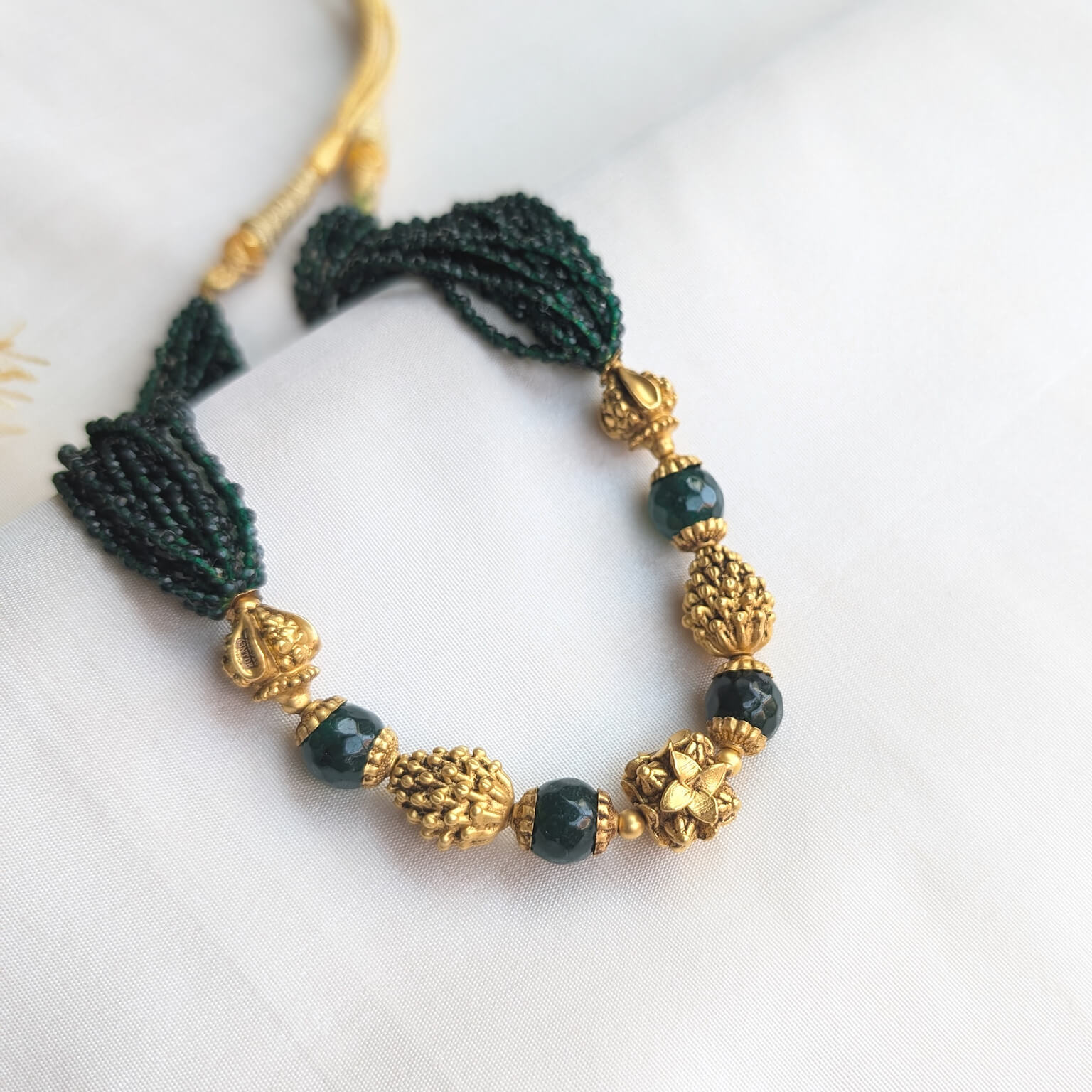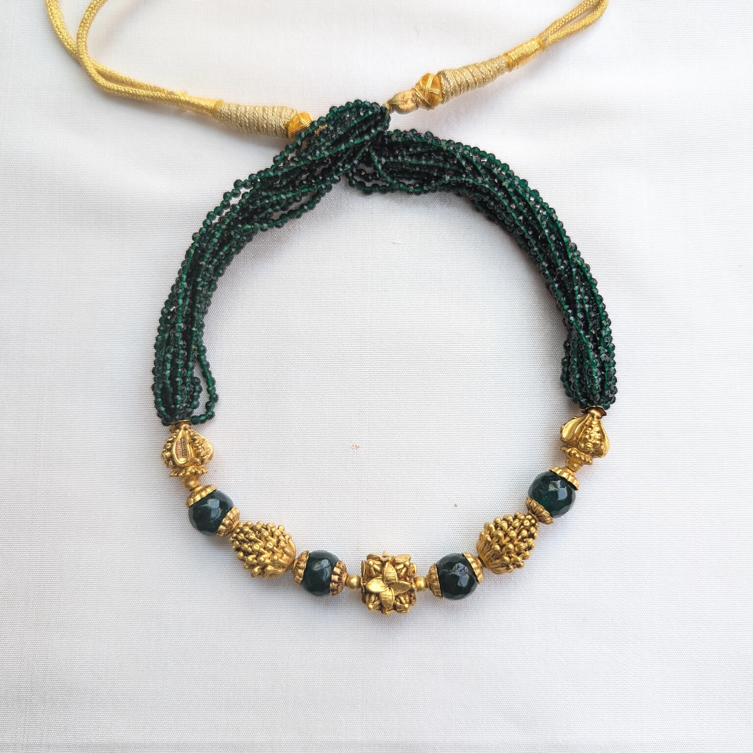 Necklace – Short – Antique EF Ball 12L Green Spinel Beads