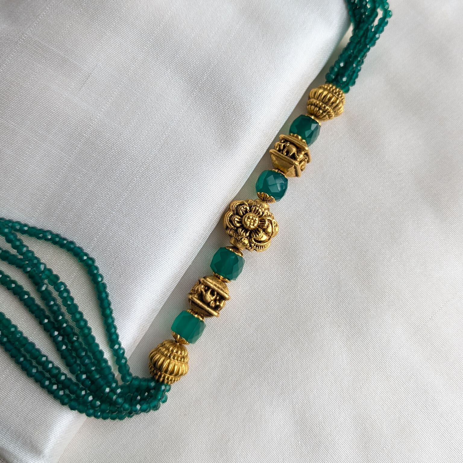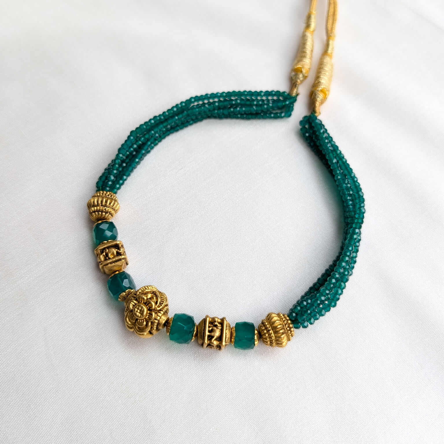 Necklace – Short – Antique EF Ball 6L Teal Green Spinel Bead