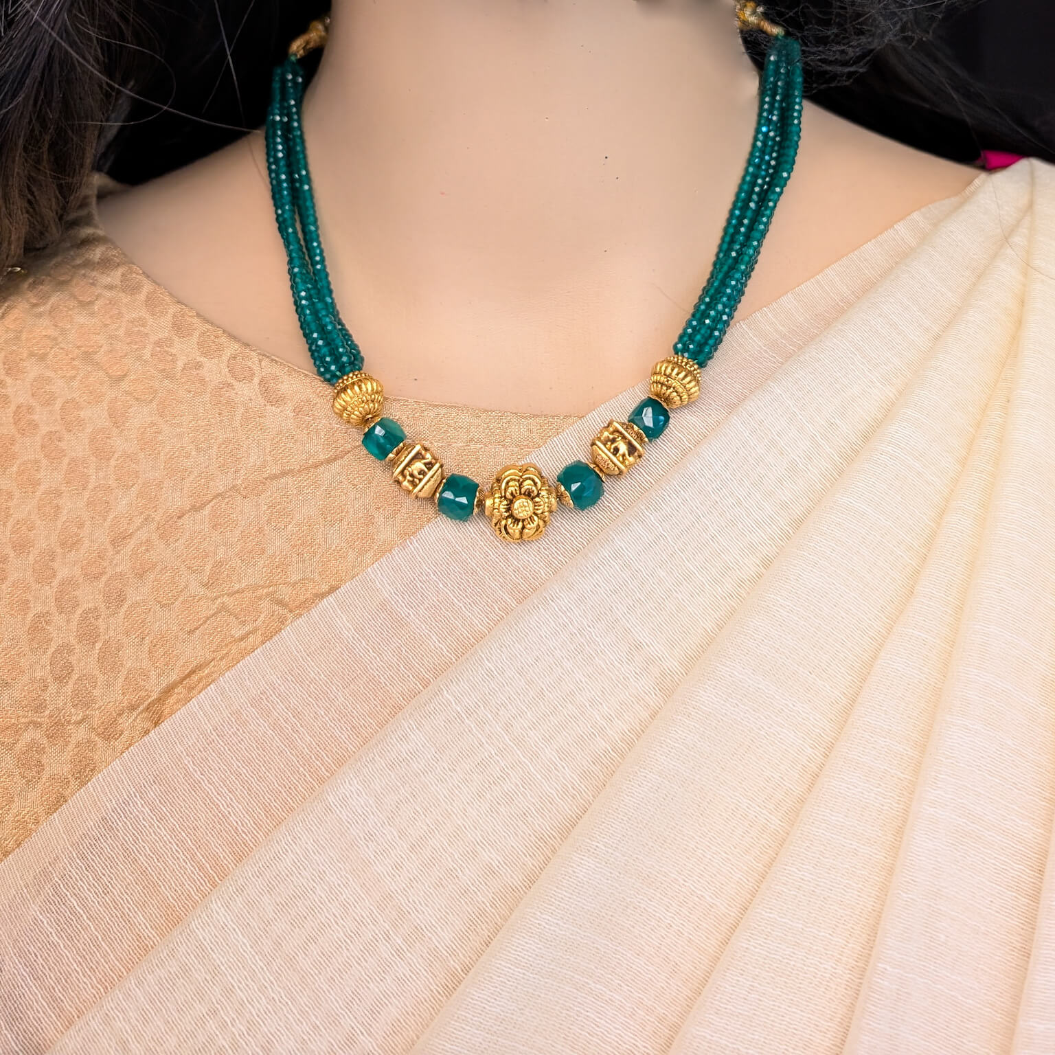 Tags: Antique, Antique Jewellery, EF, Electro Forming, Gifts For Her, Green Bead, Necklace, Short, Spinel, Teal Green Bead, Women