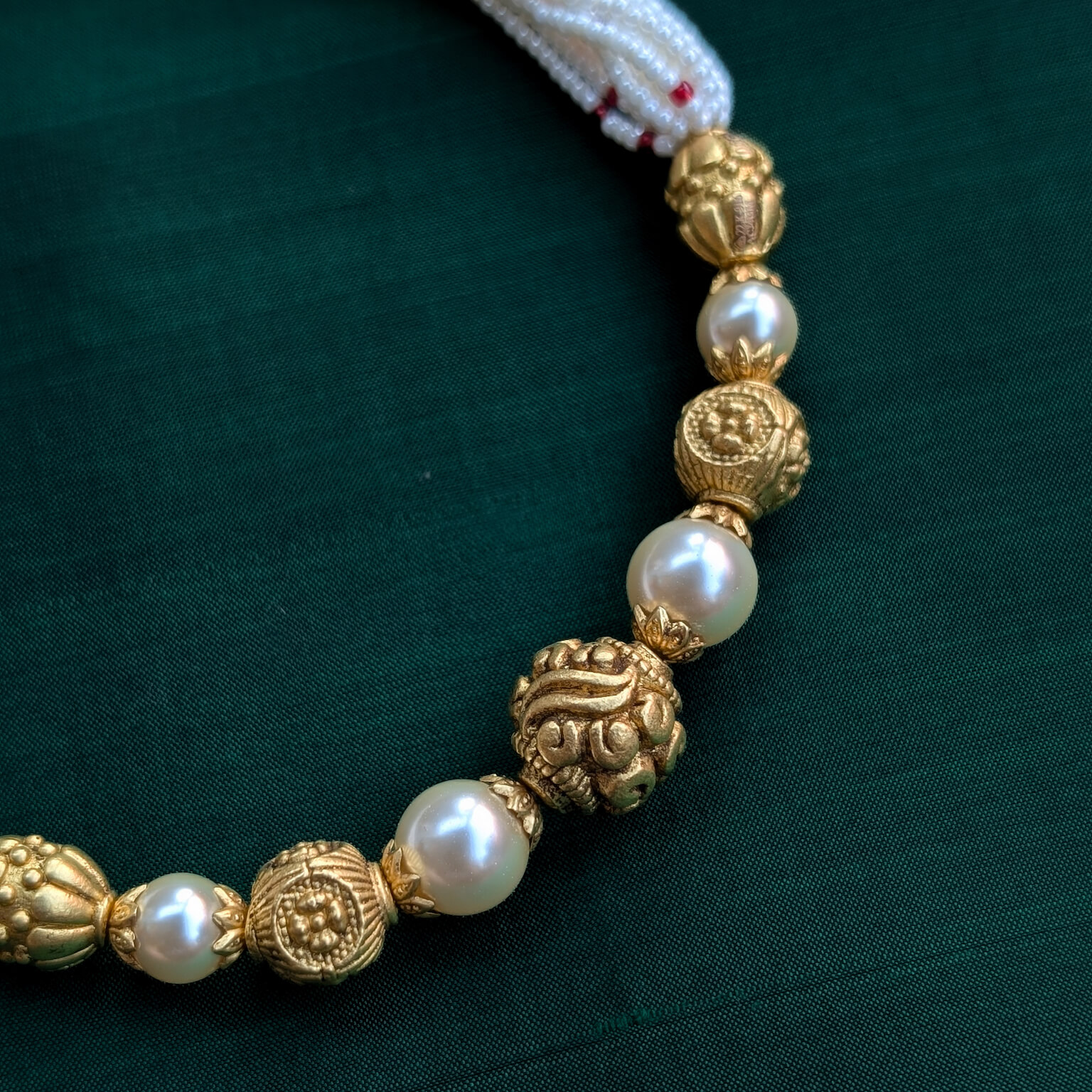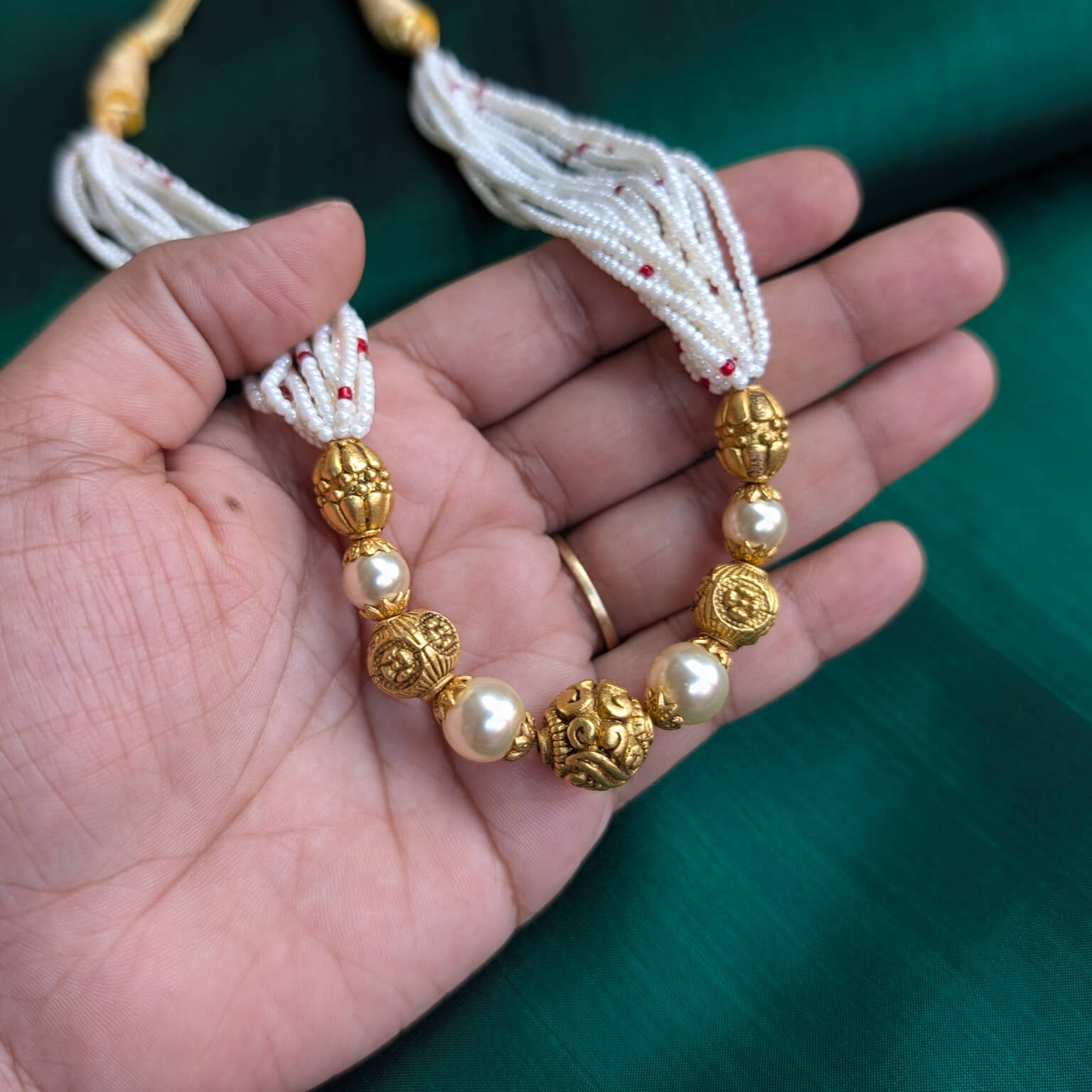 Necklace - Short - Antique Floral EF Ball 12L White Beads