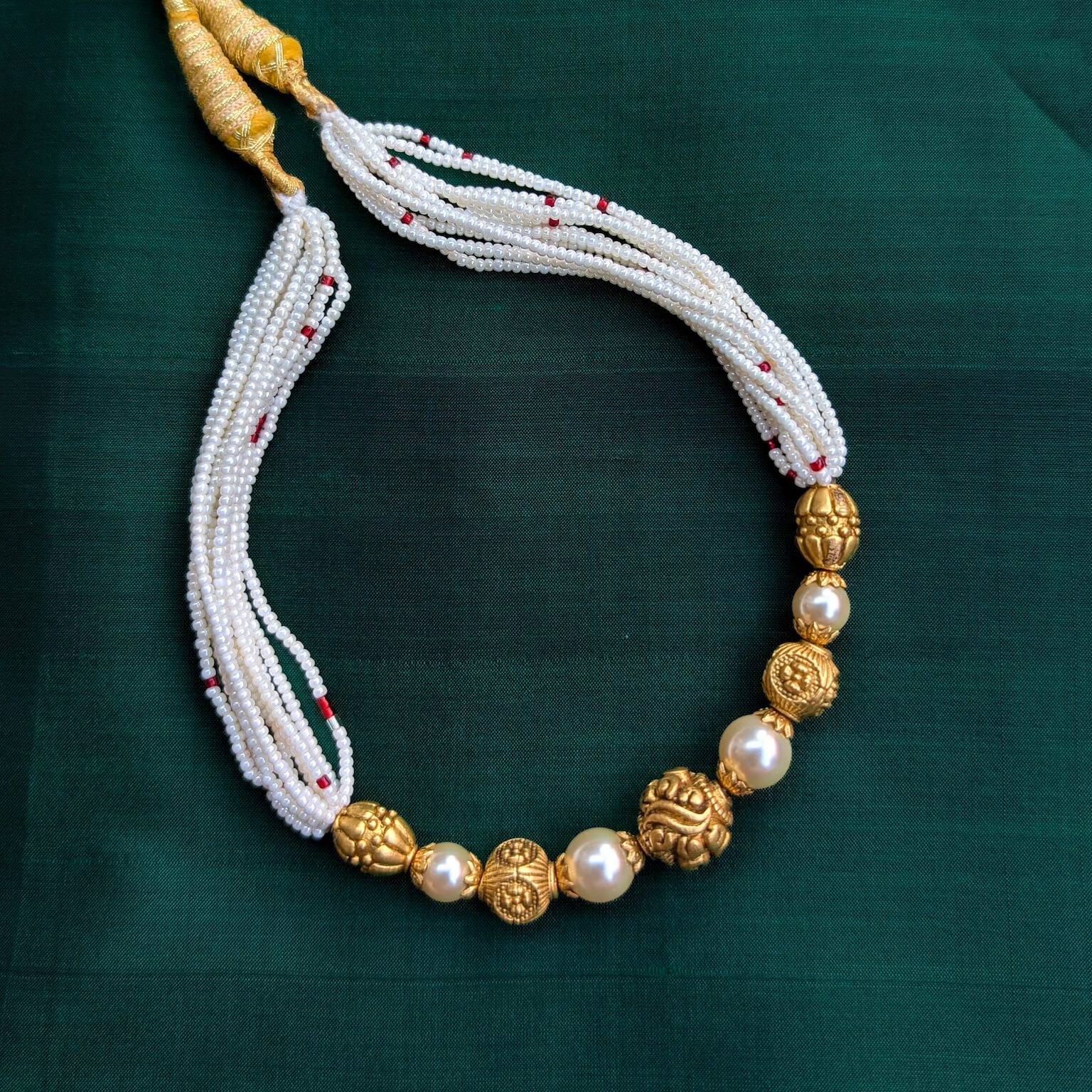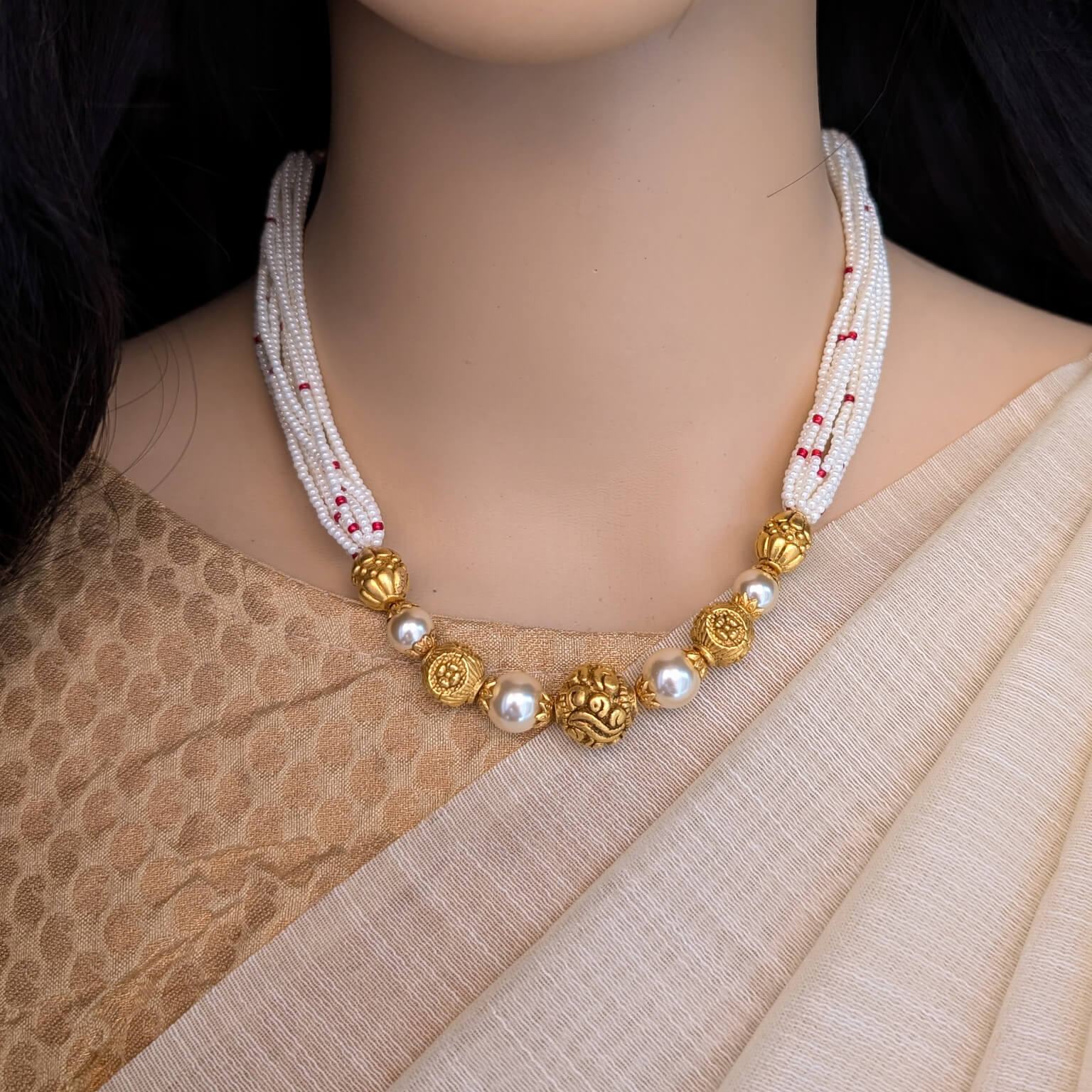 Necklace – Short – Antique EF Ball 12L Pearl Red White Beads