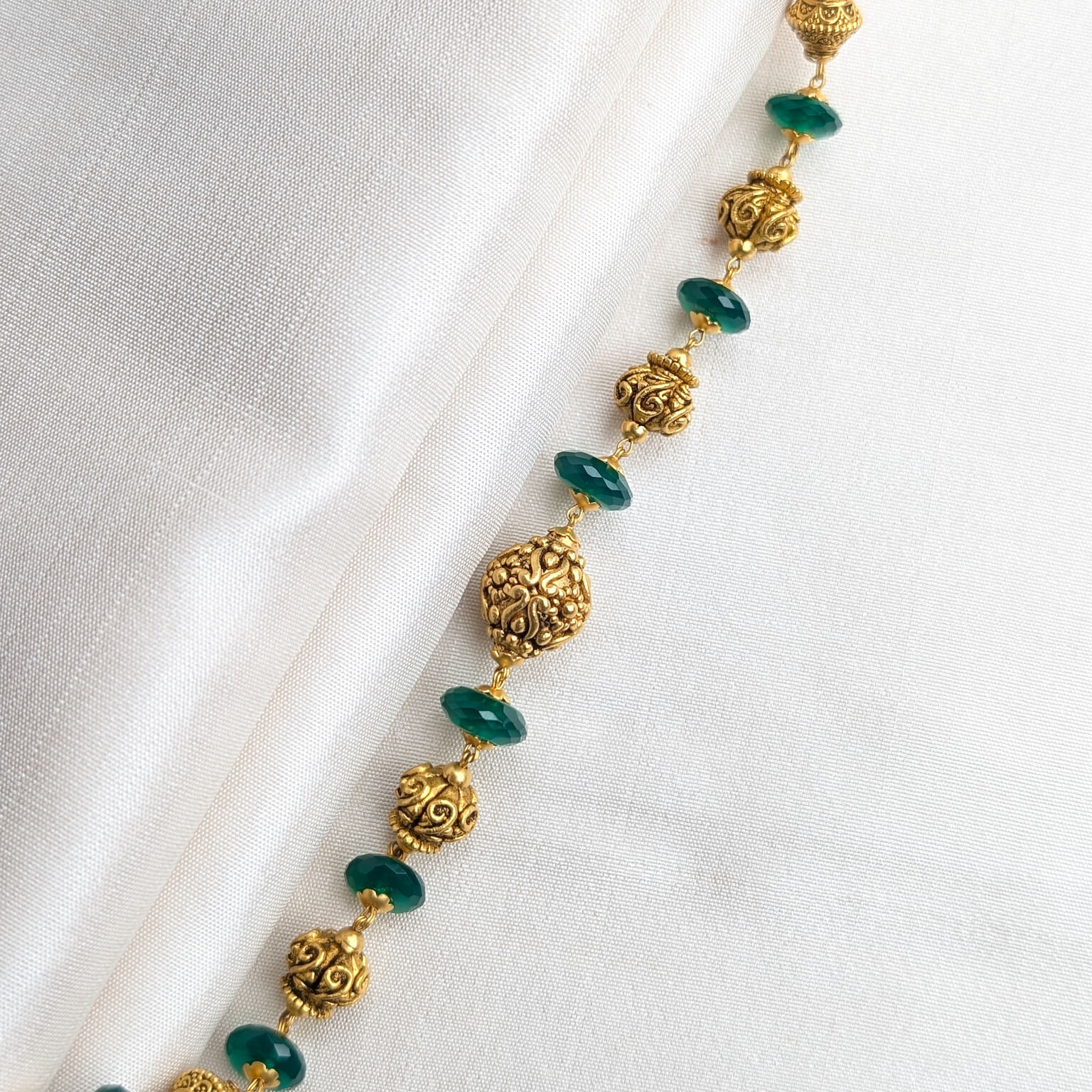 Necklace - Short - Antique Floral EF Ball Green Spinel Beads