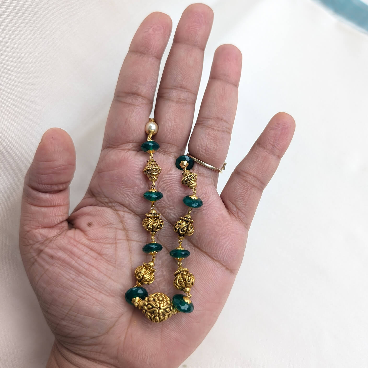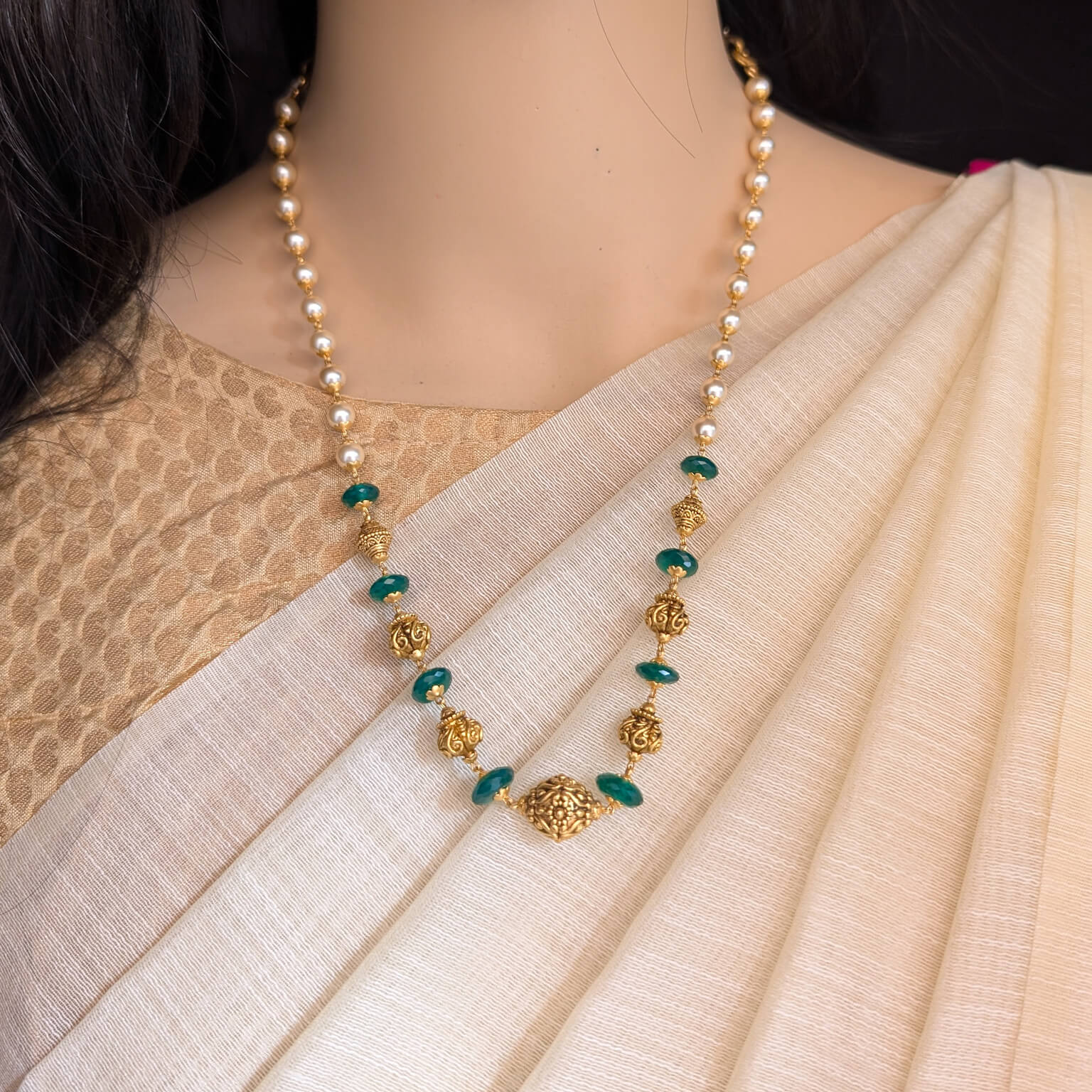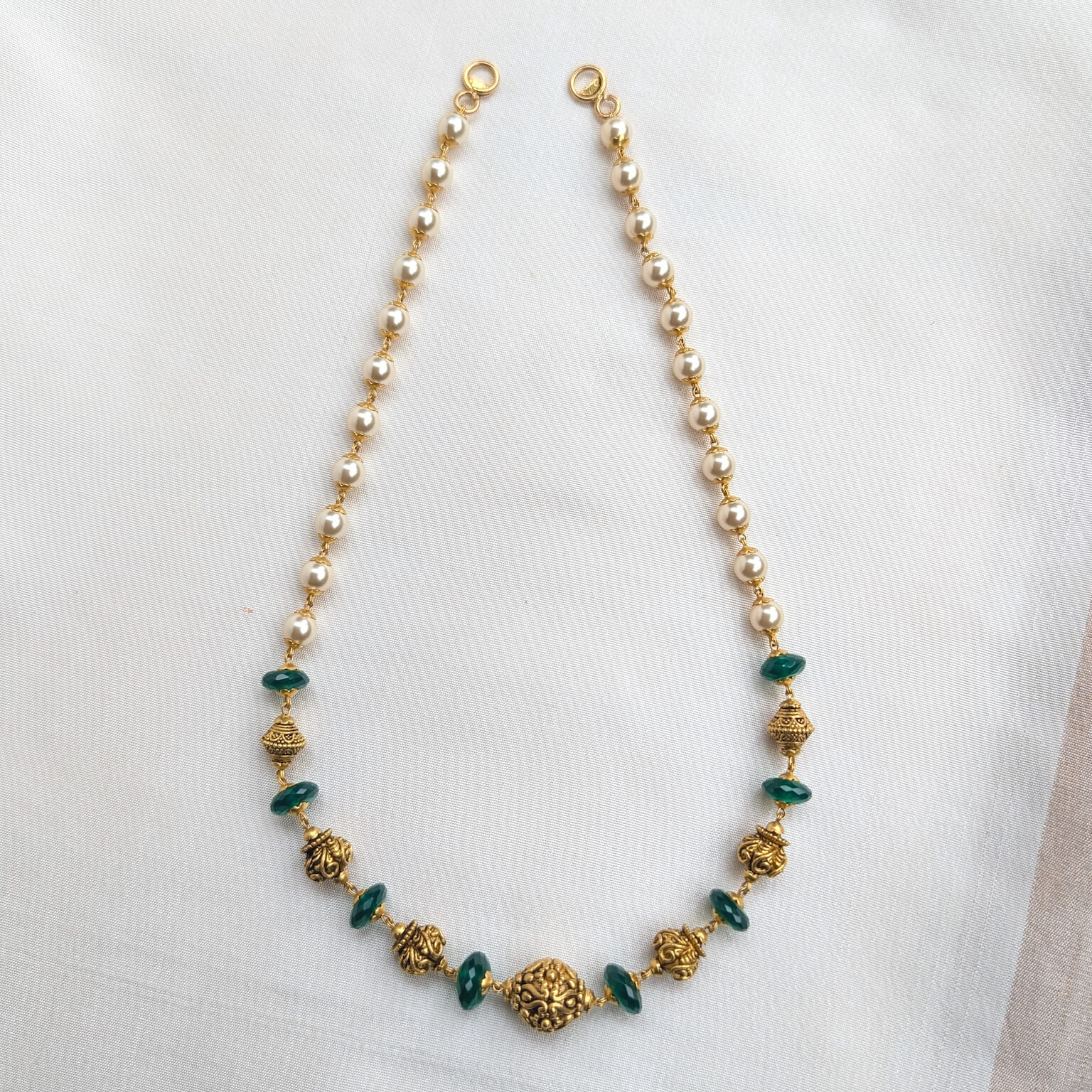 Necklace – Short – Antique EF Ball Green Spinel Pearl Beads