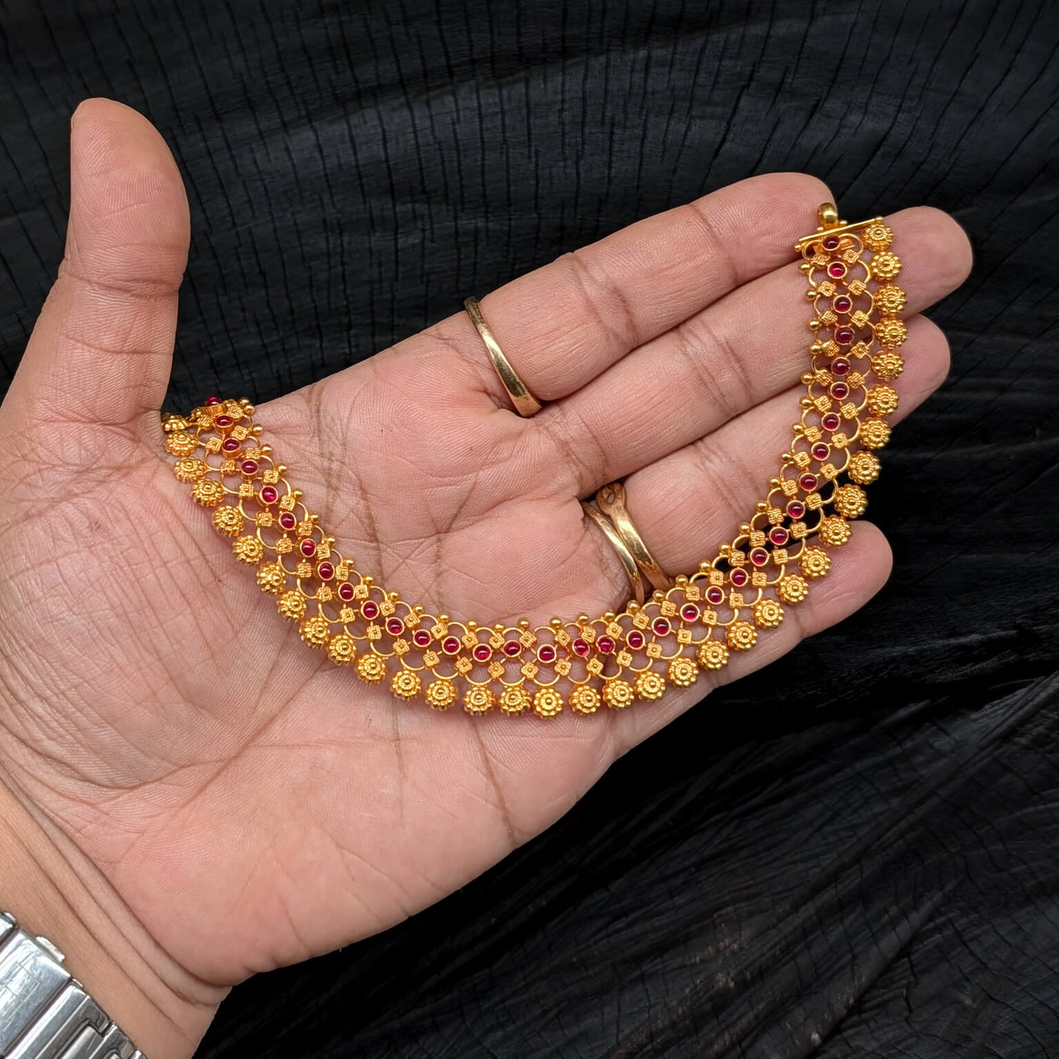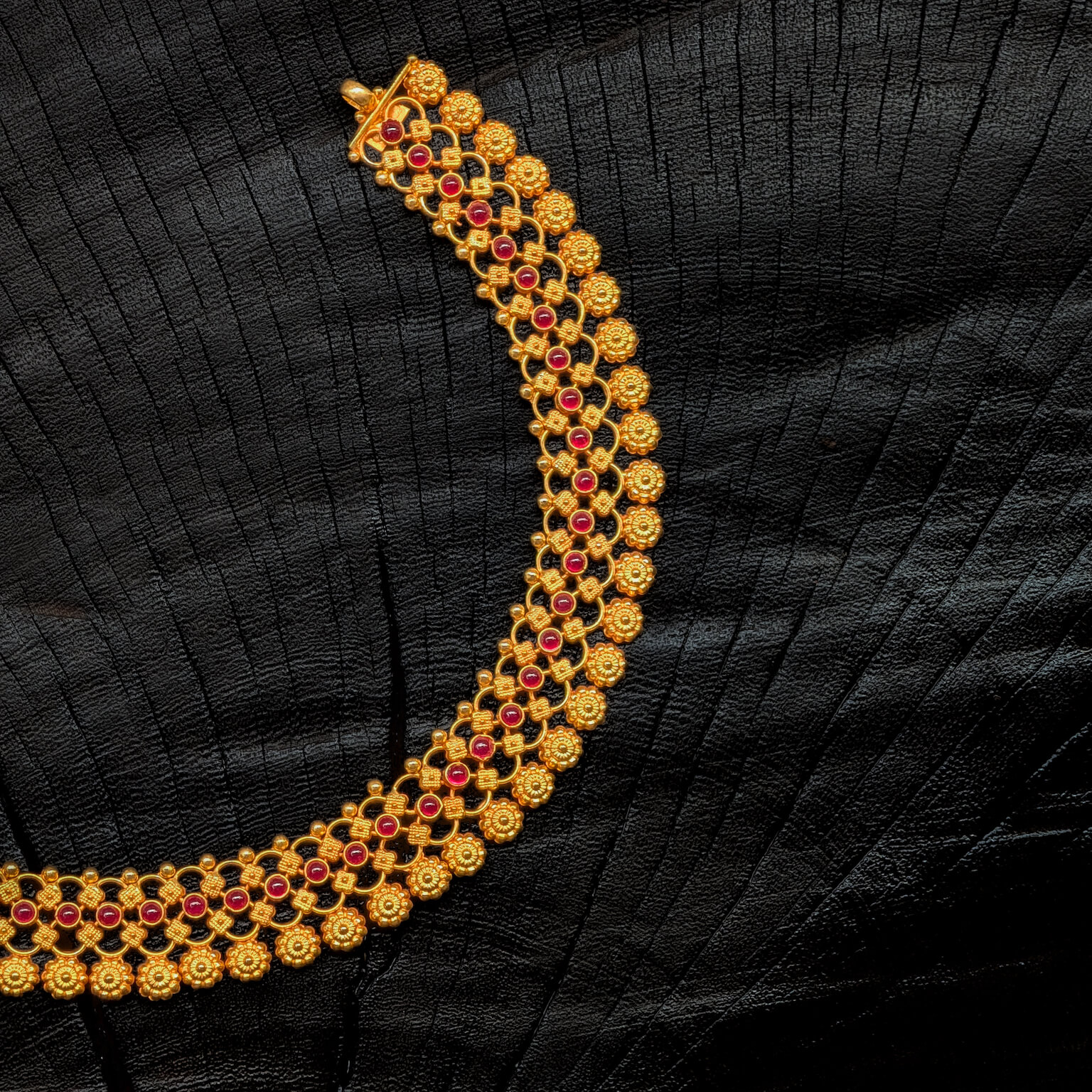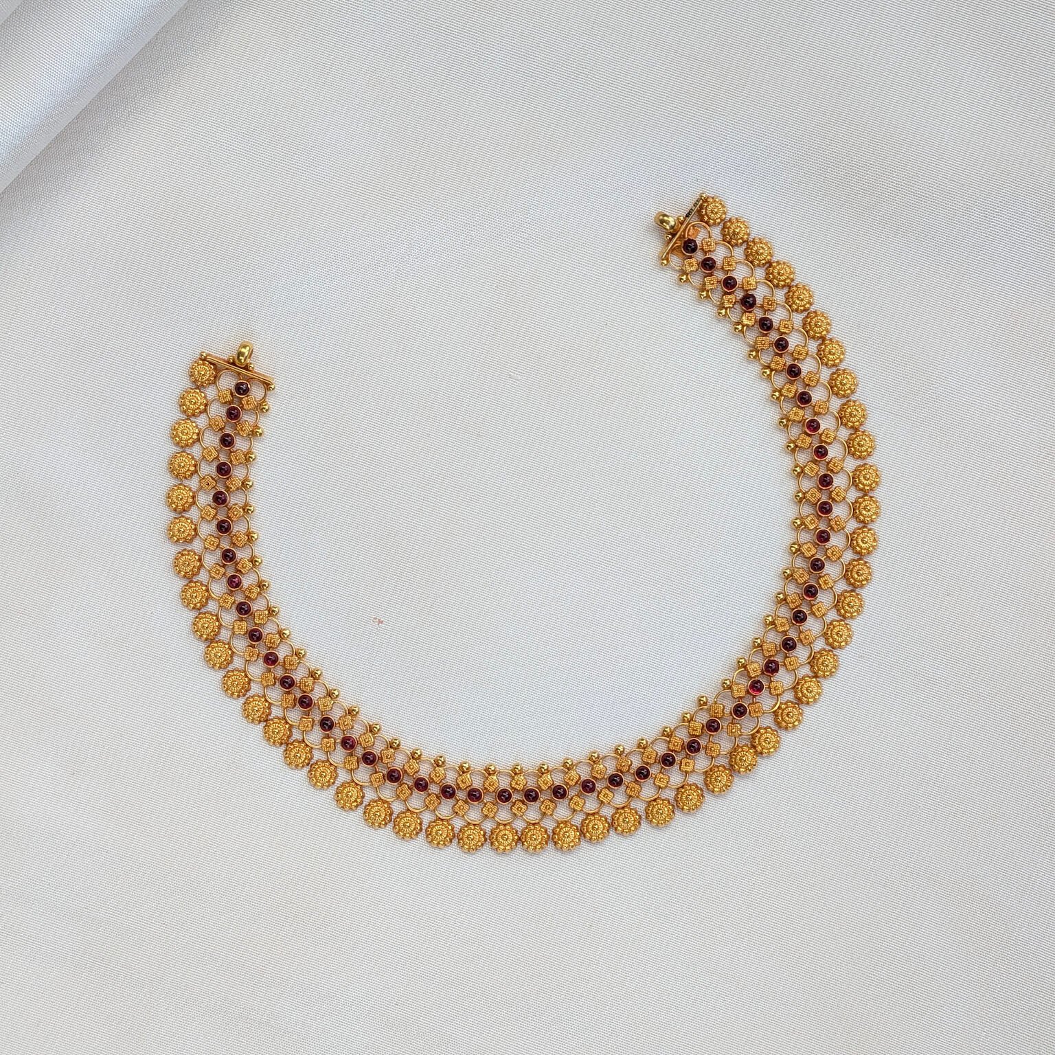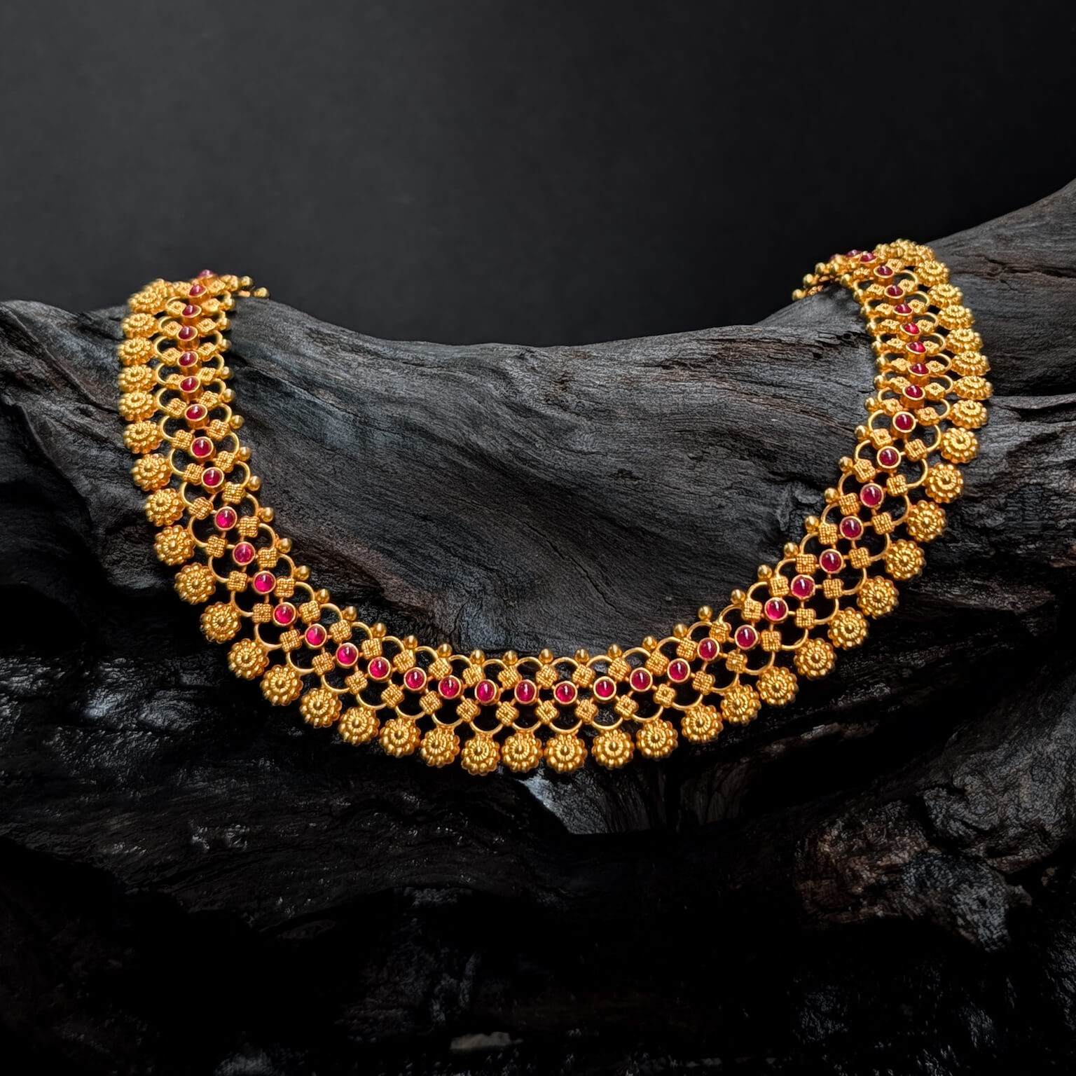 Necklace – Short – Antique Floral Mesh Motif Cob Ruby