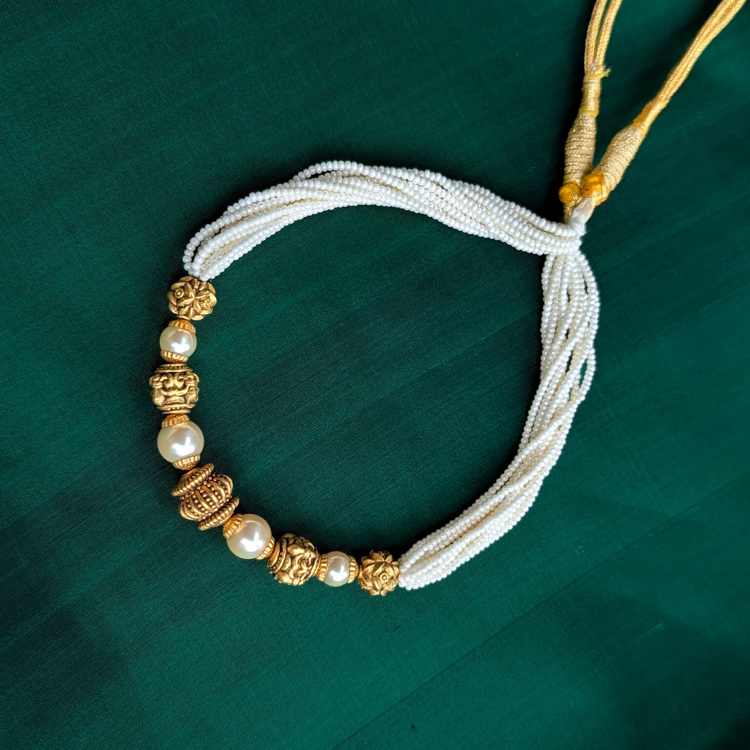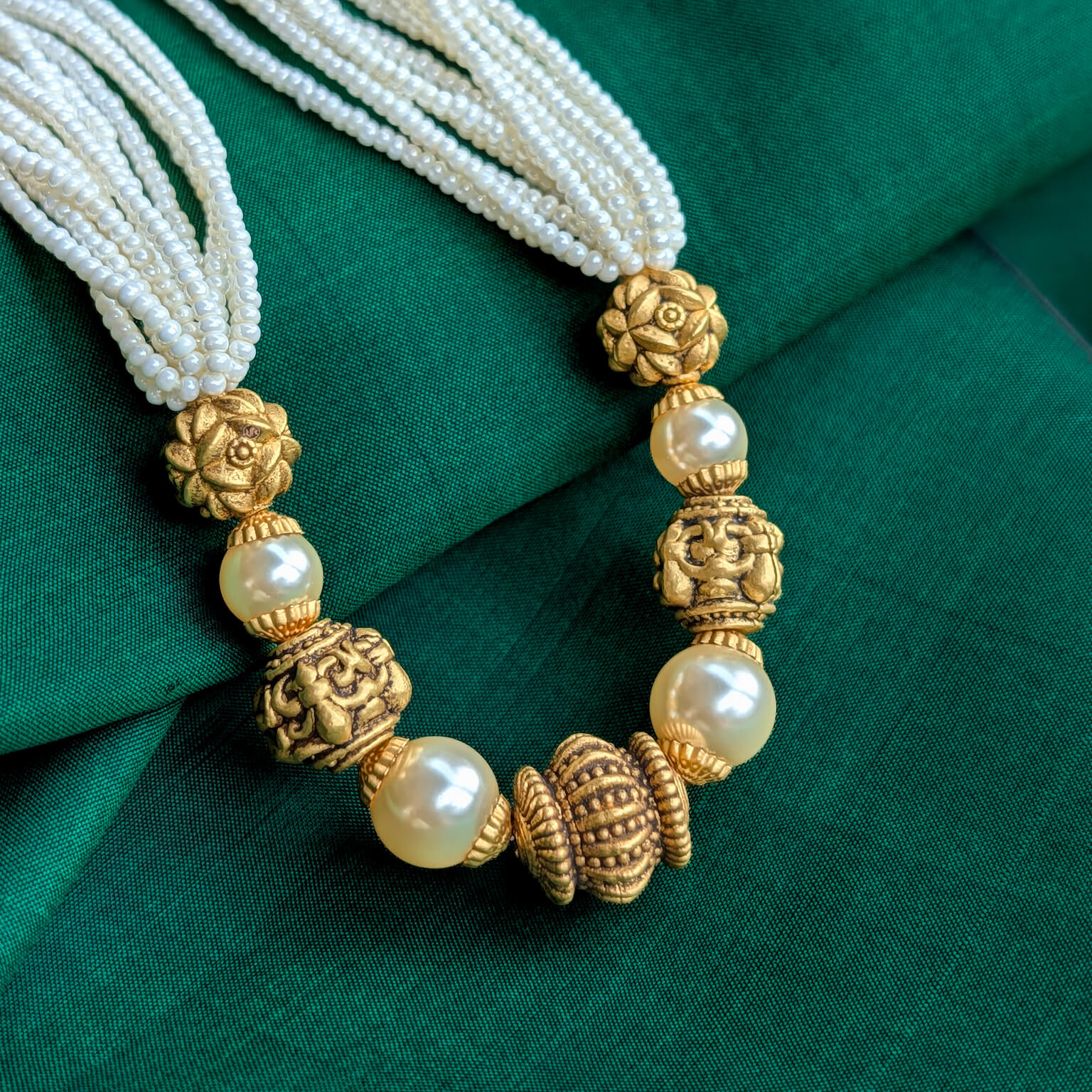 Necklace - Short - Antique EF Ball 12+1L Synthetic Pearls