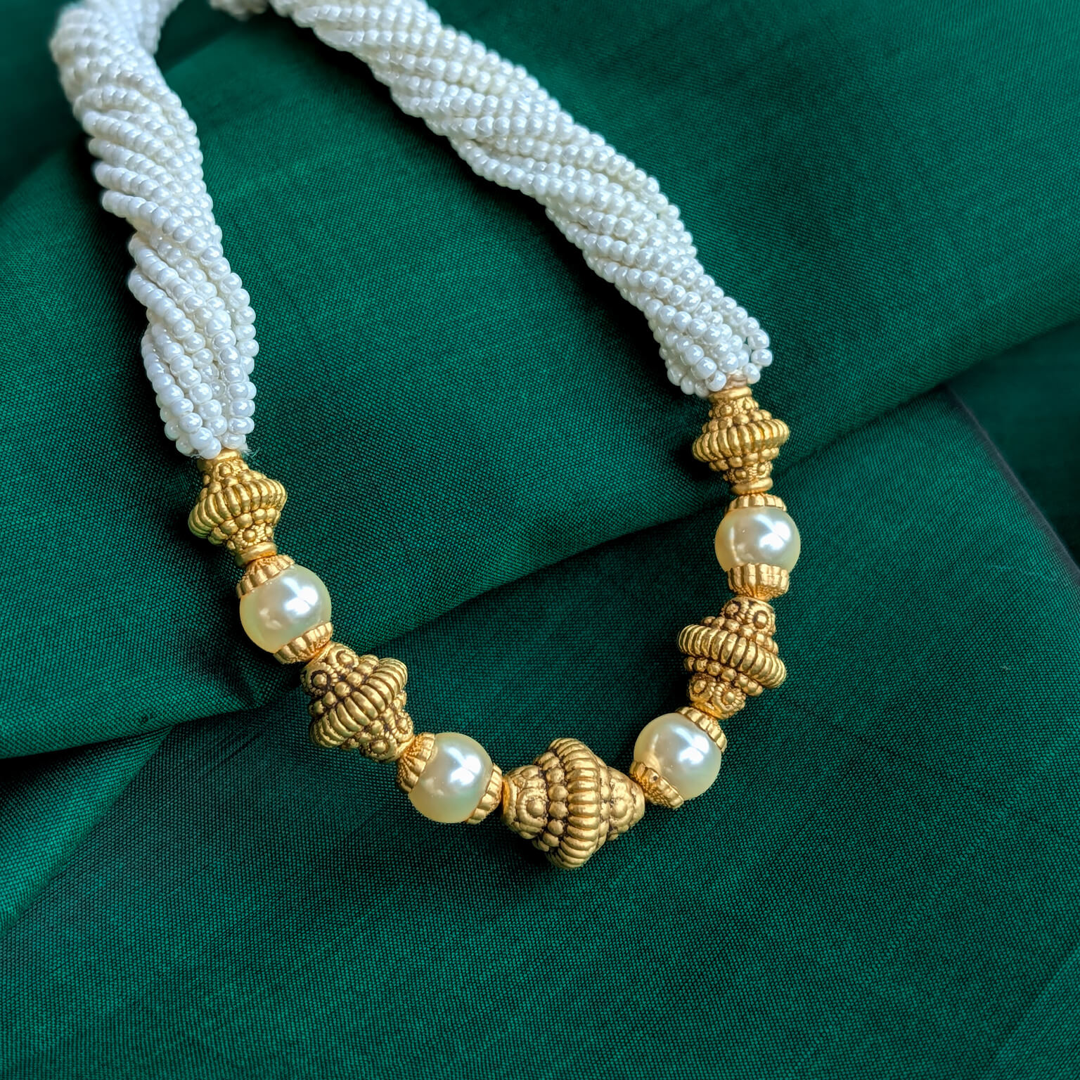 Necklace - Short - Antique EF Ball 12+1L Synthetic Pearls