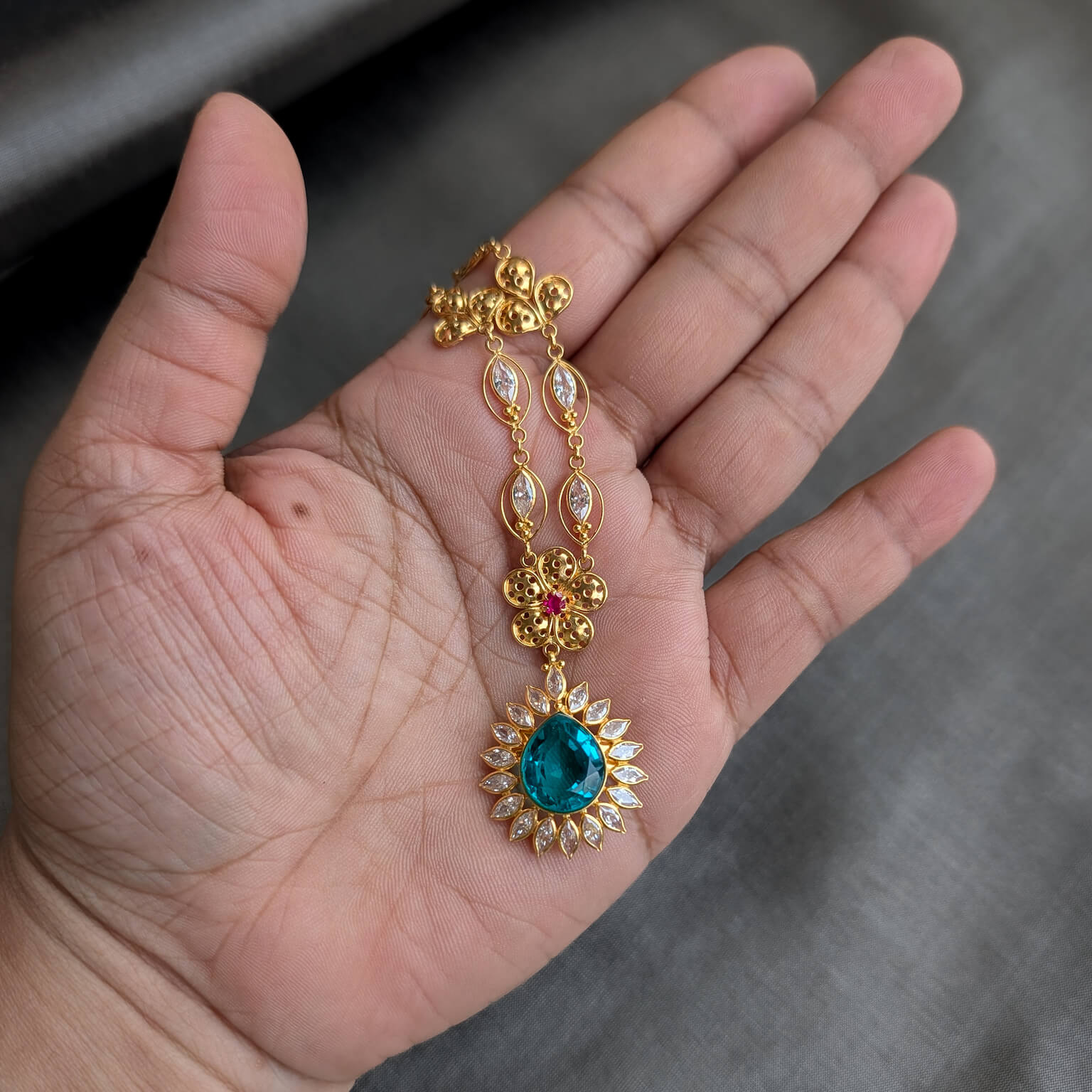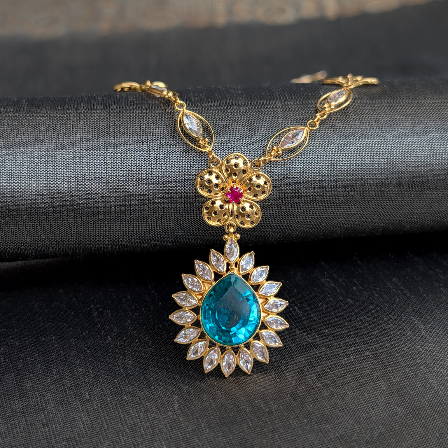 Tags: Blue Stone, Color CZ, CZ, Gemstone Jewellery, Gifts For Her, Jadau, Necklace, Pearl, Red Stone, Short, Synthetic Polki, Women