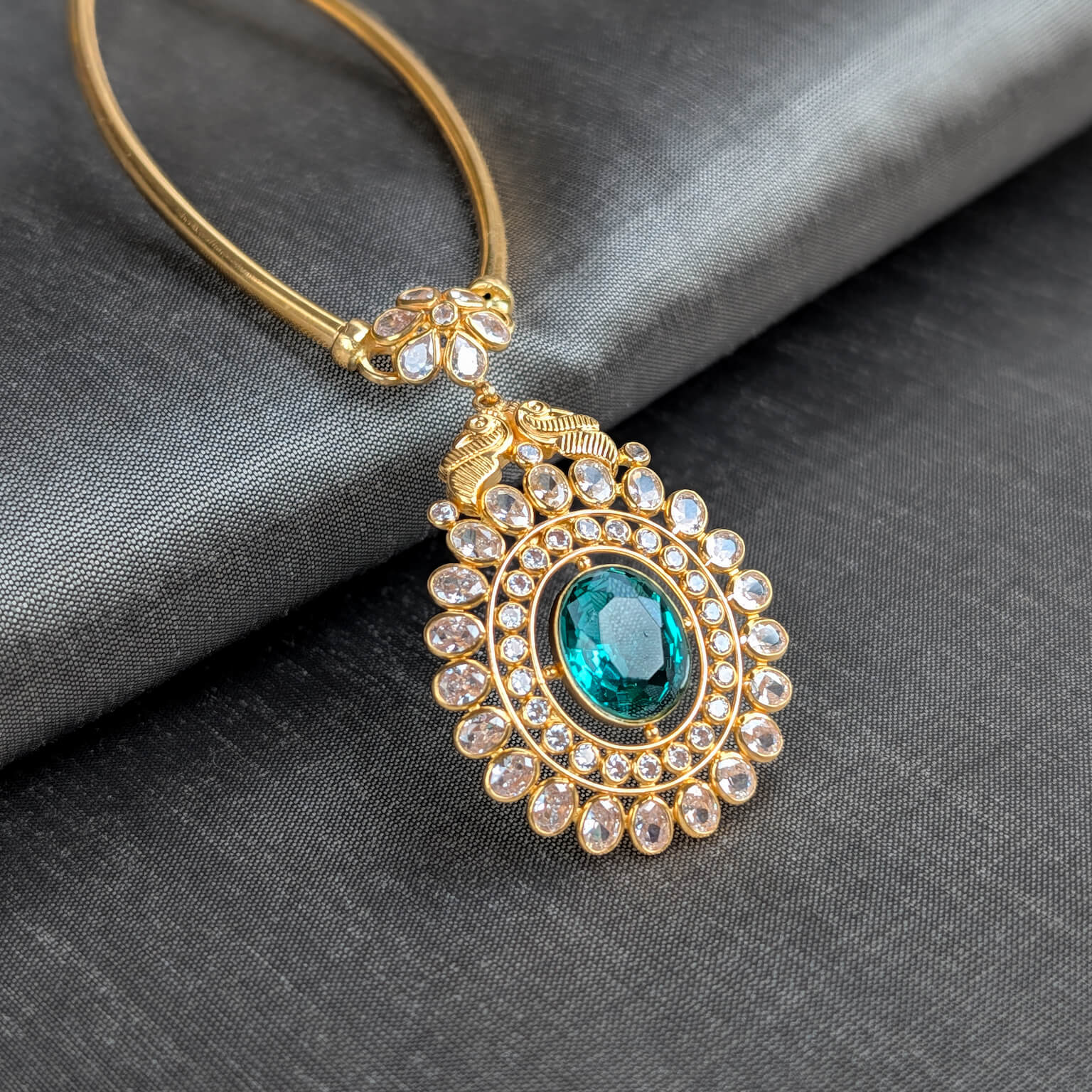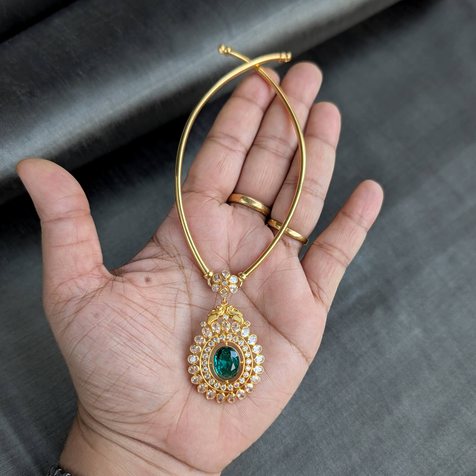 Tags: Color CZ, CZ, Gemstone Jewellery, Gifts For Her, Green Stone, Jadau, Kante, Necklace, Short, Synthetic Polki, Women