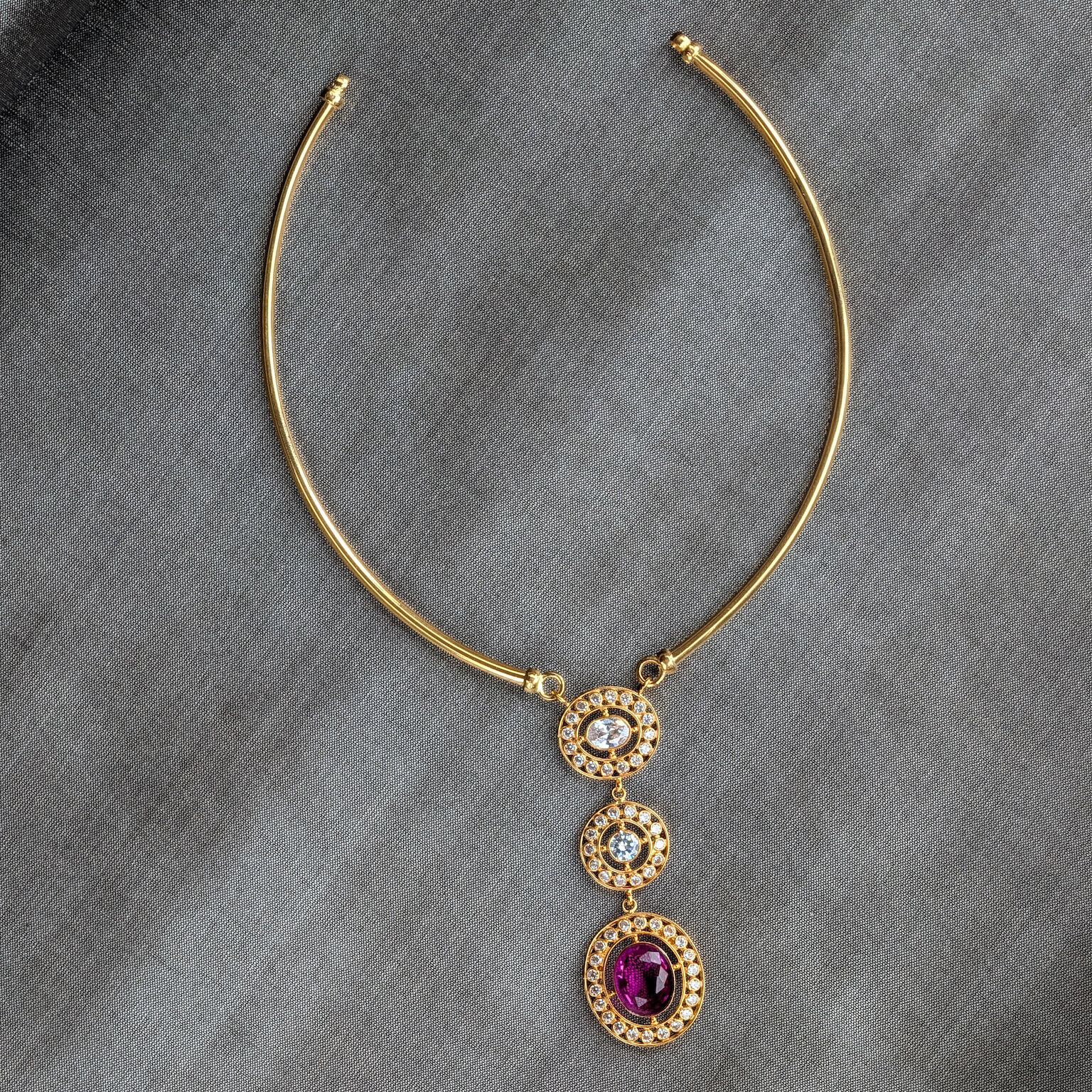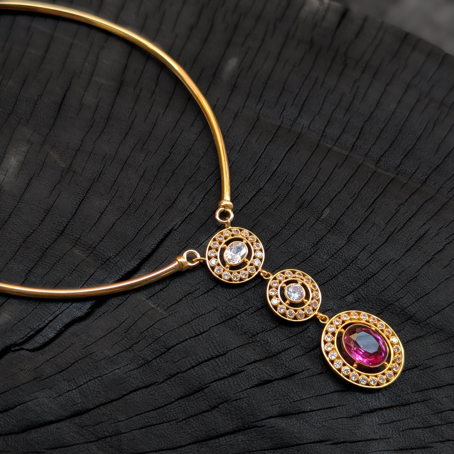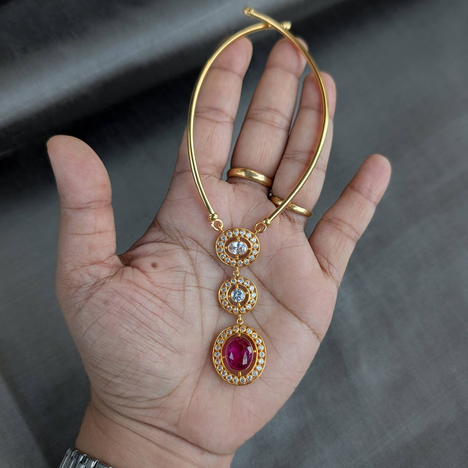 Tags: Color CZ, CZ, Gemstone Jewellery, Gifts For Her, Jadau, Kante, Necklace, Pinkish Red Stone, Short, Synthetic Polki, Women