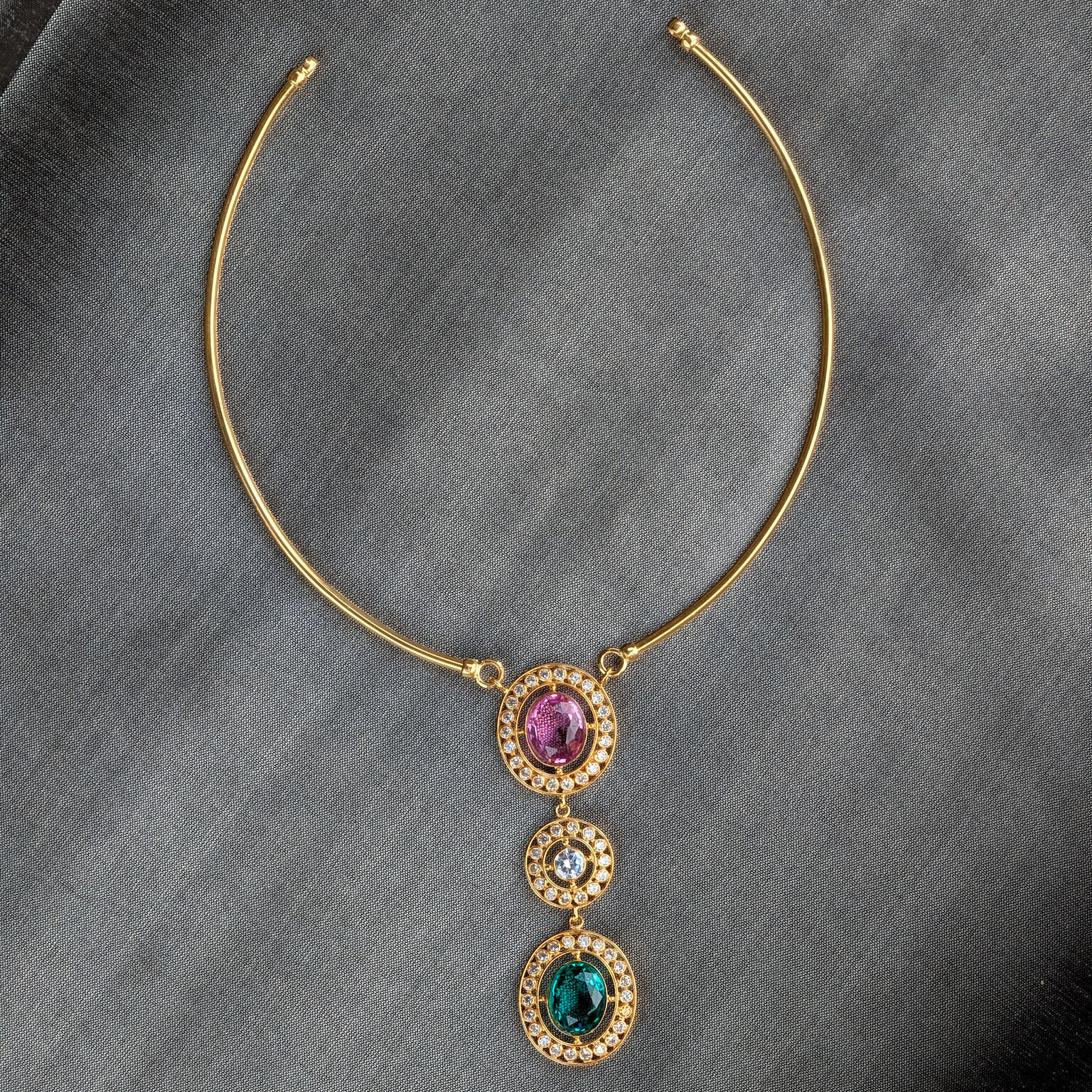 Tags: Color CZ, CZ, Gemstone Jewellery, Gifts For Her, Green Stone, Jadau, Kante, Necklace, Pink Stone, Short, Synthetic Polki, Women