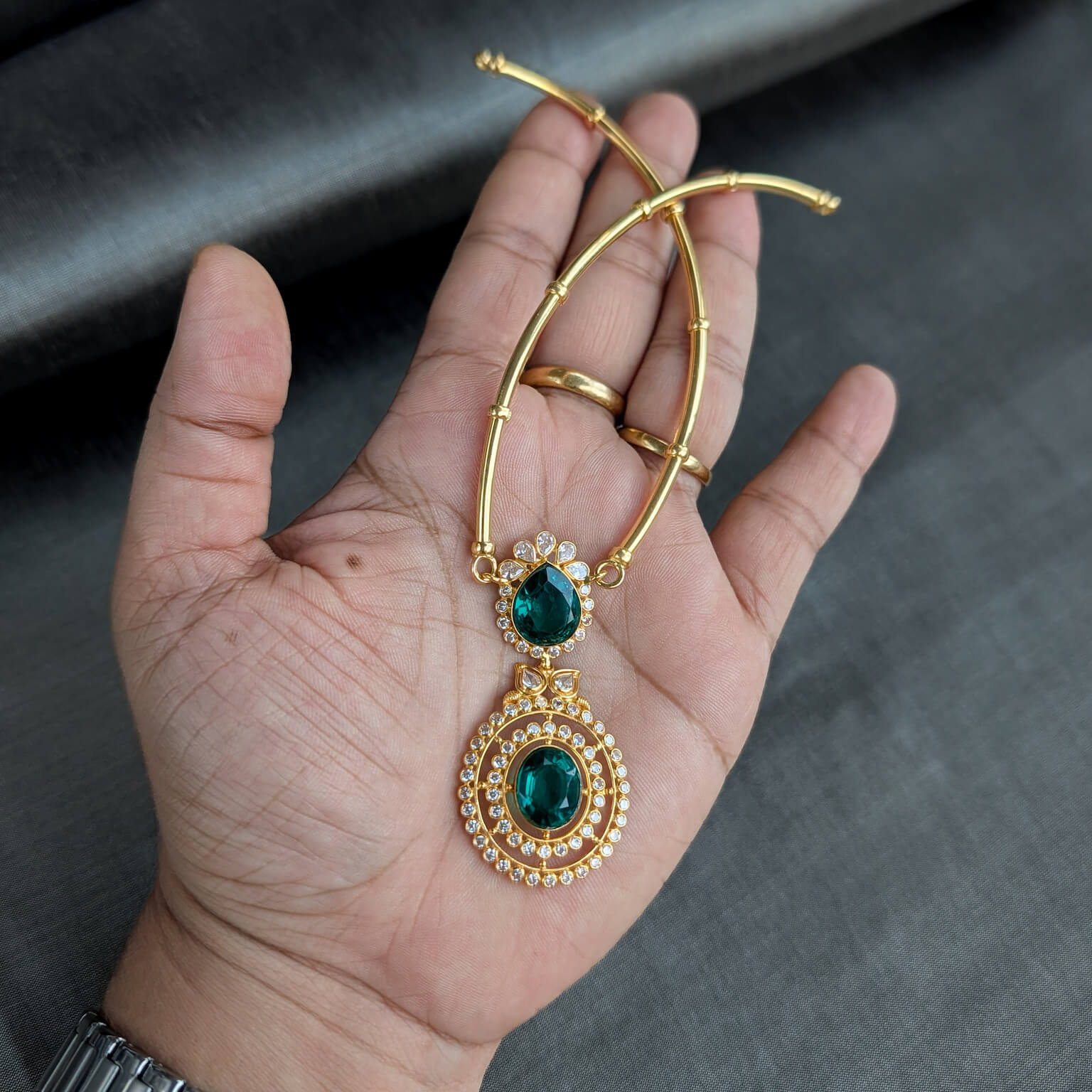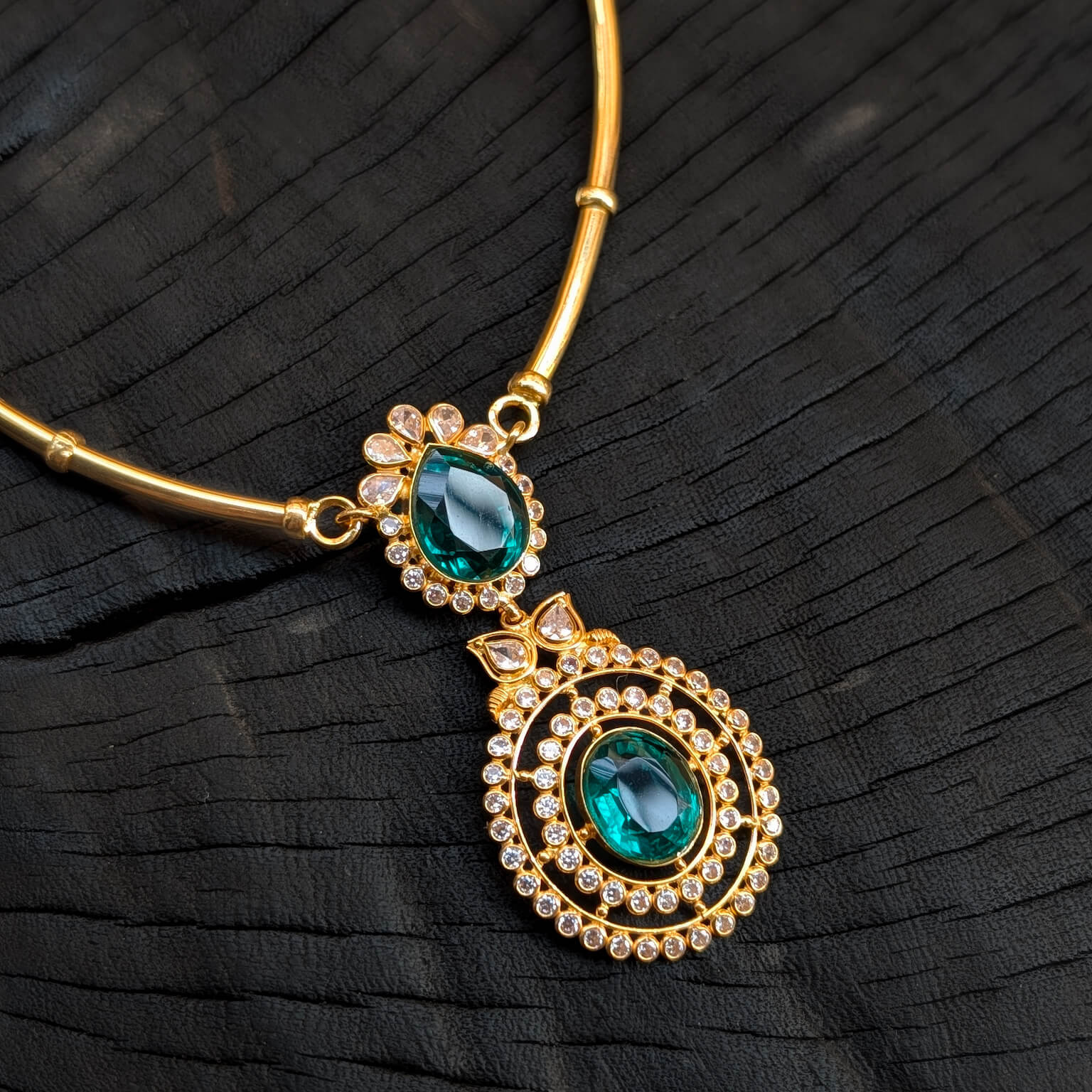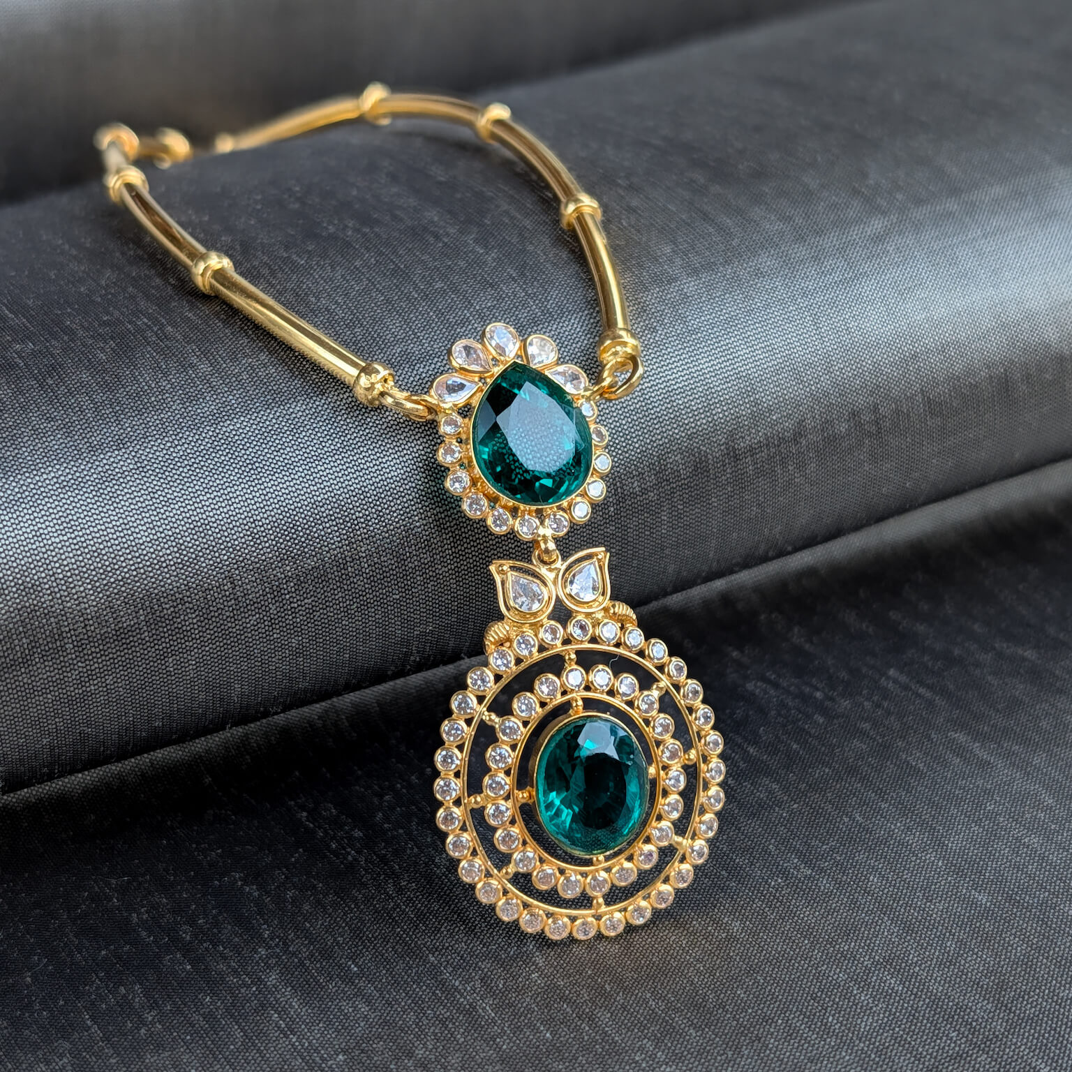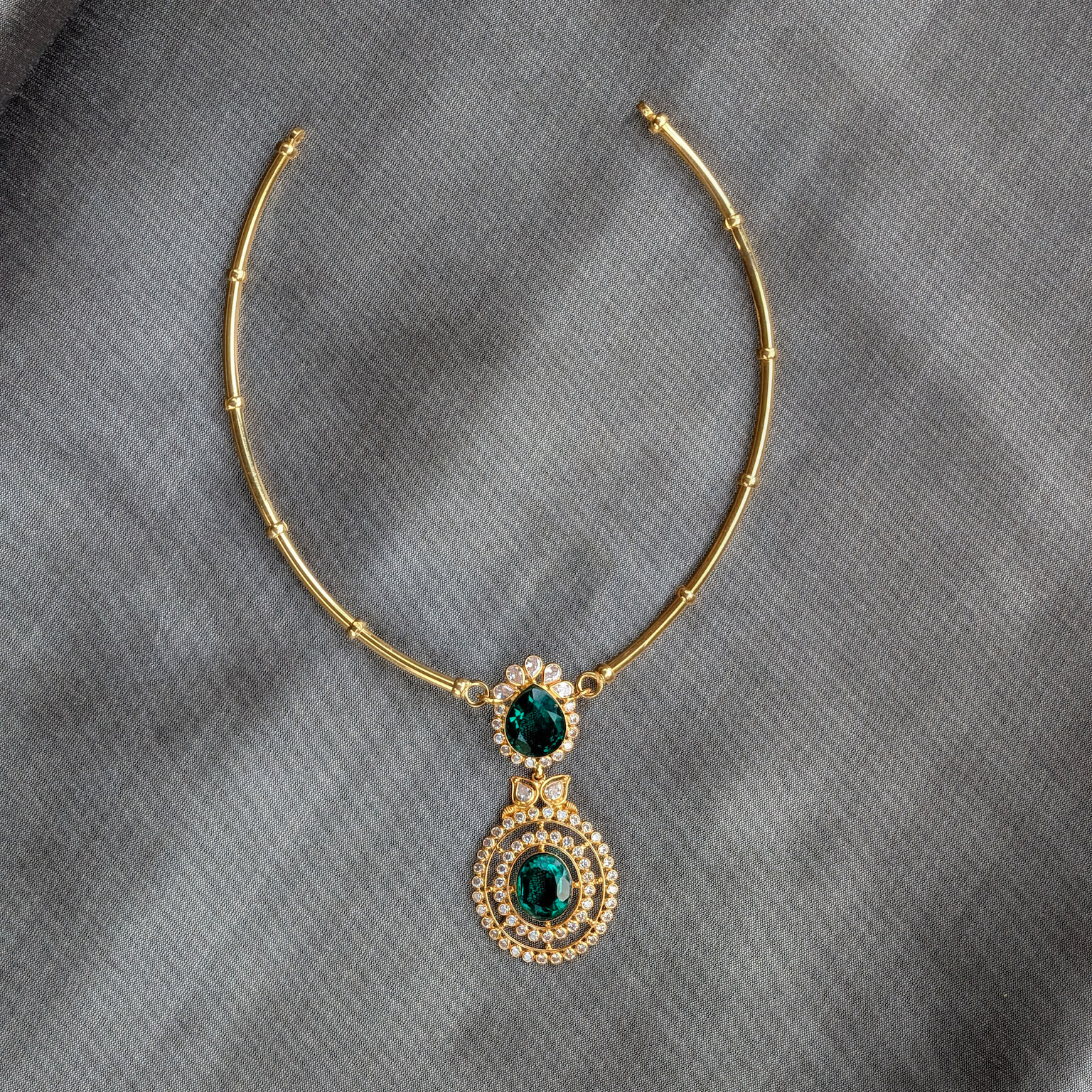 Tags: Color CZ, CZ, Gemstone Jewellery, Gifts For Her, Green Stone, Jadau, Kante, Necklace, Short, Synthetic Polki, Women