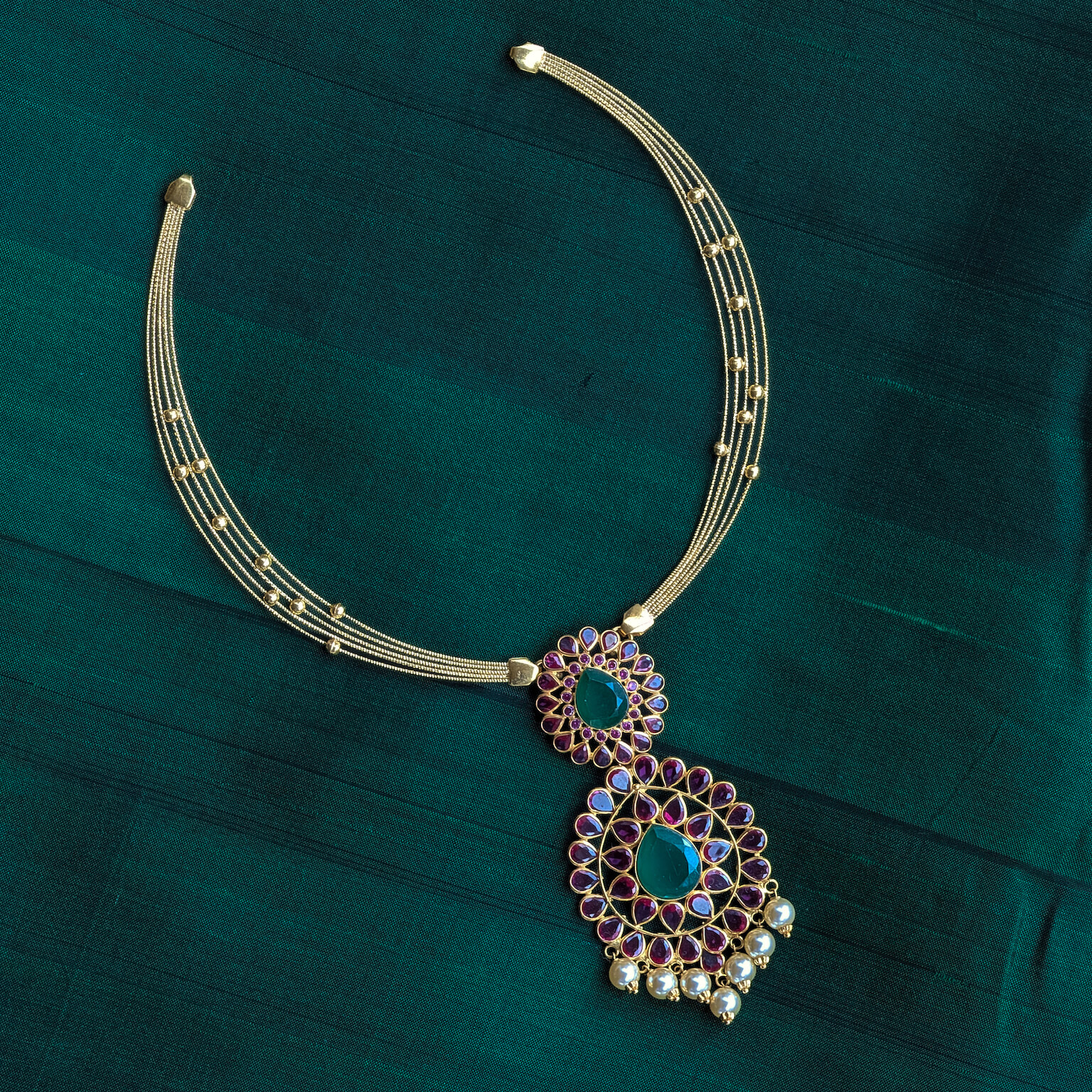 Tags: Color CZ, CZ, Gemstone Jewellery, Gifts For Her, Green Stone, Jadau, Kante, Necklace, Pearl, Red Stone, Semi Precious, Short, Synthetic Polki, Women