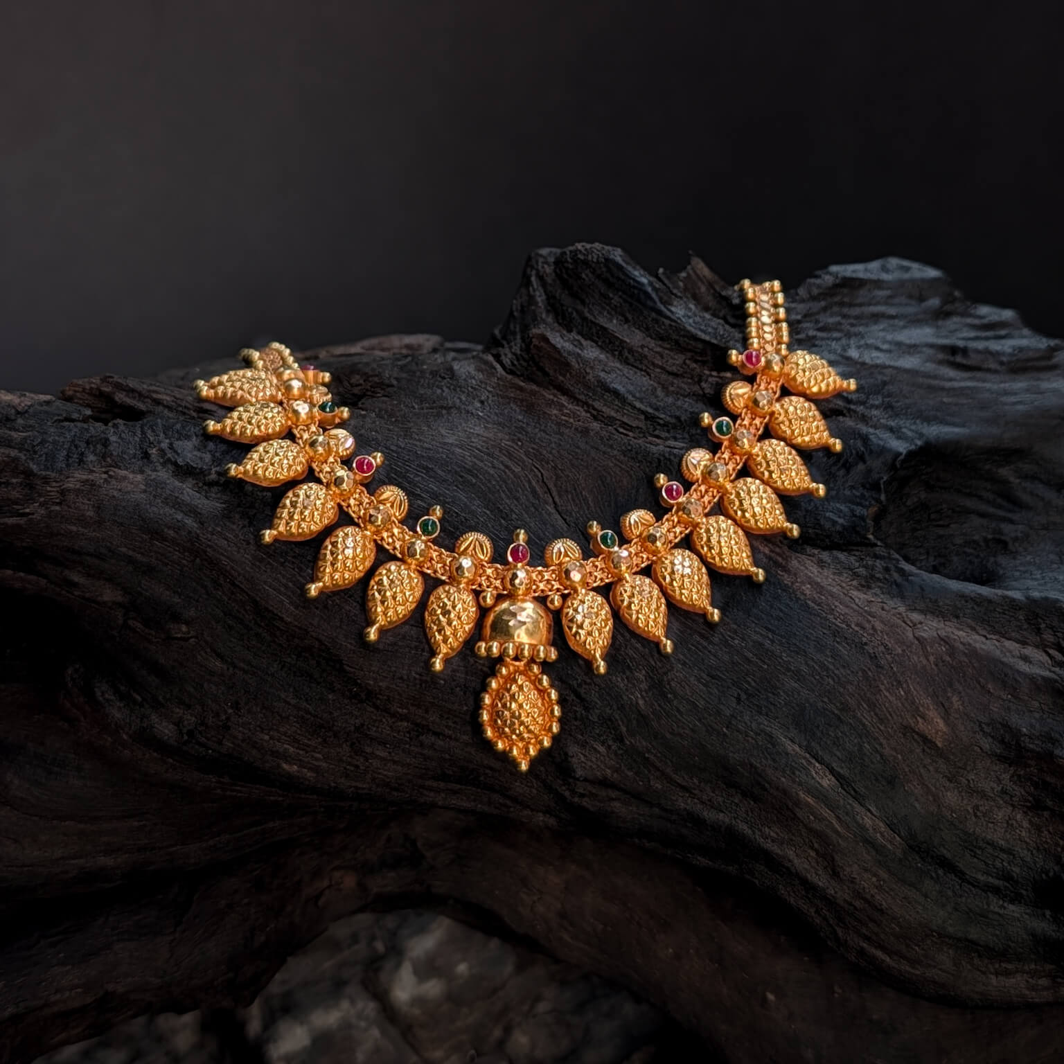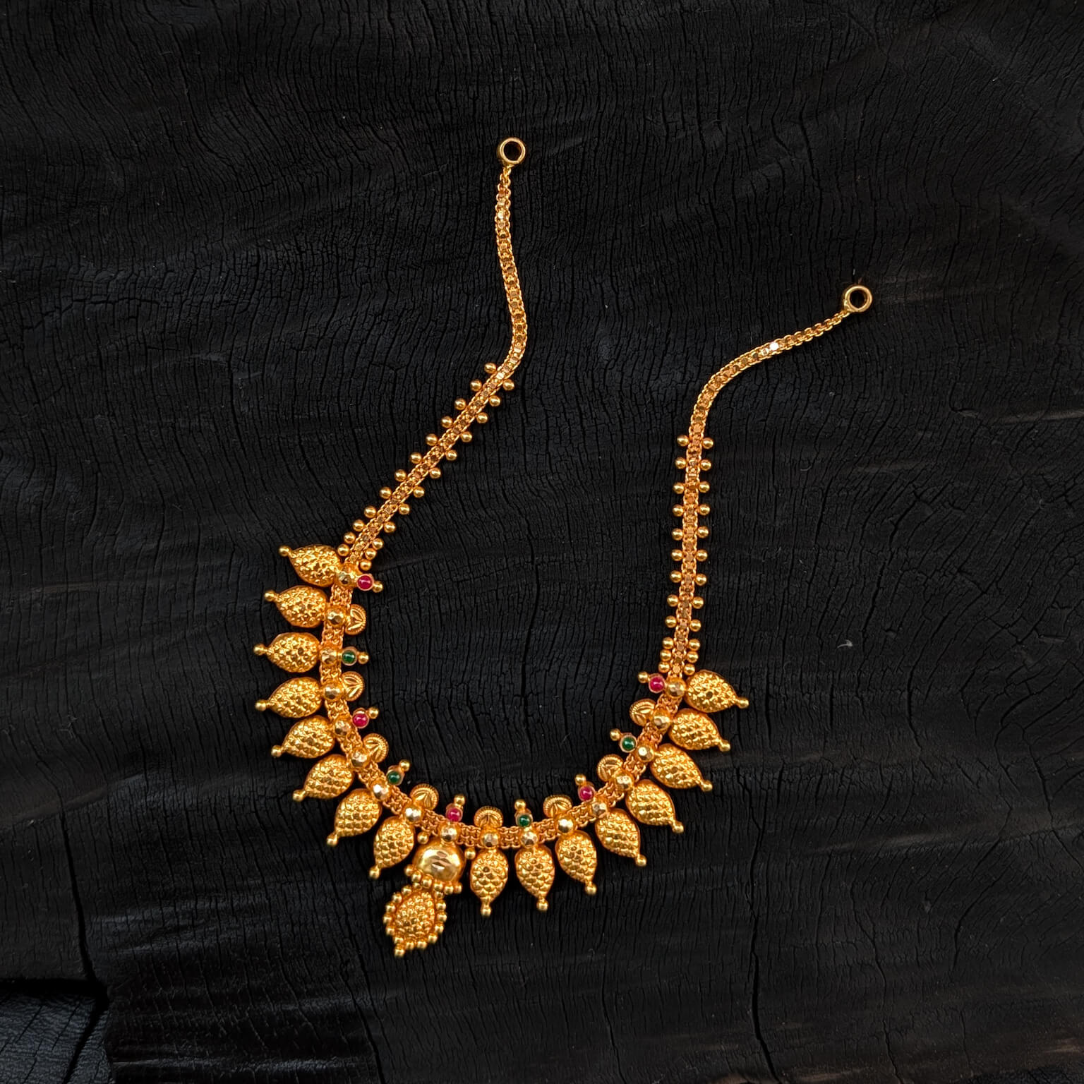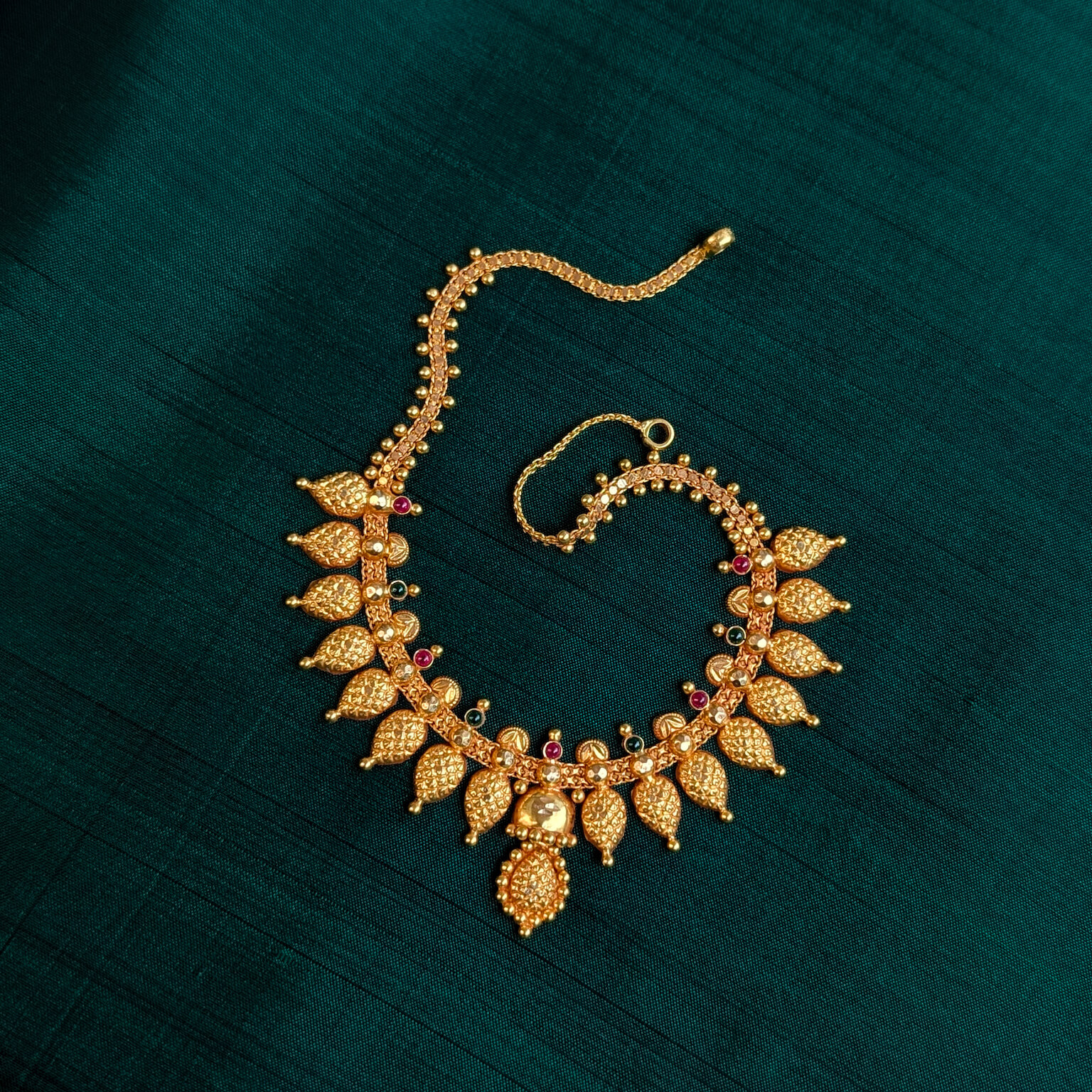 Necklace - Short - Antique Lakshmi Center Pear Kasu Cob R+E