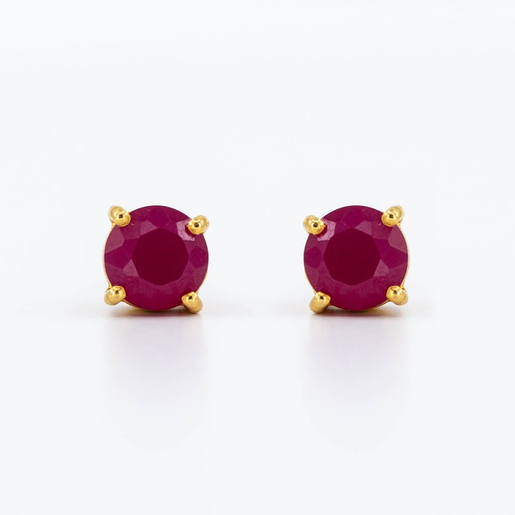 Earring – Prong Set Solitaire 7mm Round Red Stone