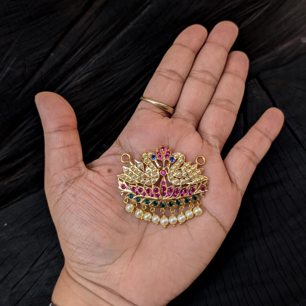 Pendant – DL – Hamsa On Lotus – Pearl Red Blue Green Stone