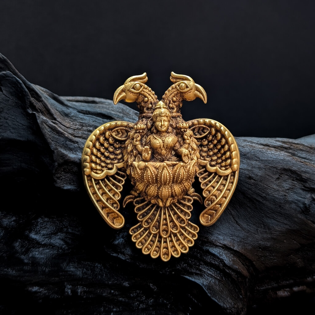 Tags: Antique, Antique Jewellery, EF, Electro Forming, Gandaberunda, god, Lakshmi, Pendant, Pendant - Women, Three Loop, Women