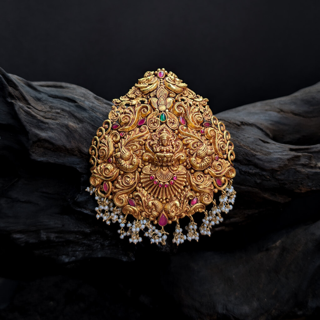 Tags: Antique, Antique Jewellery, Cob Emerald, Cob Ruby, god, Lakshmi, Pearl, Pendant, Pendant - Women, Three Loop, Women