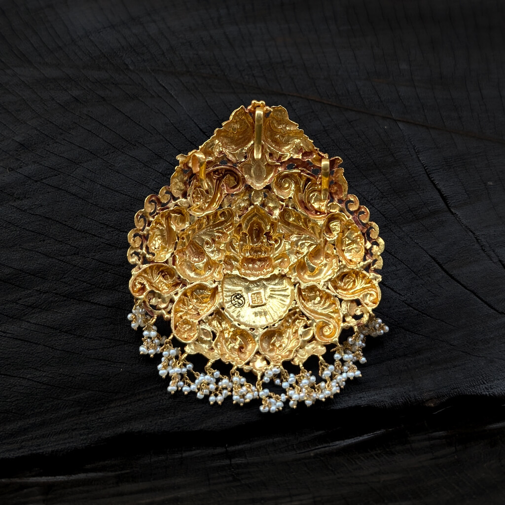 Pendant – 3L – Antique Peacock Lakshmi Cob Ruby Emerald Prl