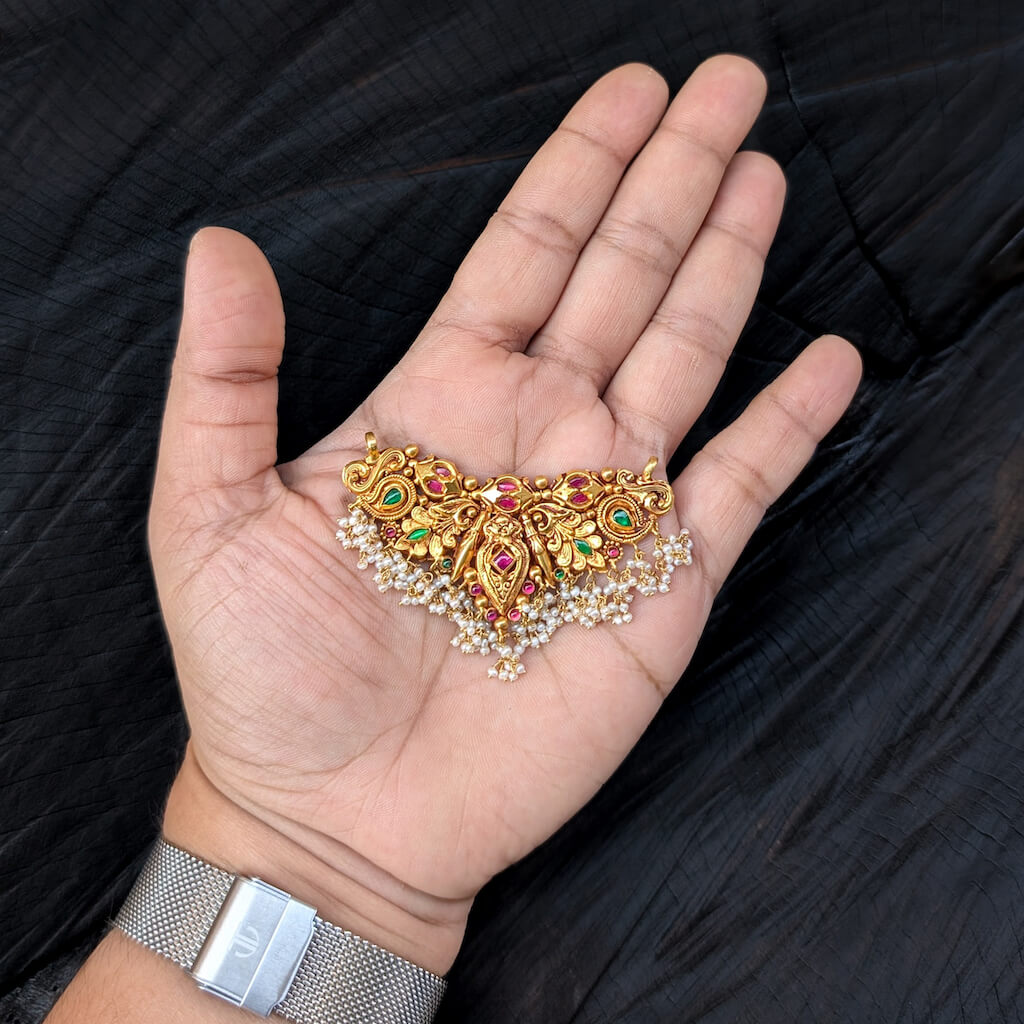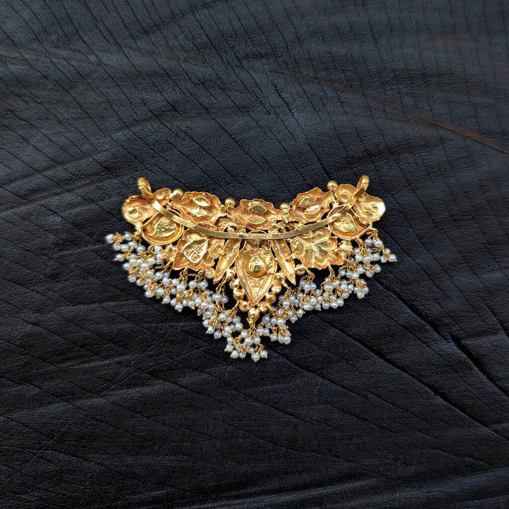 Pendant – DL – Antique Floral Cob Ruby Emerald Pearl Hanging