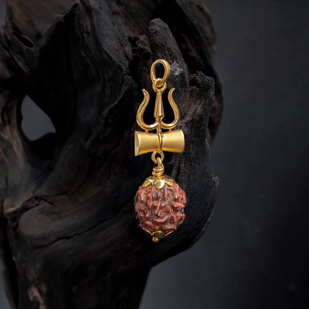 Pendant - SL - Matt Gloss - Trishul Damaru Rudraksh Hanging
