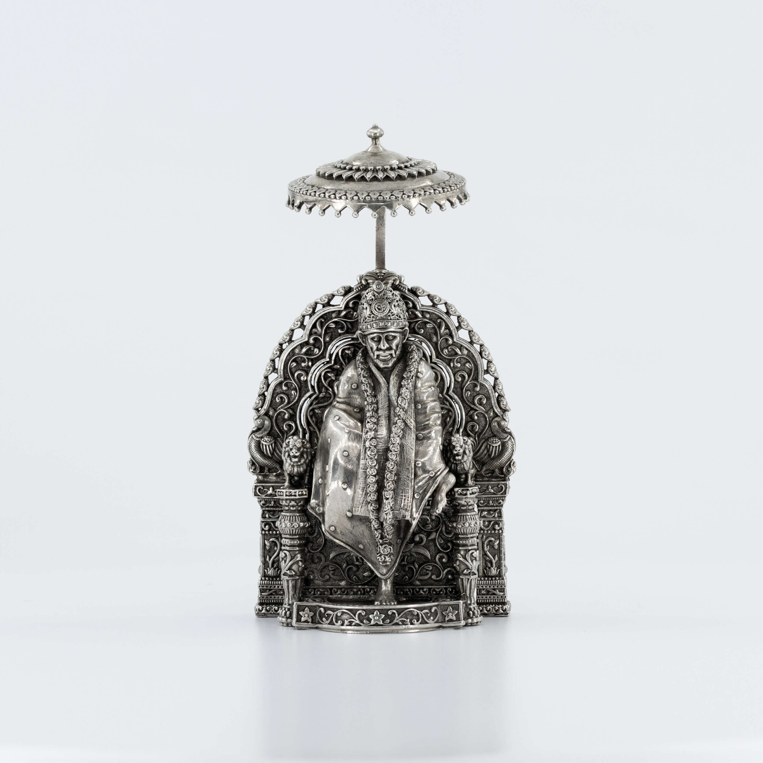 Idol – 3D – Oxidised – Sai Baba With Peeta And Chatri