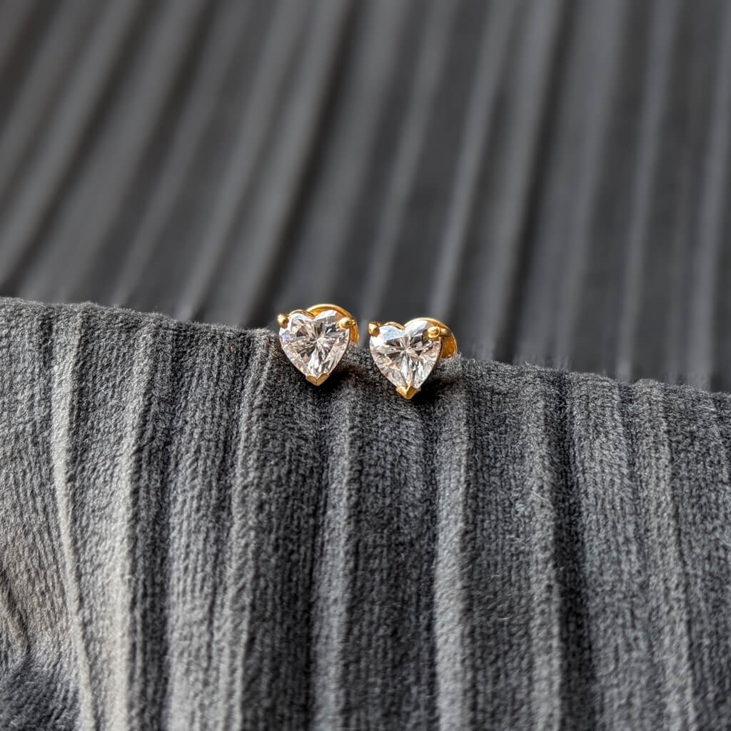 Earring – Prong Set Solitaire 6mmx6mm Heart White Cz