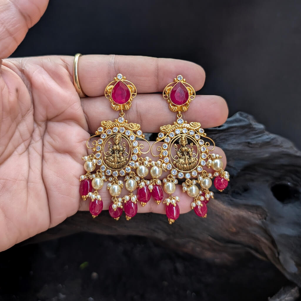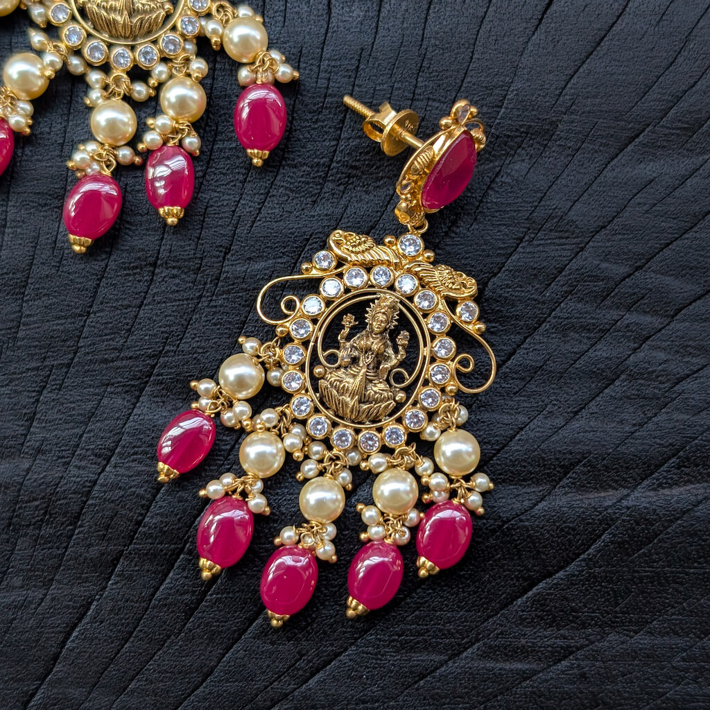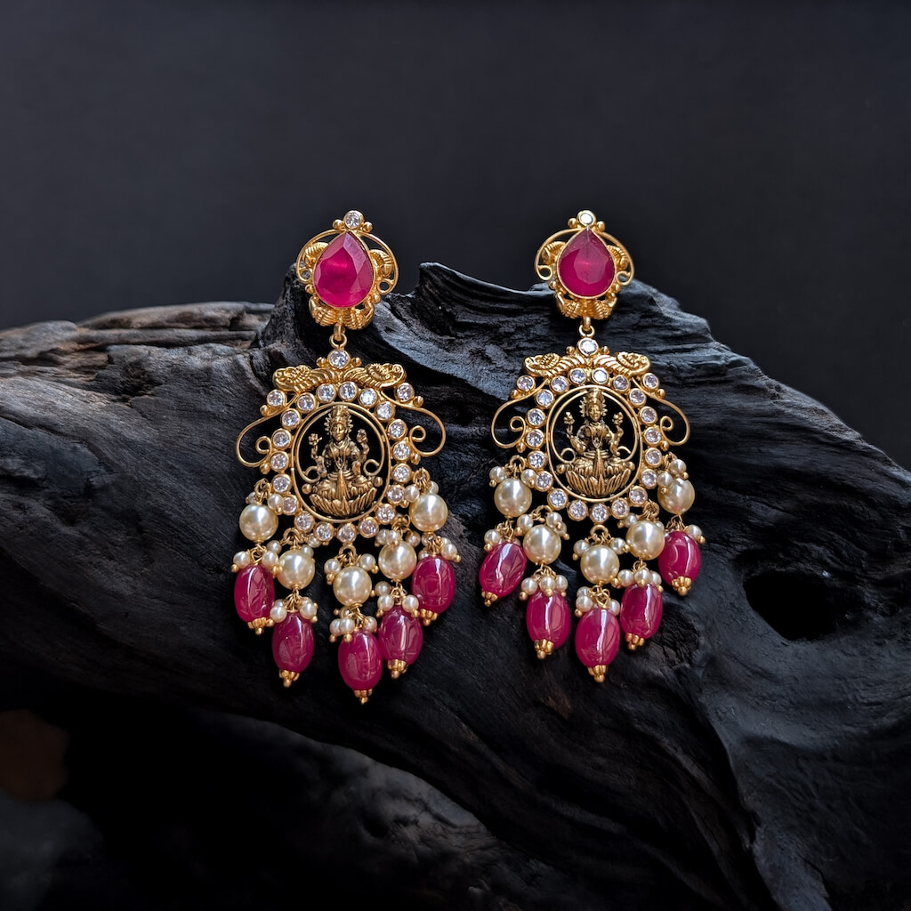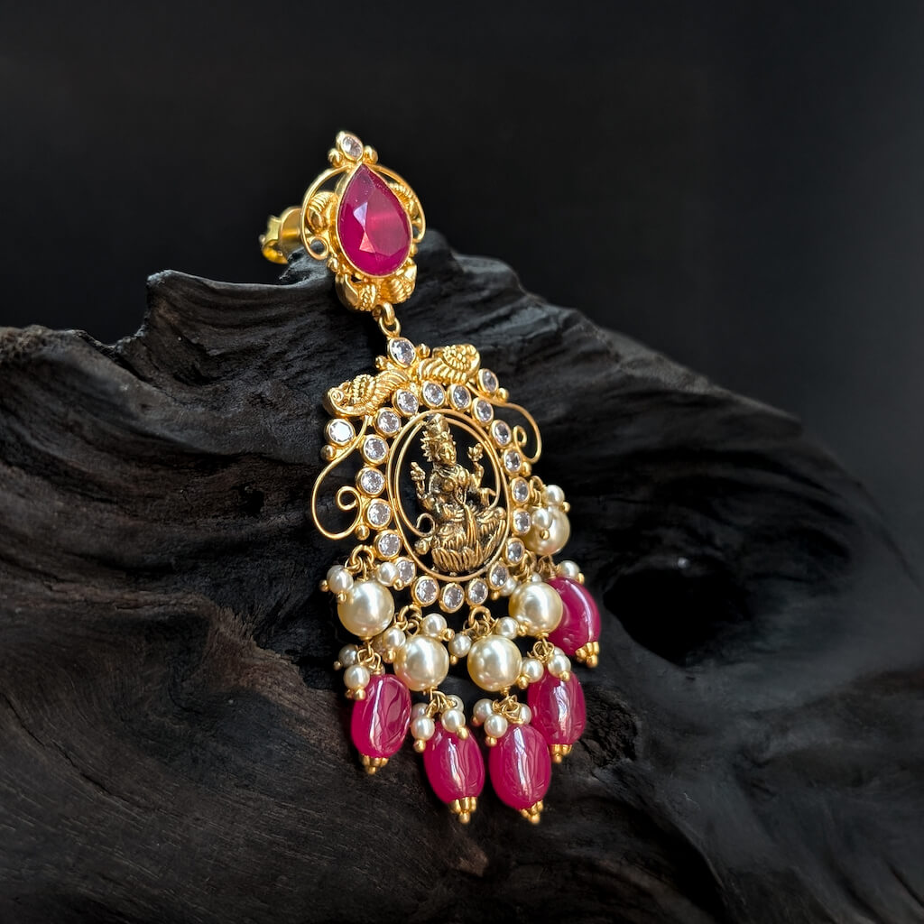 Tags: Bombay Screw, Color CZ, CZ, Earring, Gemstone Jewellery, Gifts For Her, god, Jadau, Lakshmi, Red Bead, Red Stone, Synthetic Polki, Women
