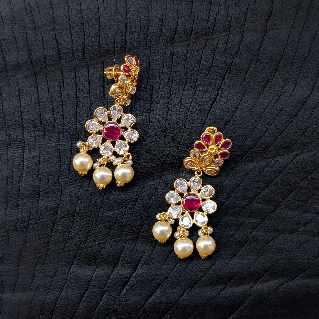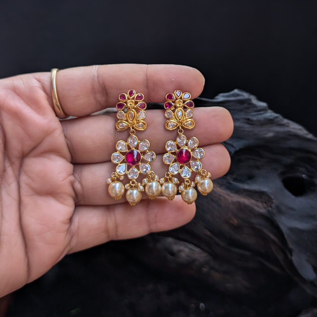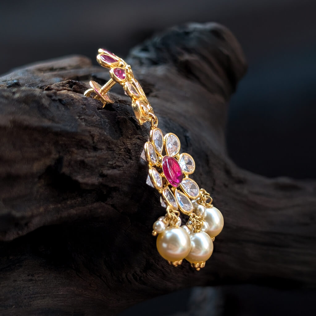 Tags: Bombay Screw, Color CZ, CZ, Earring, Gemstone Jewellery, Gifts For Her, Jadau, Pearl, Red Stone, Synthetic Polki, Women