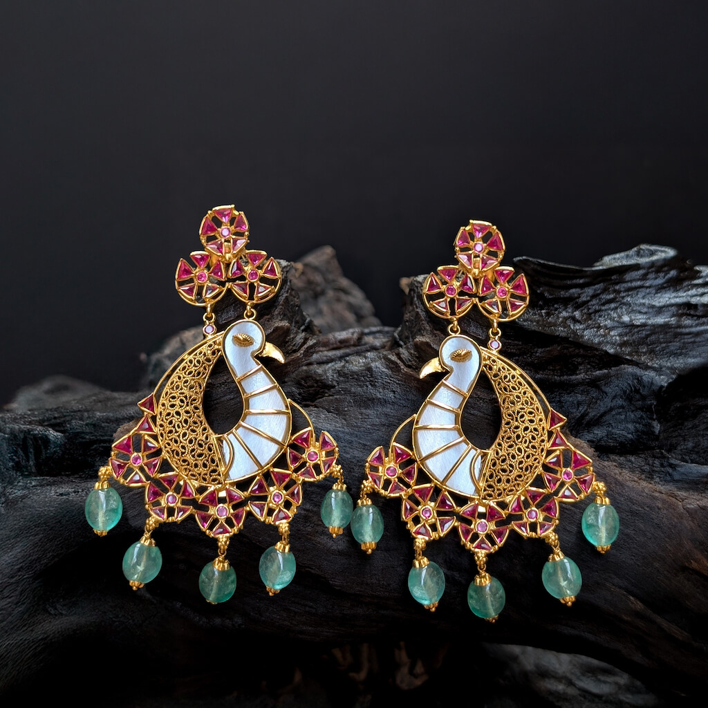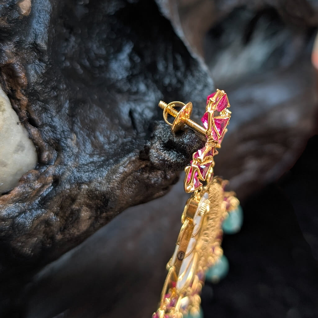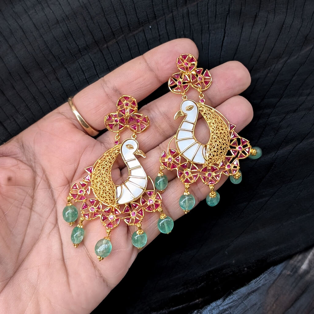 Tags: Bombay Screw, Color CZ, CZ, Earring, Gemstone Jewellery, Gifts For Her, Green Bead, Jadau, Red Stone, Synthetic Polki, White MOP, Women