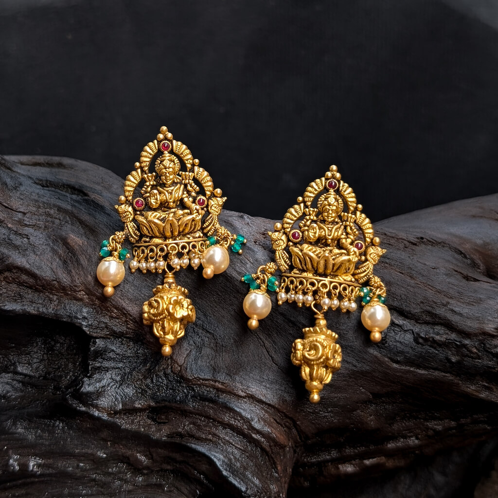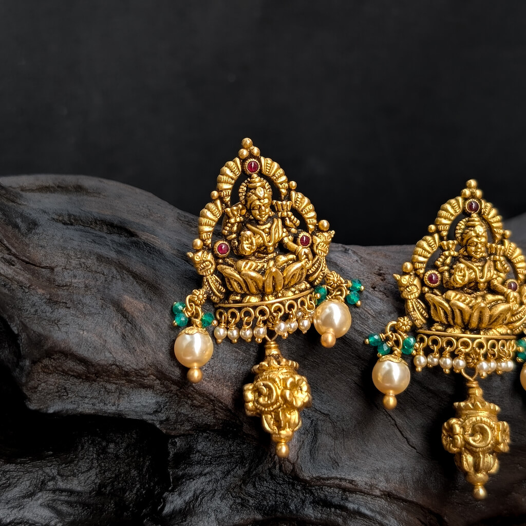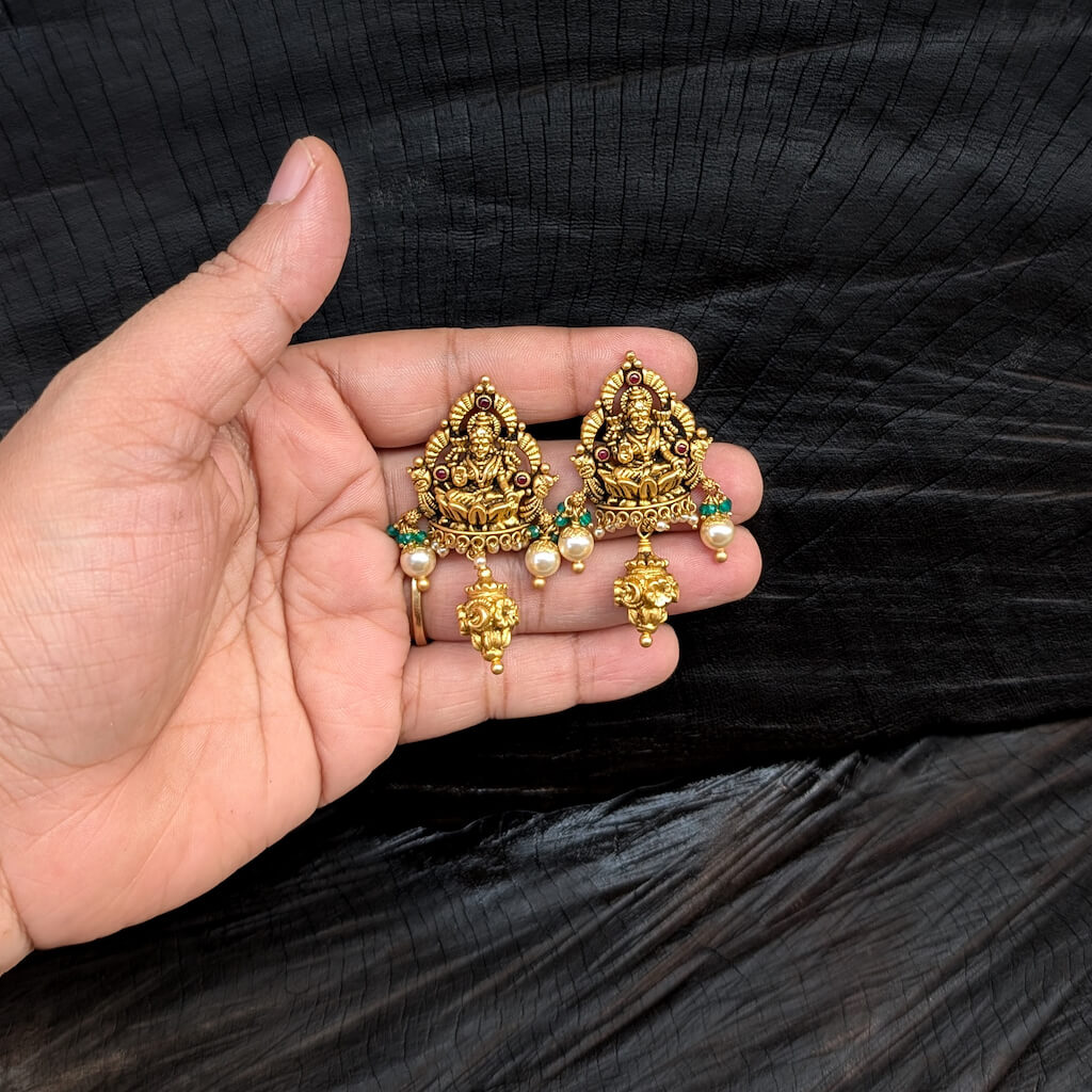 Tags: Antique, Antique Jewellery, Cob Ruby, Earrings, EF, Electro Forming, Gifts For Her, god, Green Bead, Lakshmi, Pearl, South Screw, Women